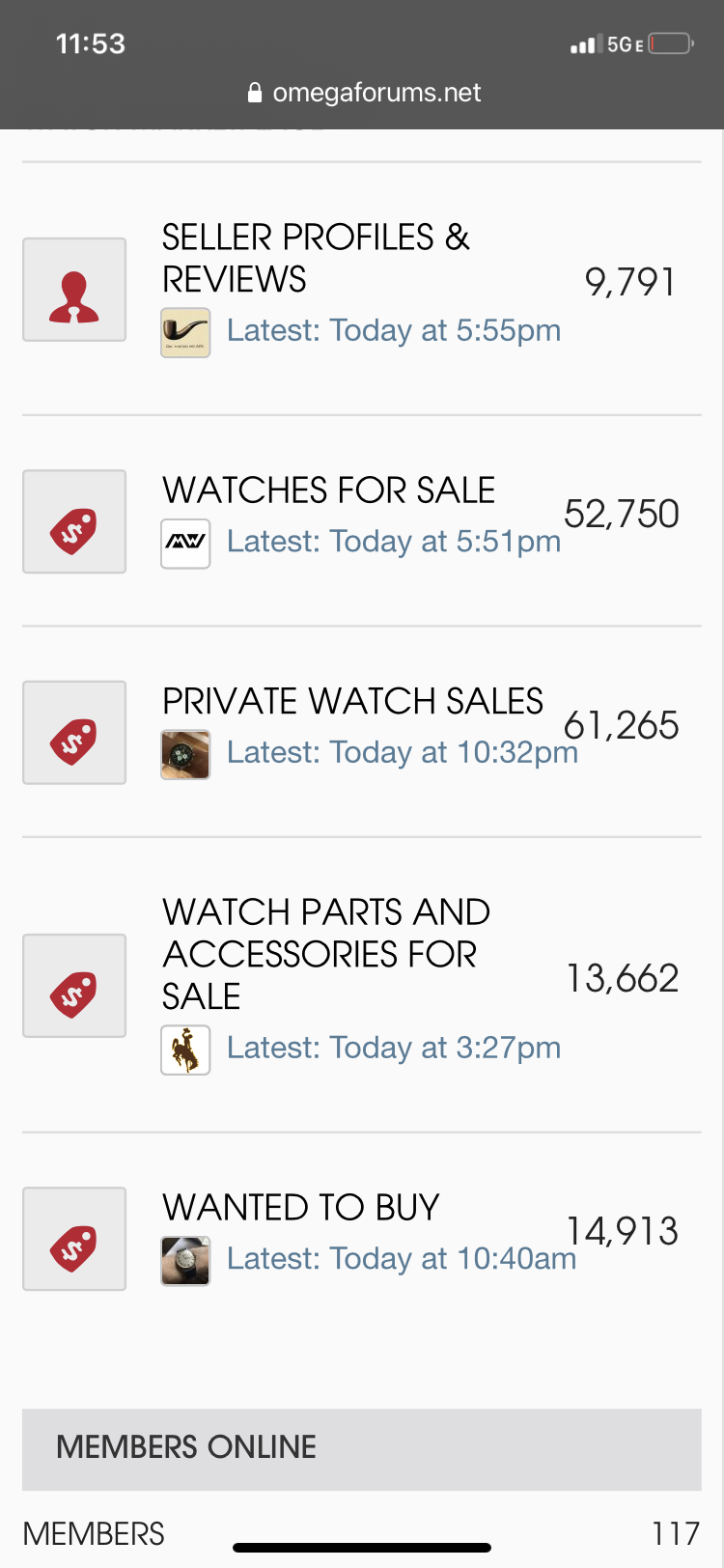 Posts 5,082 Likes 15,701 DaveK ·Nov 11, 2020 D D Palayew Sorry for the noob question : how can I search for sales ? In the forums themselves. Thanks. This is really the best place to start looking, especially the sticky threads, 2x especially the “learn how to fish” thread. https://omegaforums.net/forums/vintage-omega-watches-help-discussion-and-advice.23/