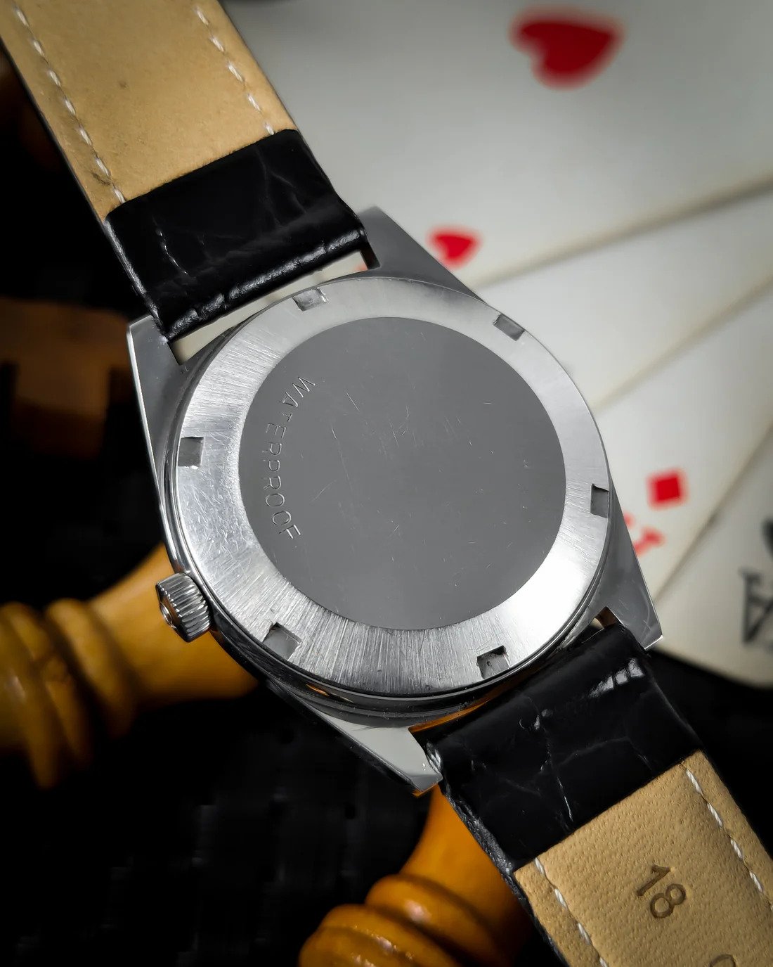 - Stainless-steel Case & Black Leather Strap