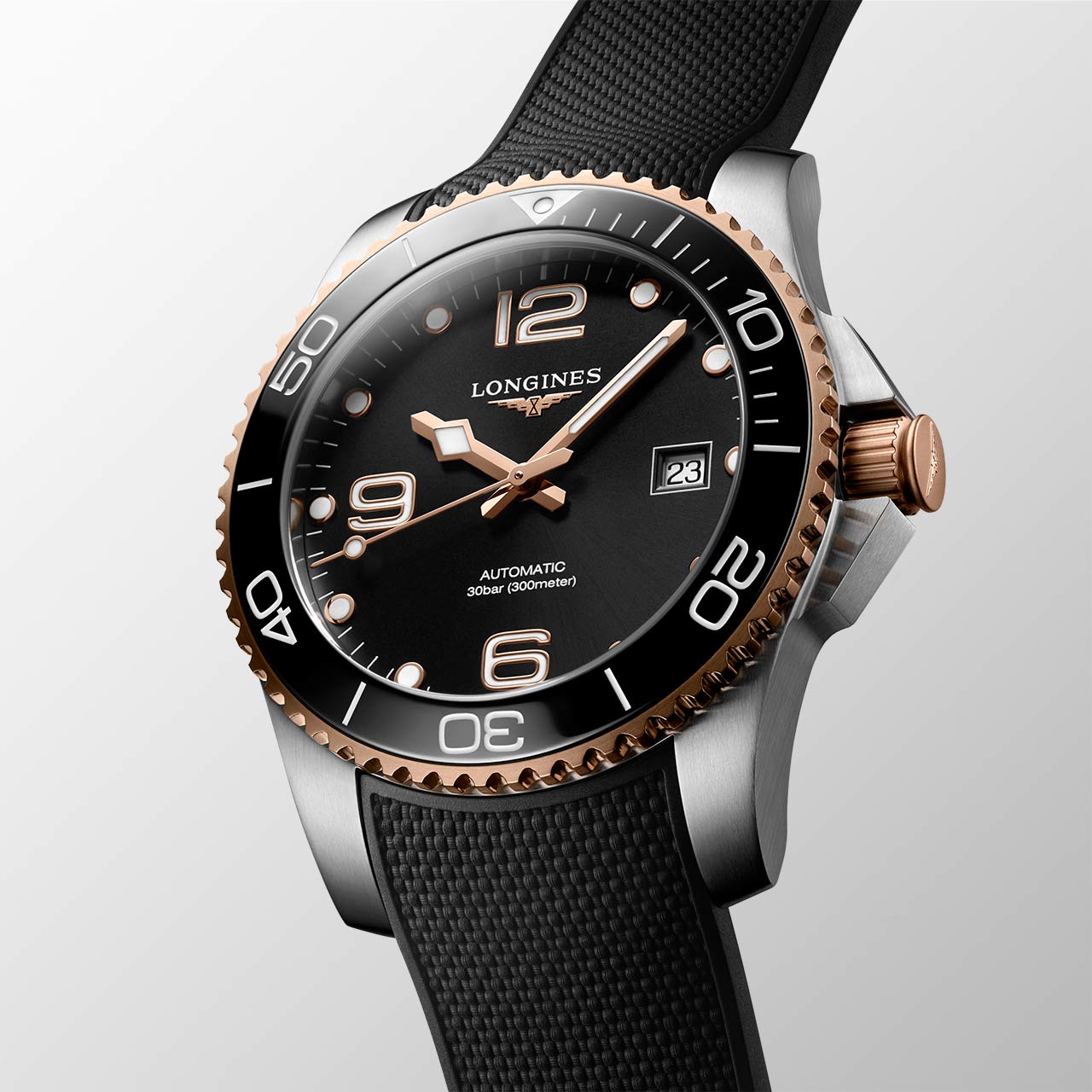 ·The latest addition to the HydroConquest collection by Longinesis a two-tone variation in steel and rose PVD or steel and yellow PVD, all of them featuring 41 mm cases with unidirectional rotating bezels in ceramic.The new Longines HydroConquest two-tone models can be equipped with rubber straps or two-tone bracelets in steel and yellow or rose PVD, both with double security folding clasps. More info at longines.com