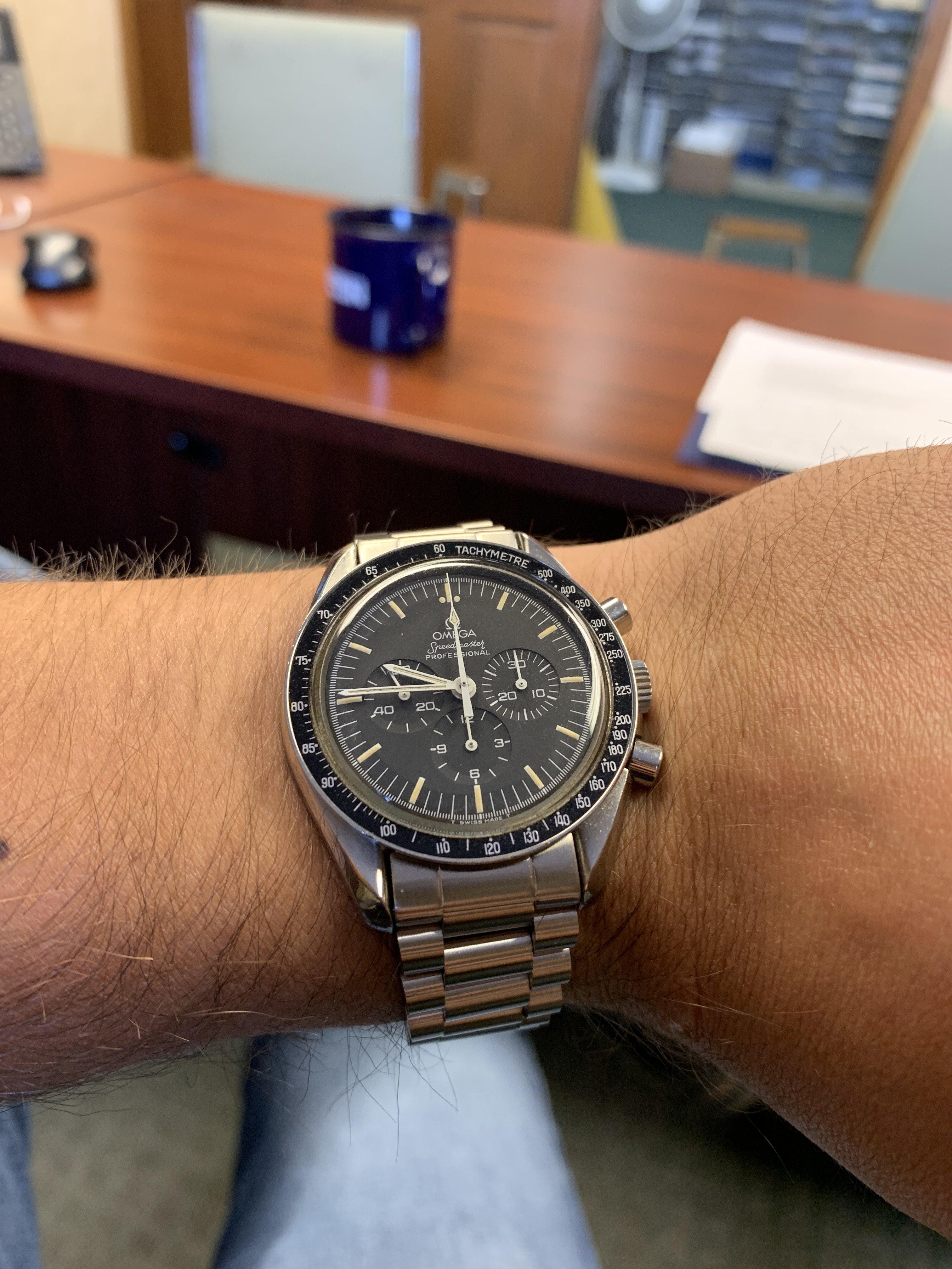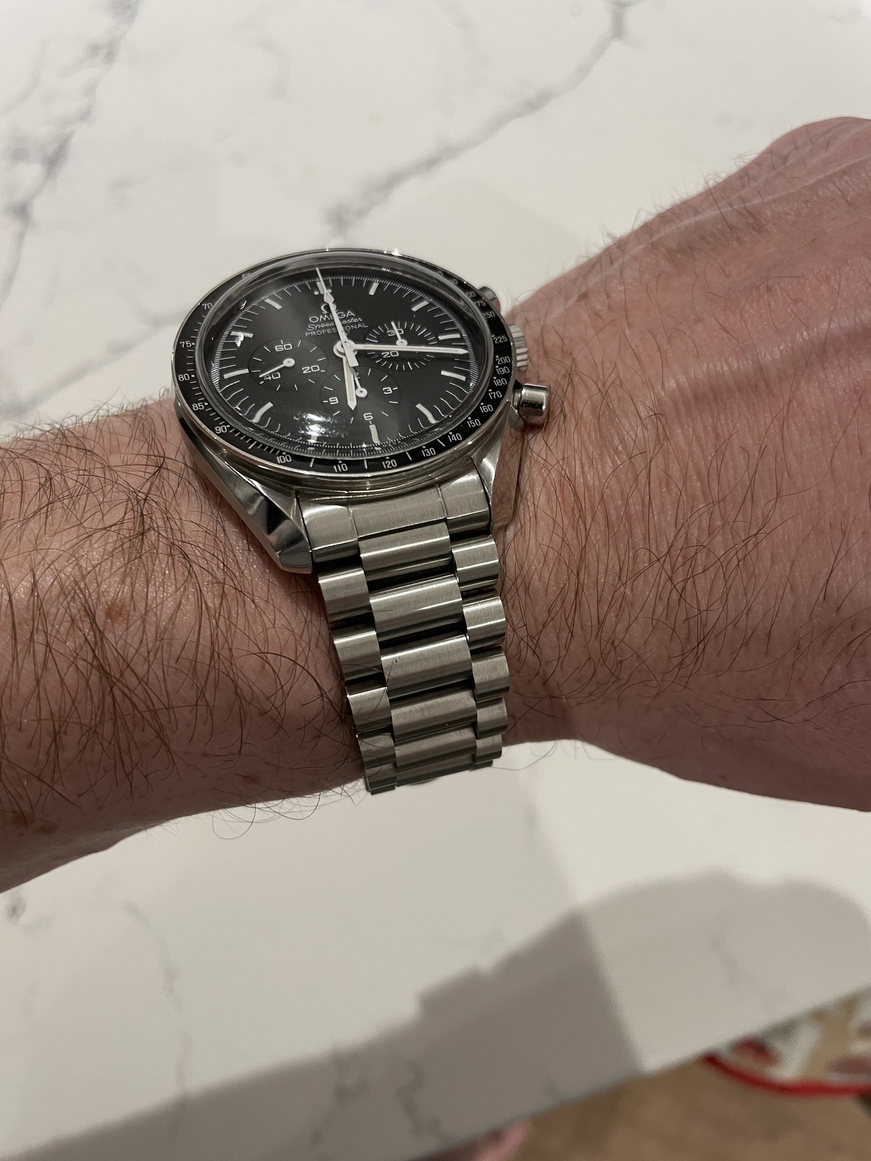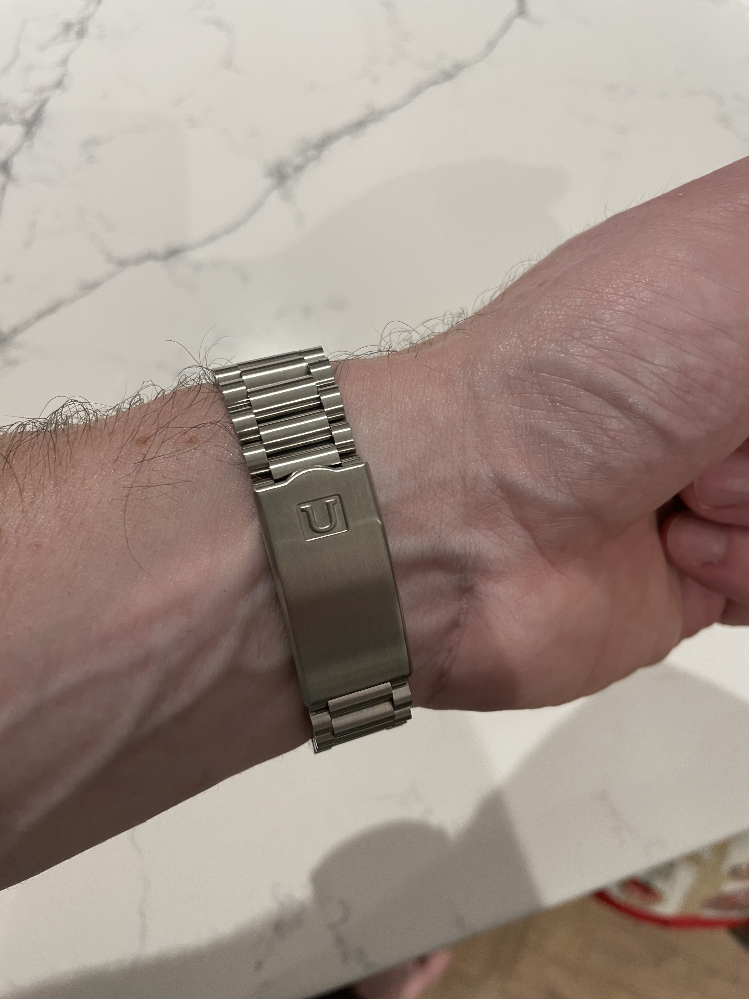 More pics. Having worn this non stop for the past week, I have to say that I am very impressed. On the wrist, it’s very comfortable, and I have to say much better fit than the OEM. There are 8 micro adjustment pin holes on the clasp. I have min on the 3rd one in, after removing 4 links (7 inch wrist). I could never get the OEM to fit well....with only 2 micro adjust pin holes, it was either way to loose, or if I removed an additional link it was too tight. If I hadn’t found the US 1450, I probably would have invested in a Seamaster half link or micro adjust clasp. The US was a much better use of funds, IMO. After wearing the watch on a strap since I bought it, I am really excited to now have it on a bracelet. Well done Uncle Seiko!
