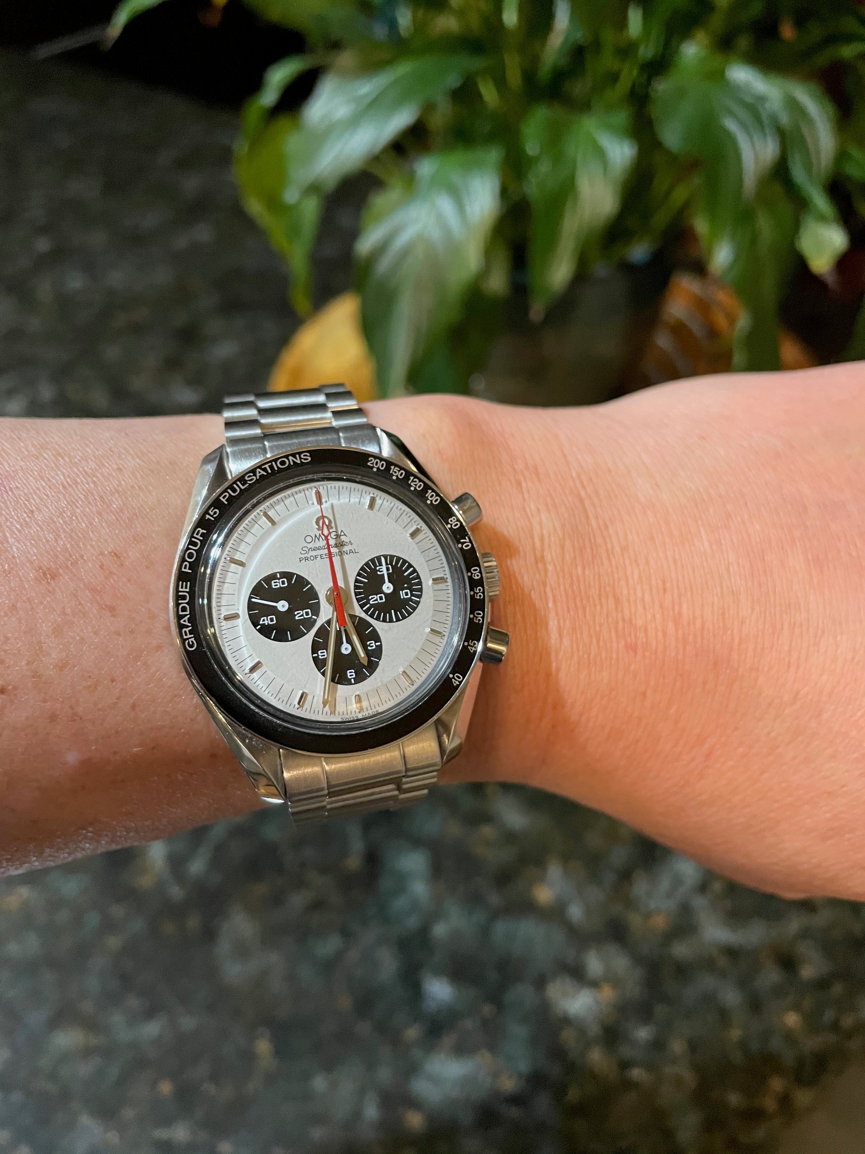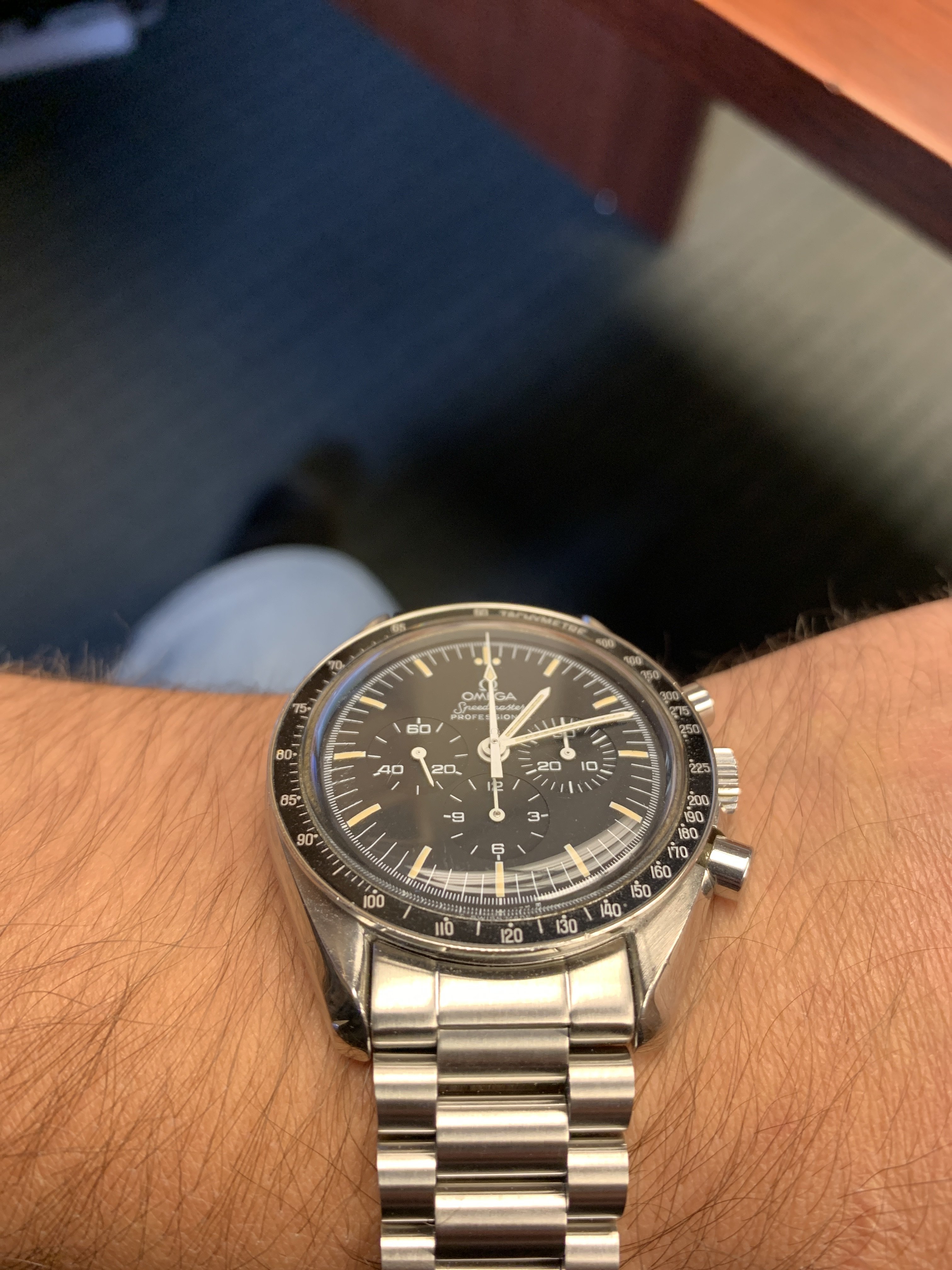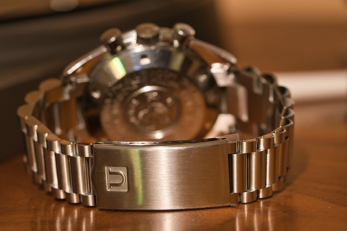 More pics. Having worn this non stop for the past week, I have to say that I am very impressed. On the wrist, it’s very comfortable, and I have to say much better fit than the OEM. There are 8 micro adjustment pin holes on the clasp. I have min on the 3rd one in, after removing 4 links (7 inch wrist). I could never get the OEM to fit well....with only 2 micro adjust pin holes, it was either way to loose, or if I removed an additional link it was too tight. If I hadn’t found the US 1450, I probably would have invested in a Seamaster half link or micro adjust clasp. The US was a much better use of funds, IMO. After wearing the watch on a strap since I bought it, I am really excited to now have it on a bracelet. Well done Uncle Seiko!