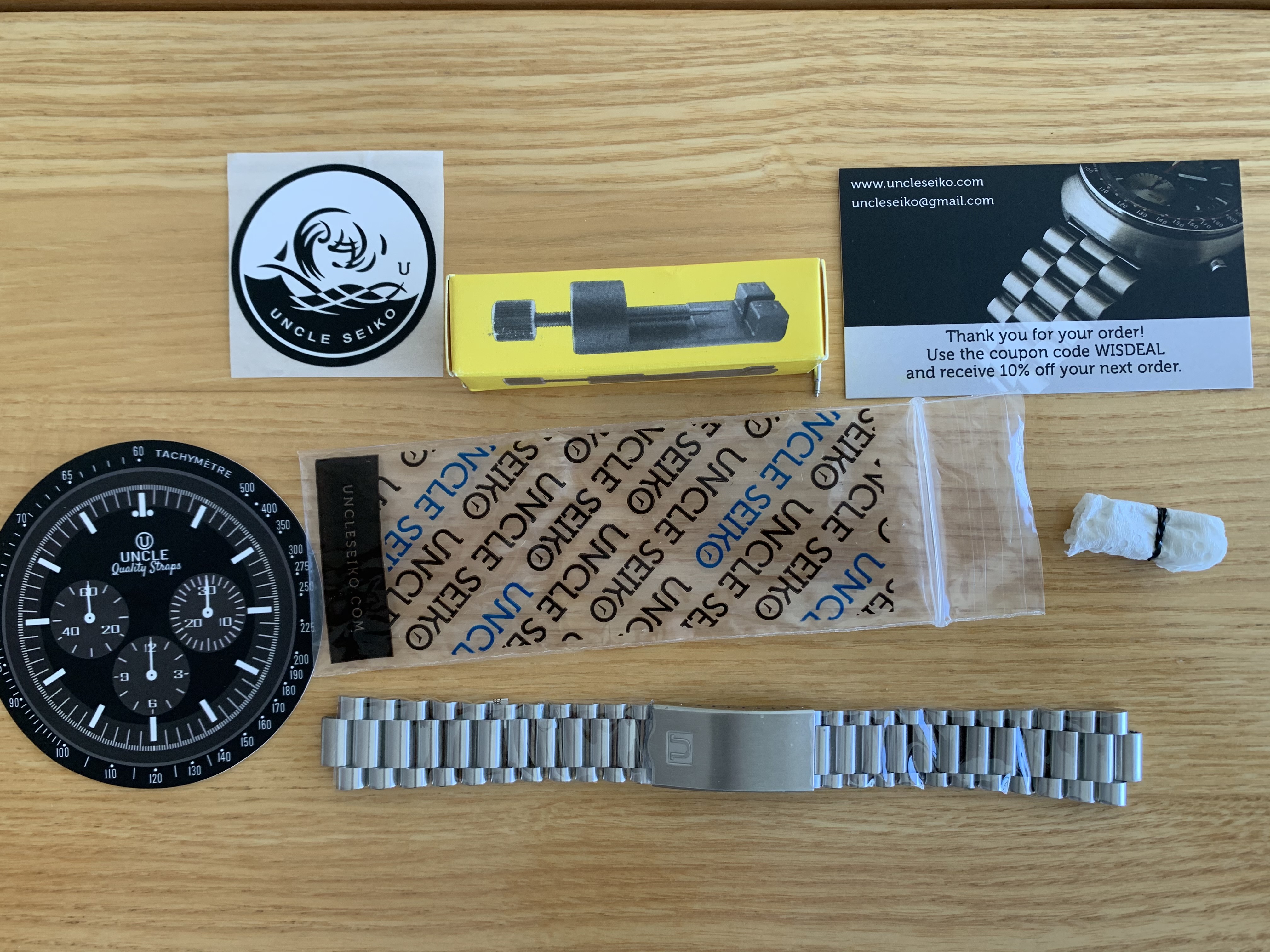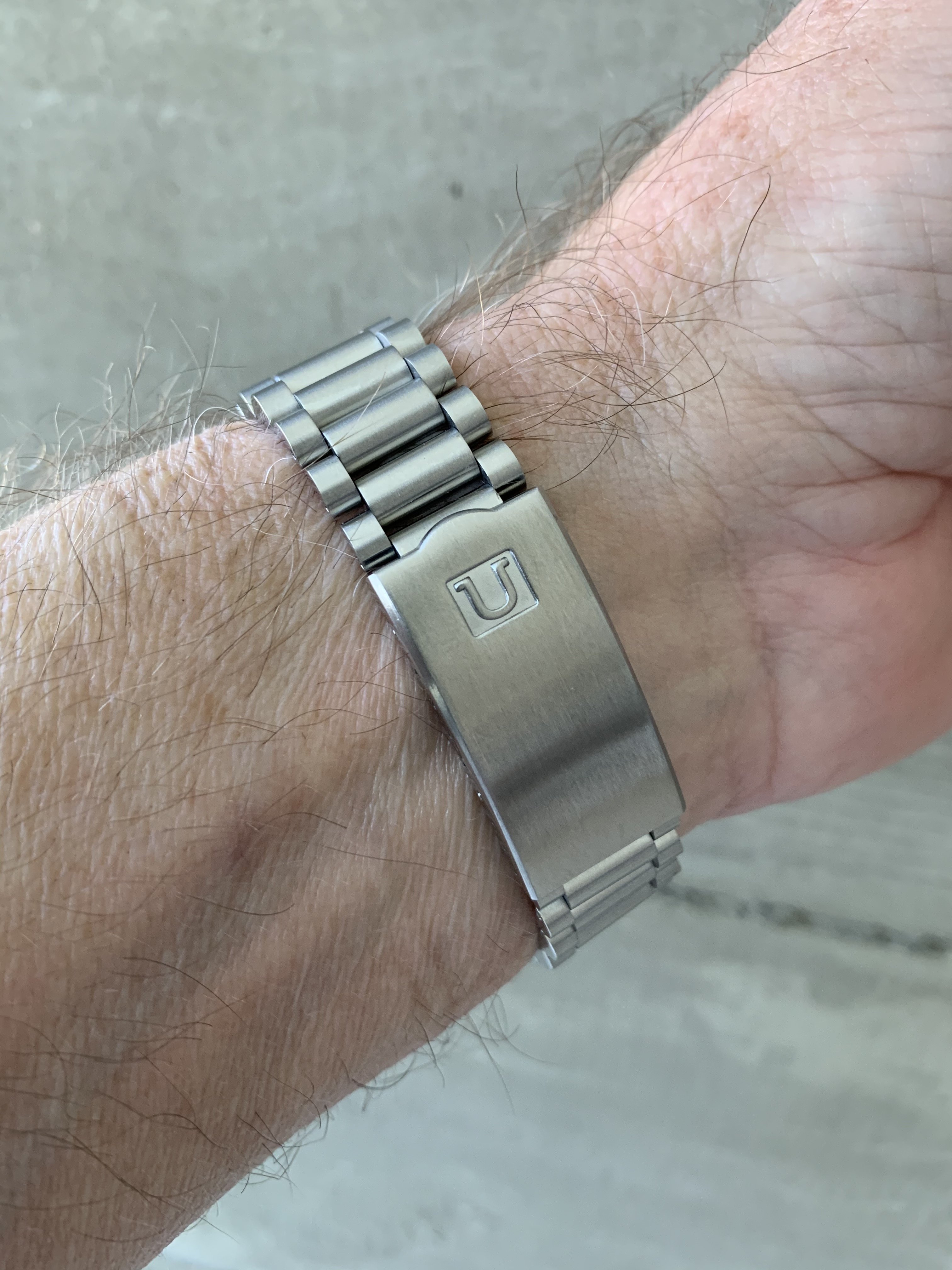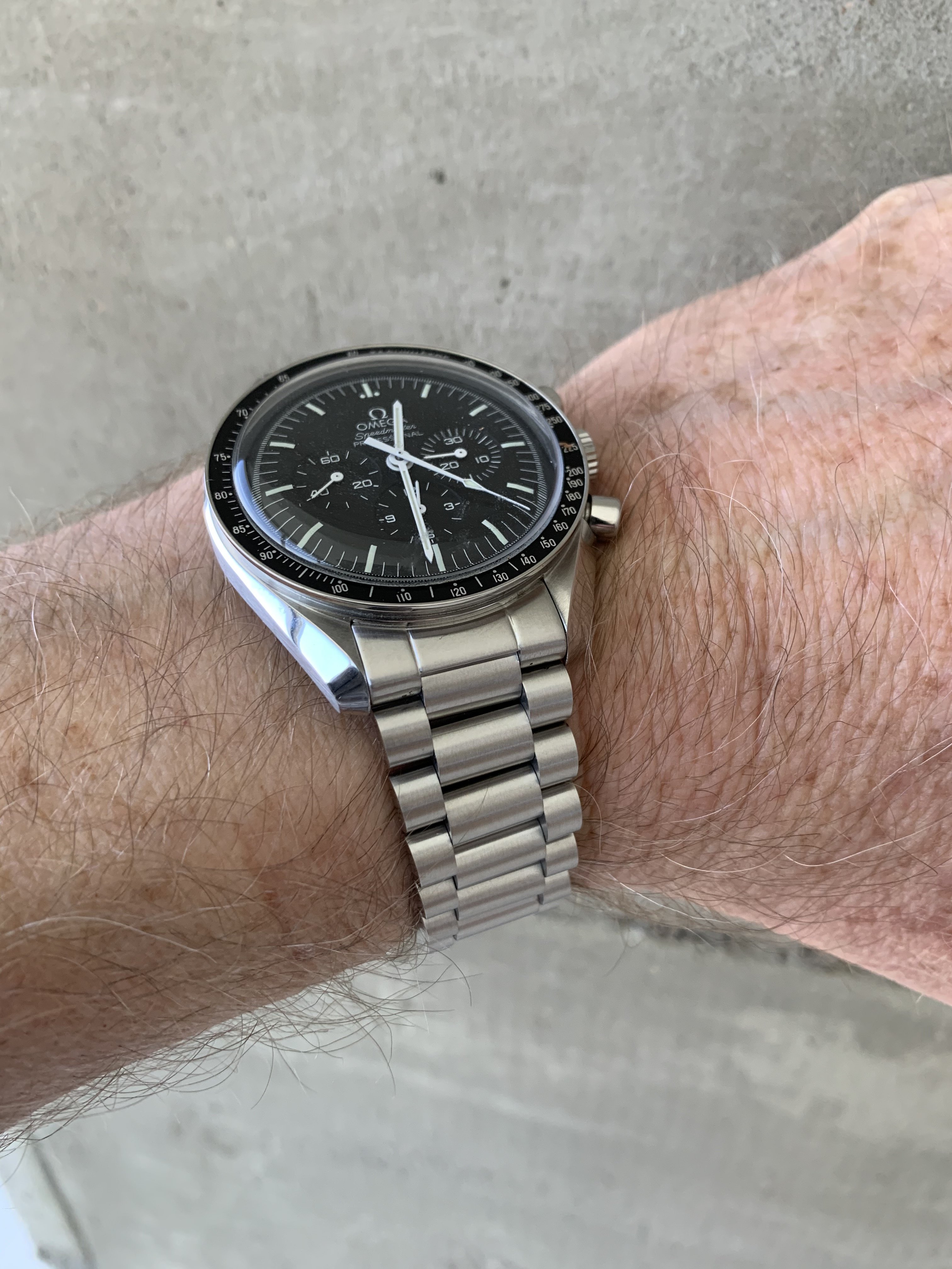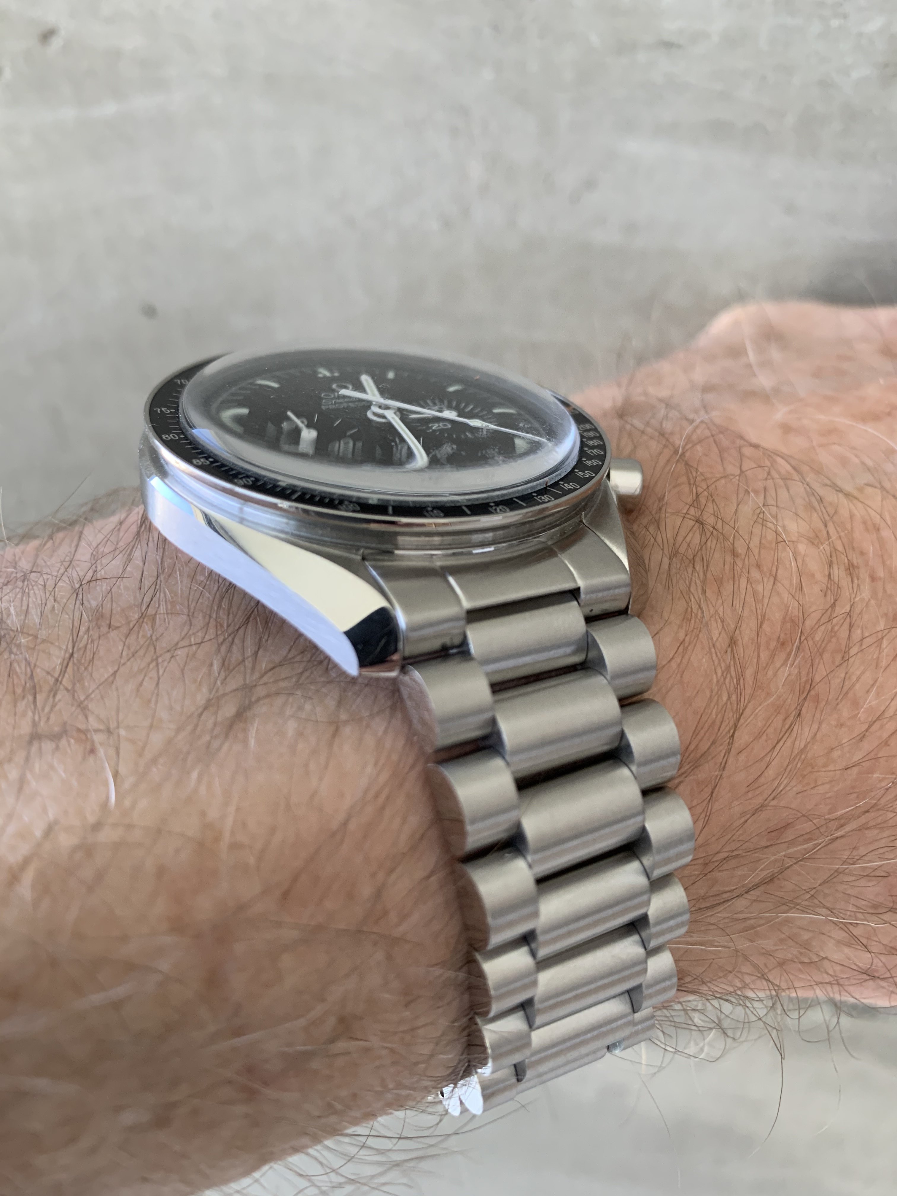 The fit and finish is really nice. Brushing is top notch and matches the brushing on my Speedy quite well. Took a little bit of wiggling of one of the end links to get the spring bar to snap into place, but not much of an issue.