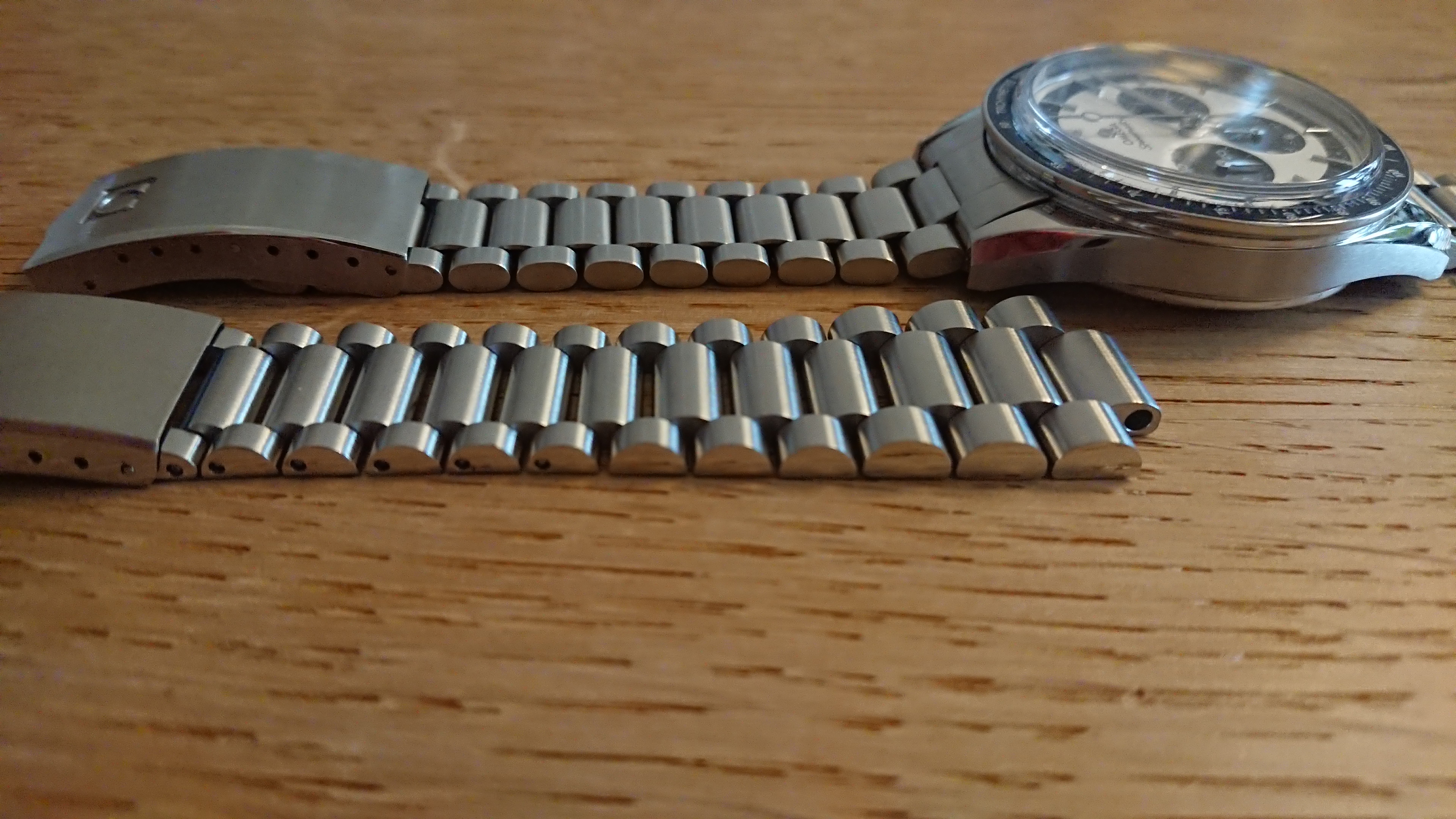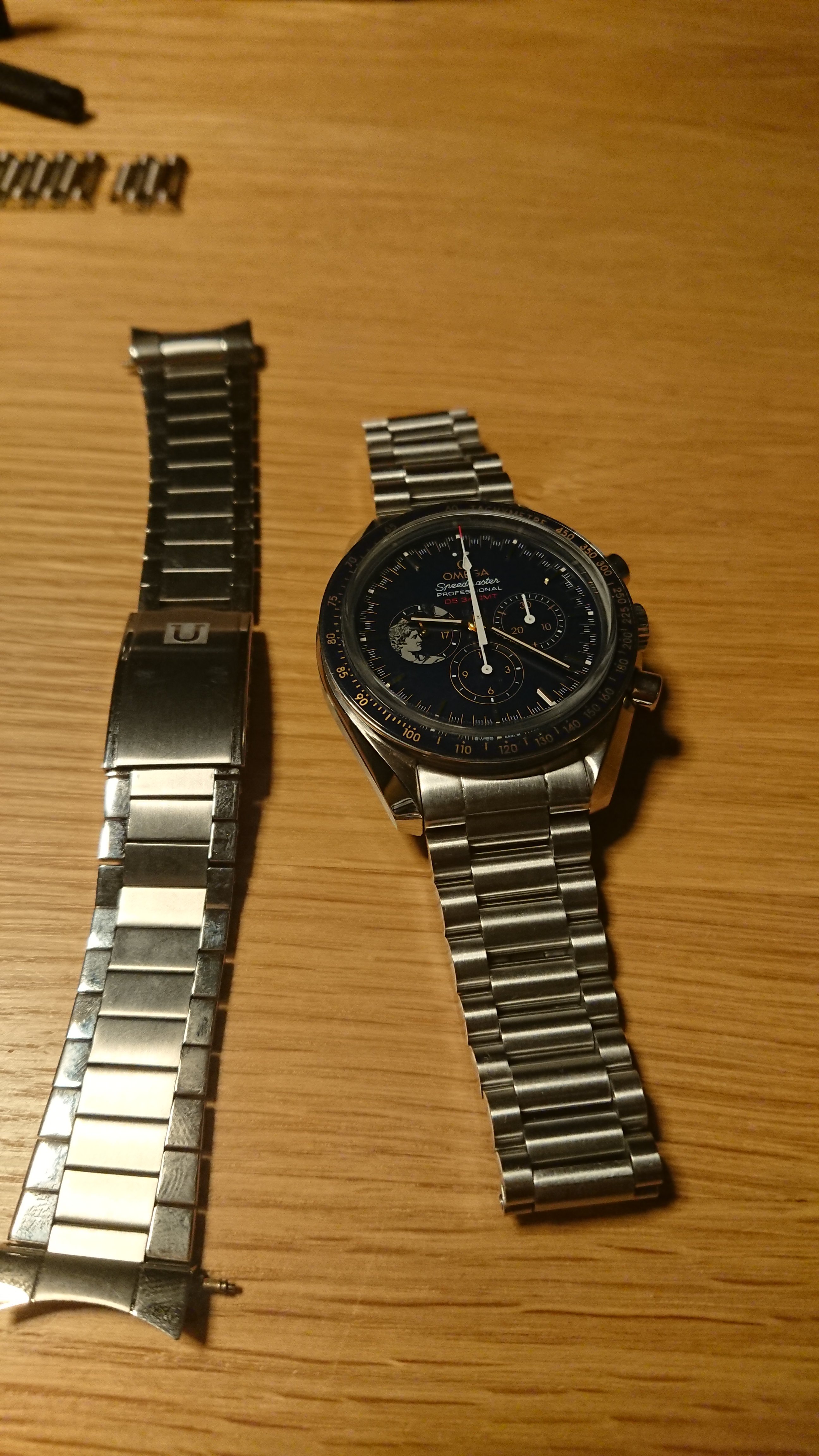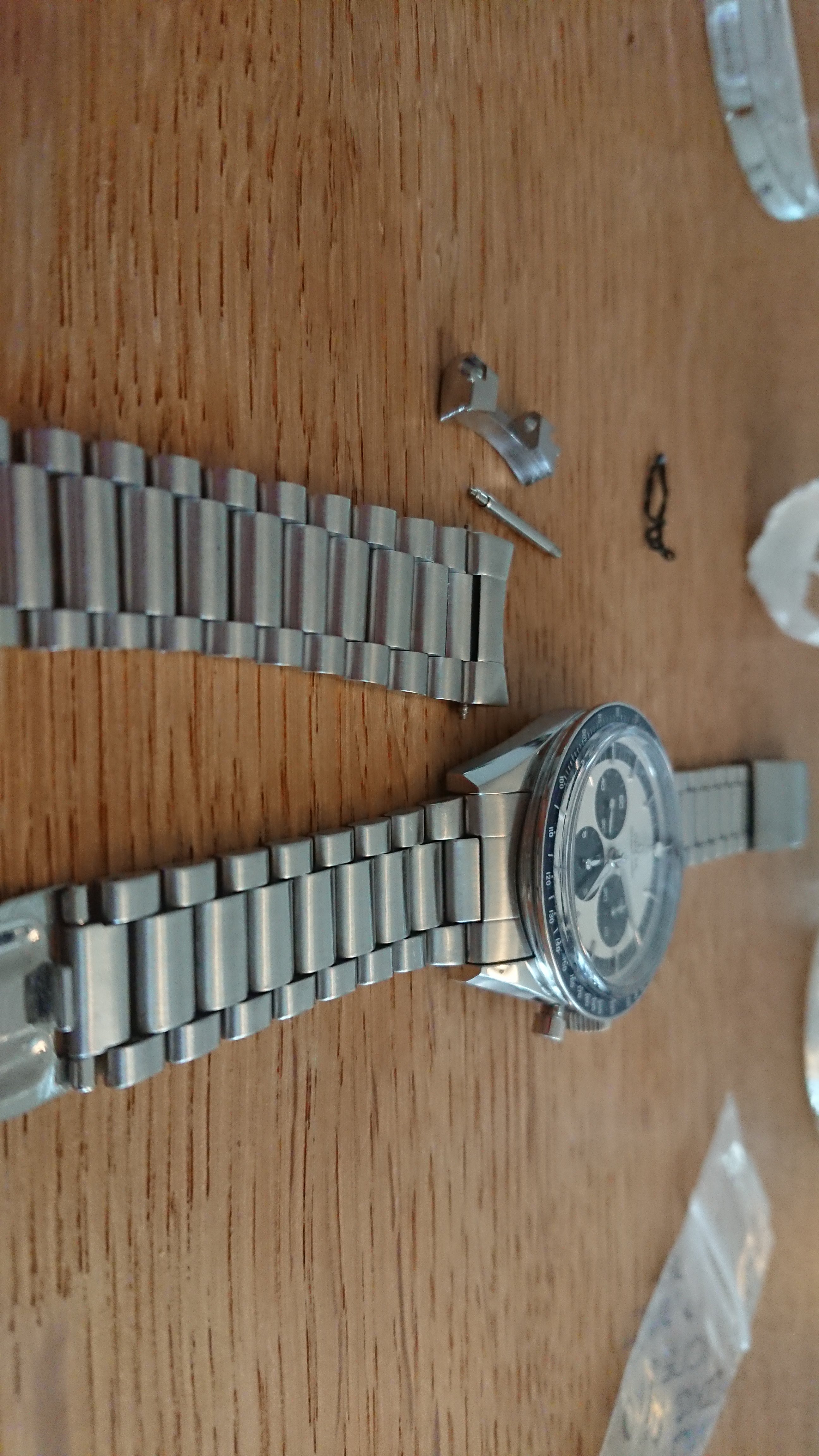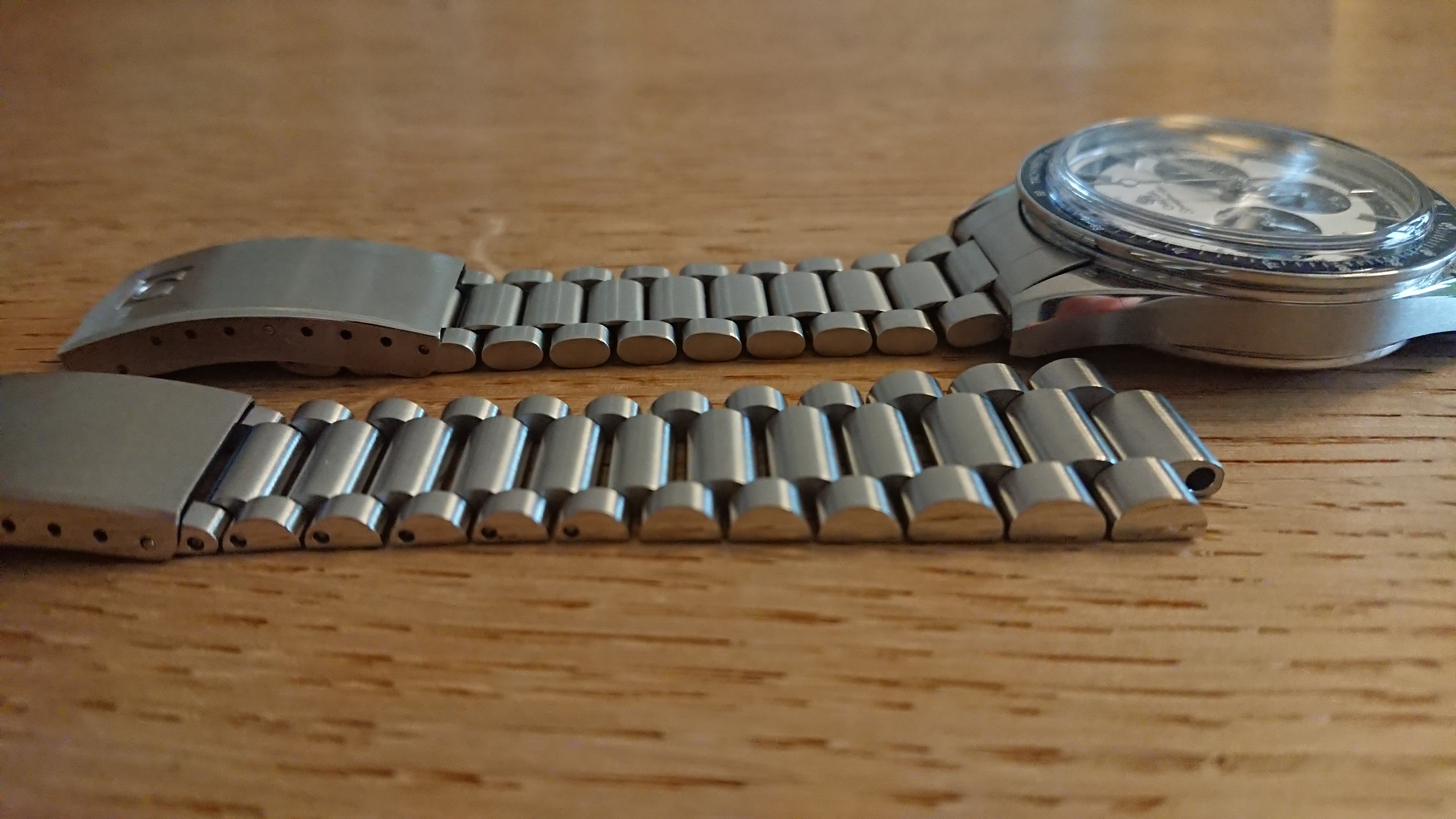 The fit and finish is really nice. Brushing is top notch and matches the brushing on my Speedy quite well. Took a little bit of wiggling of one of the end links to get the spring bar to snap into place, but not much of an issue.