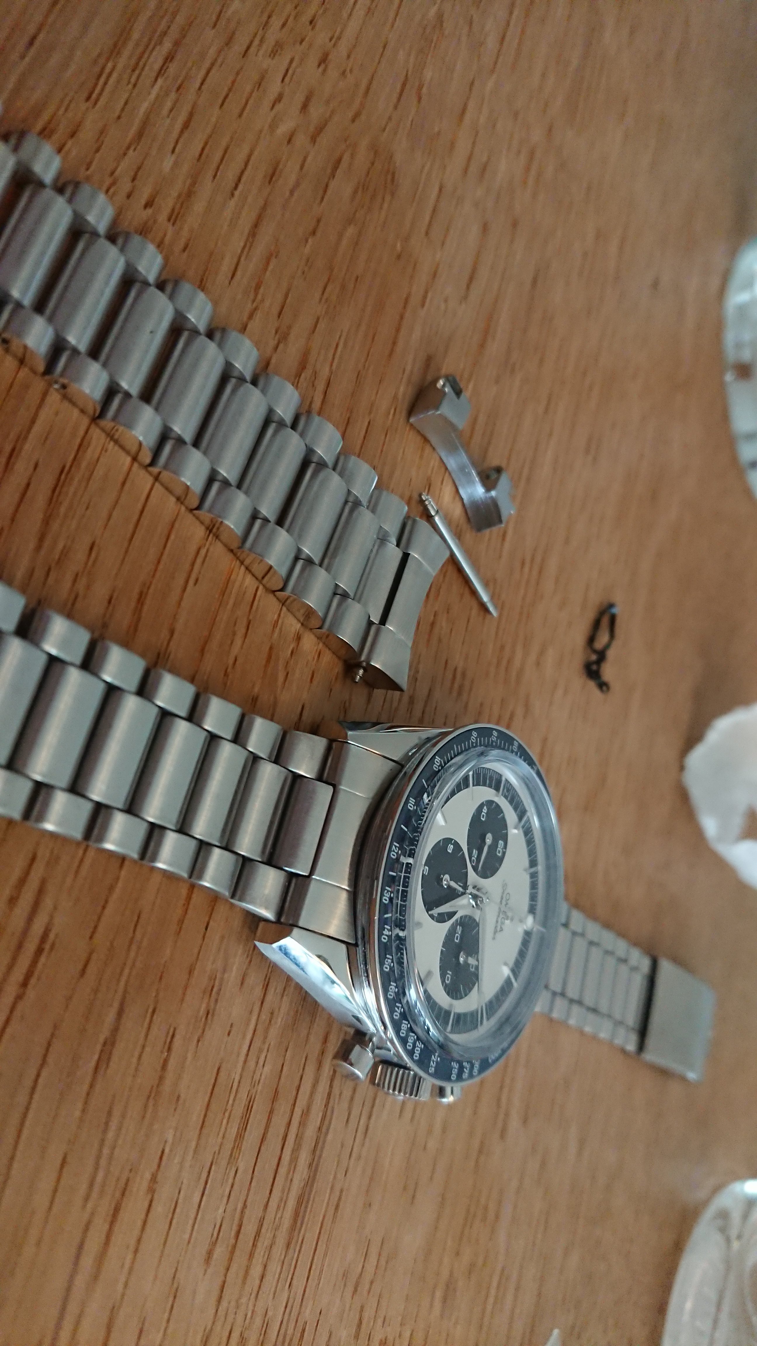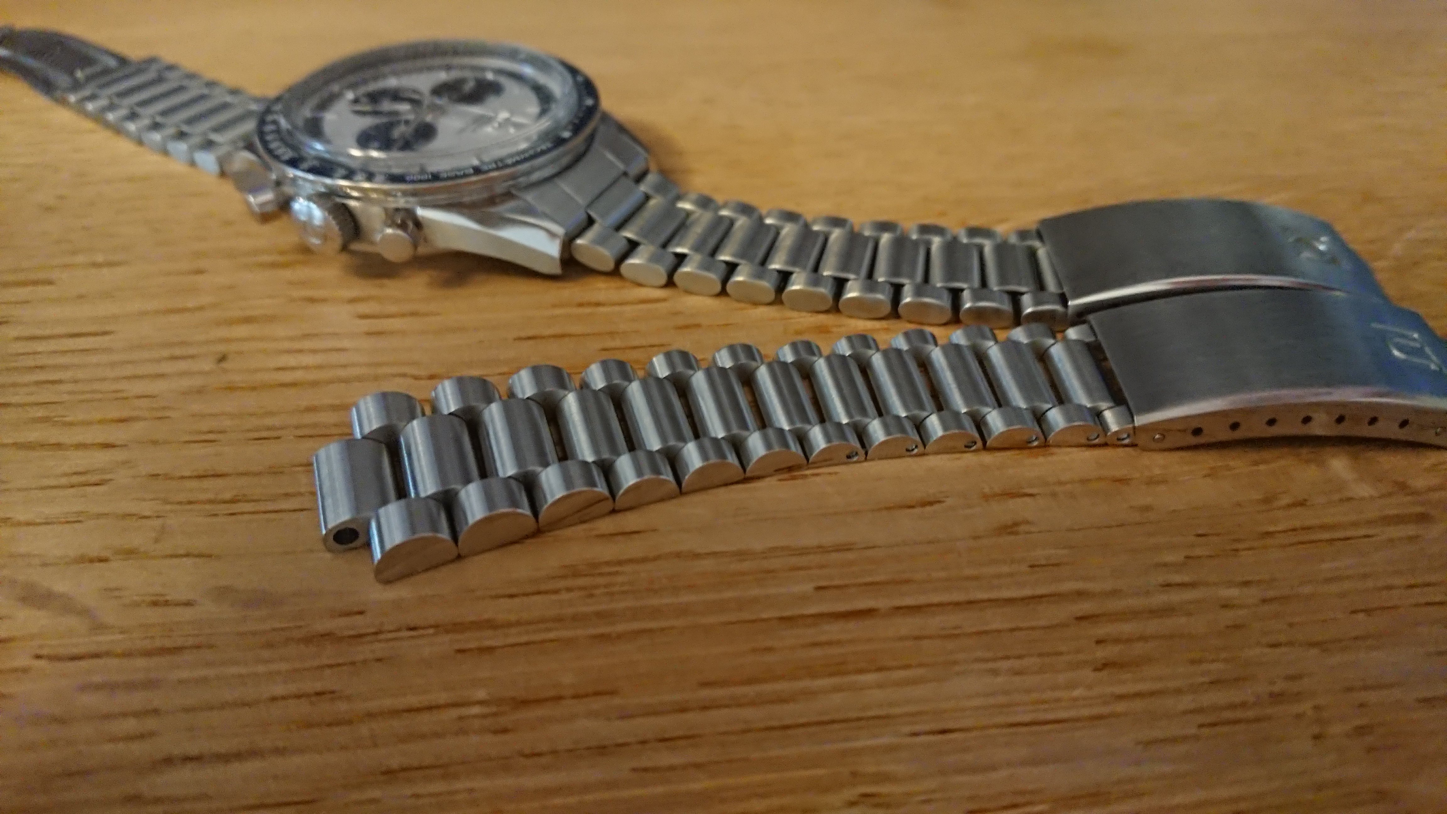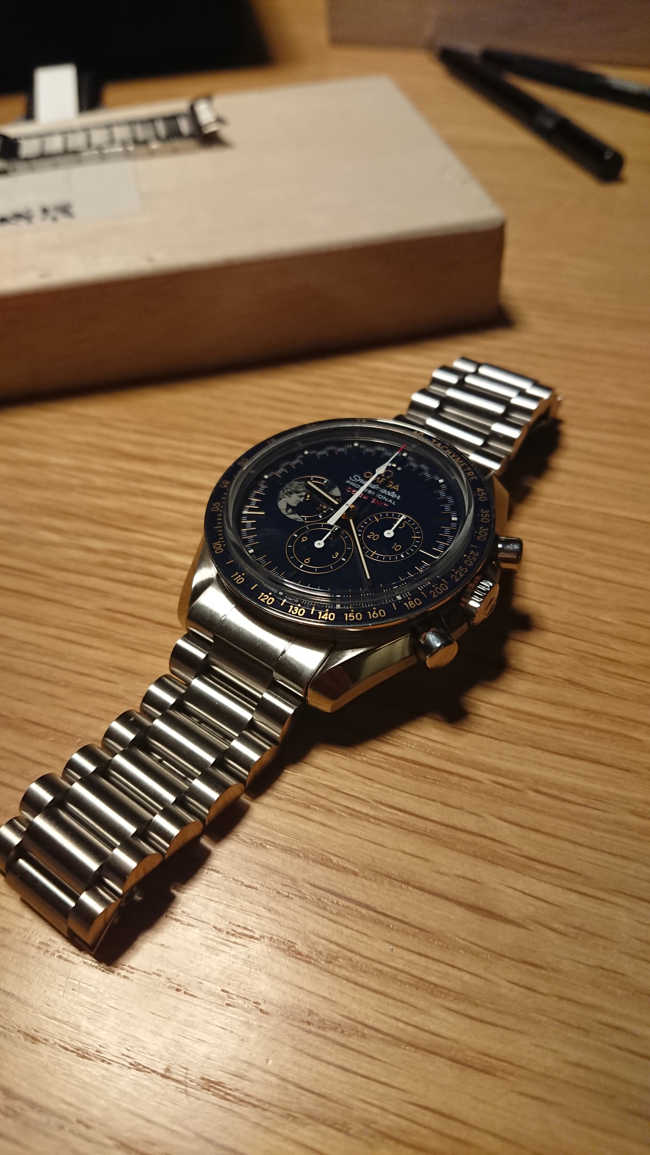 The fit and finish is really nice. Brushing is top notch and matches the brushing on my Speedy quite well. Took a little bit of wiggling of one of the end links to get the spring bar to snap into place, but not much of an issue.