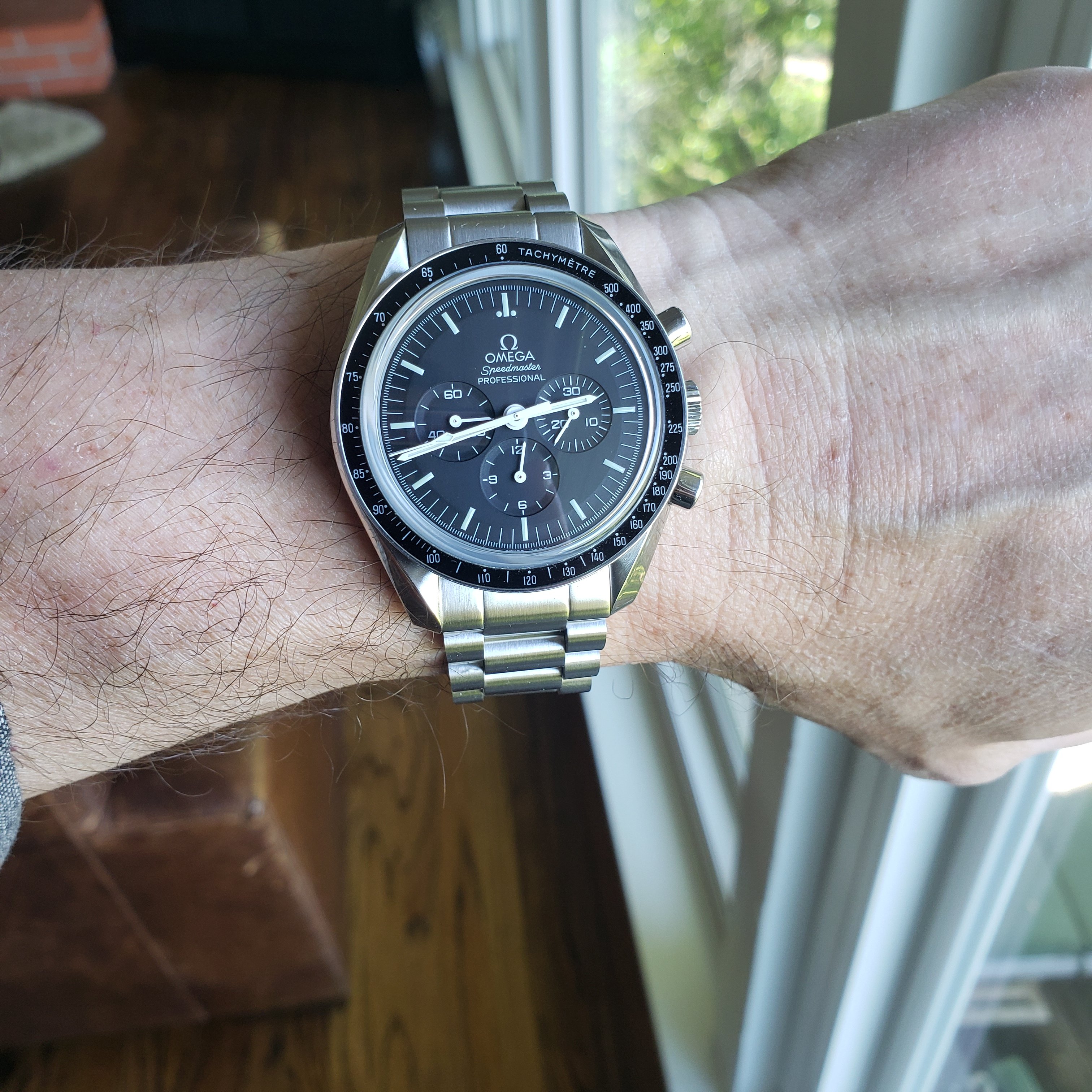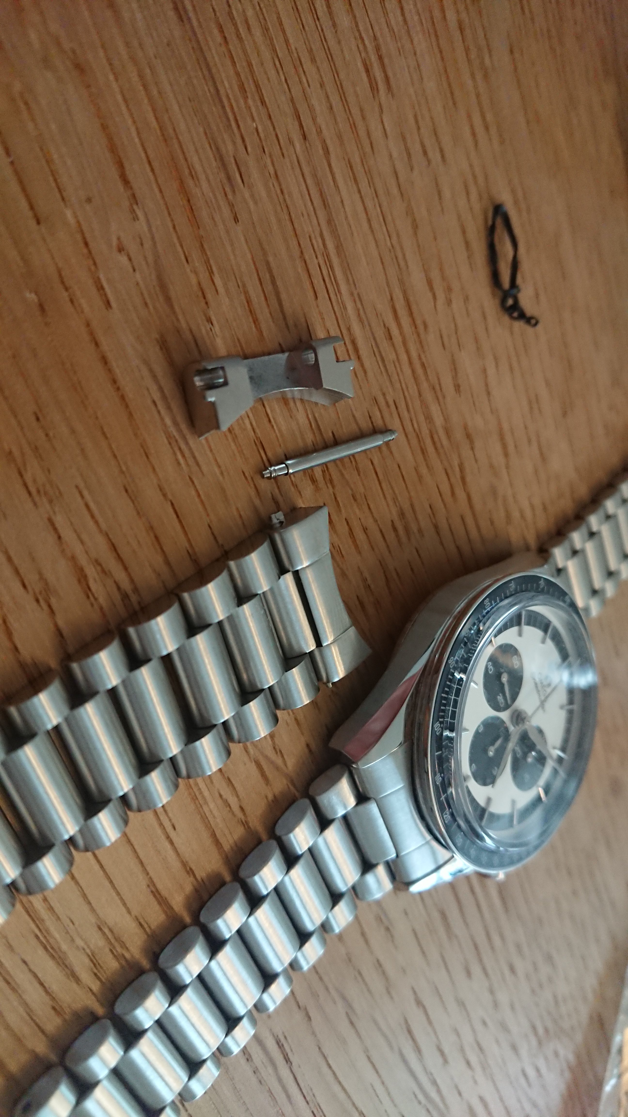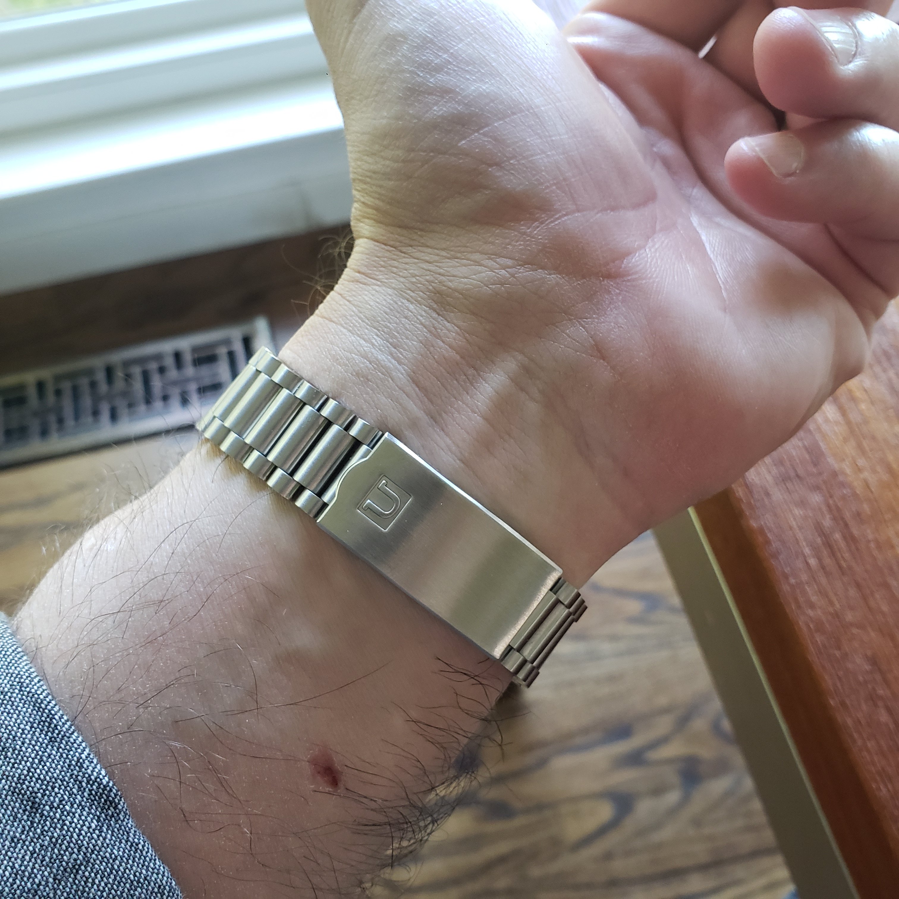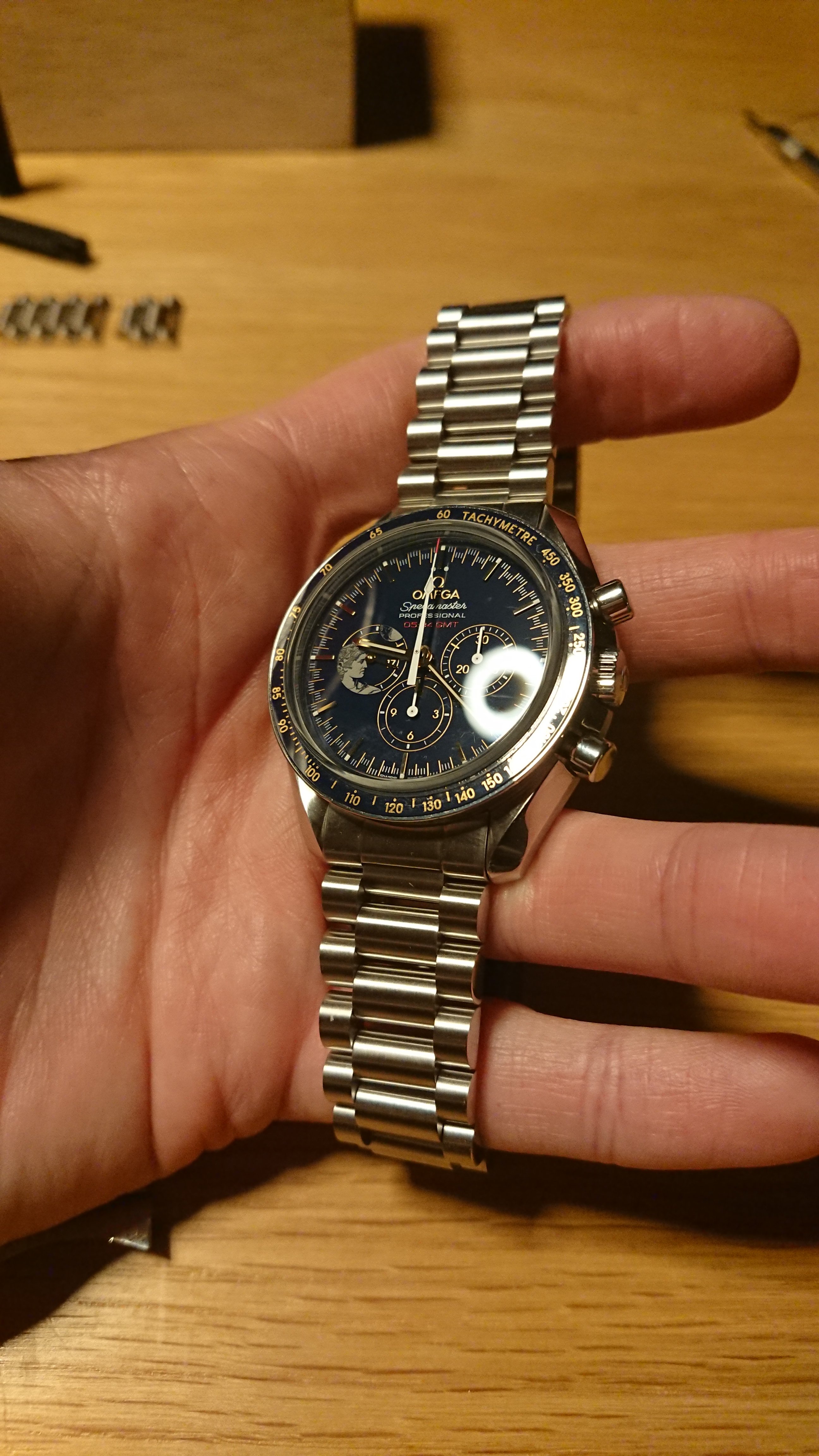 The fit and finish is really nice. Brushing is top notch and matches the brushing on my Speedy quite well. Took a little bit of wiggling of one of the end links to get the spring bar to snap into place, but not much of an issue.
