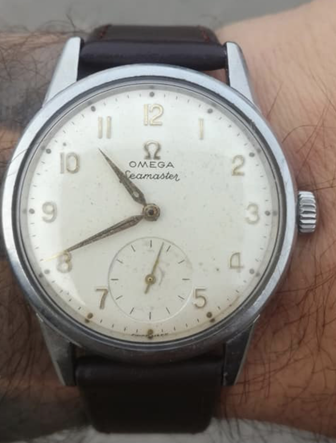 I recently purchased a vintage omega that serial number indicates to by from 1959. The only problem is that i have not seen any similiar model thruout my searches. Can you assist me on what is the watch and has it been redialed. I haven’t seen that arabic numbering on these