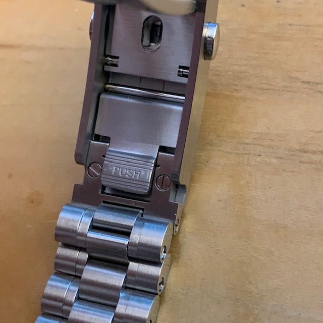 Once the decision was made, Rohan went to work on my quasi-custom build. It didn't go quite as smoothly as we expected. In order to get a proper fit between the 'old' bracelet and the Chronoscope clasp, he had to take a donor part from the old clasp and transplant it to the Chronoscope clasp. Eventually, though, we got what we wanted. Here's the result.