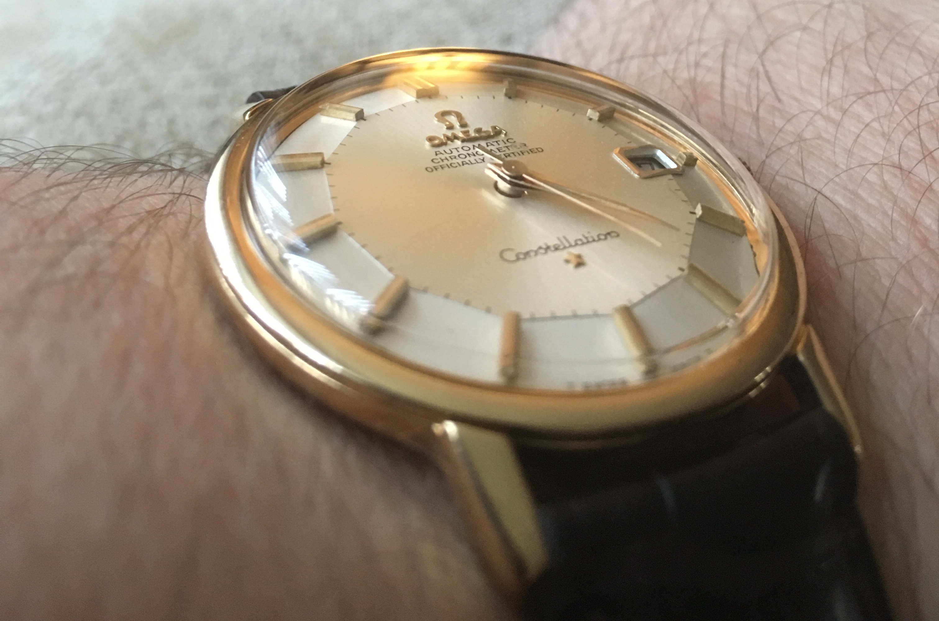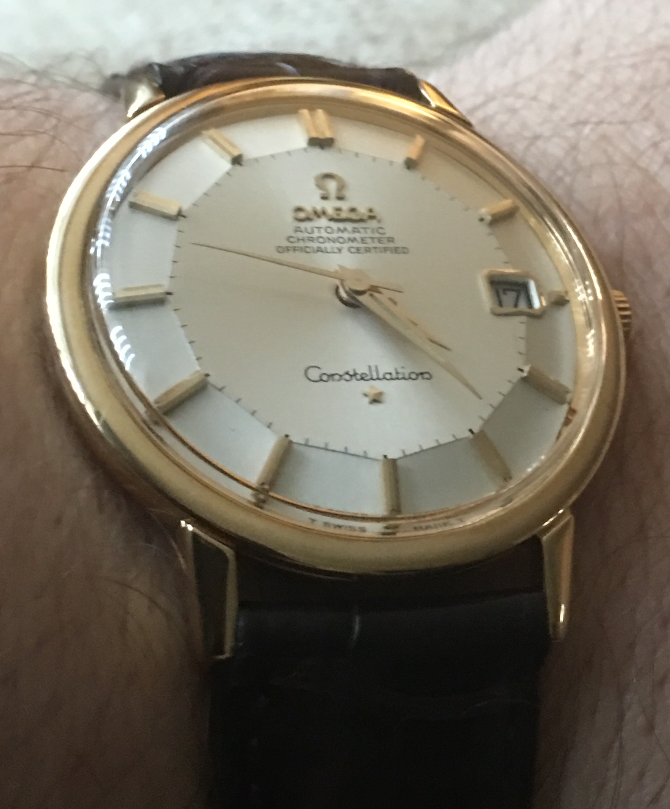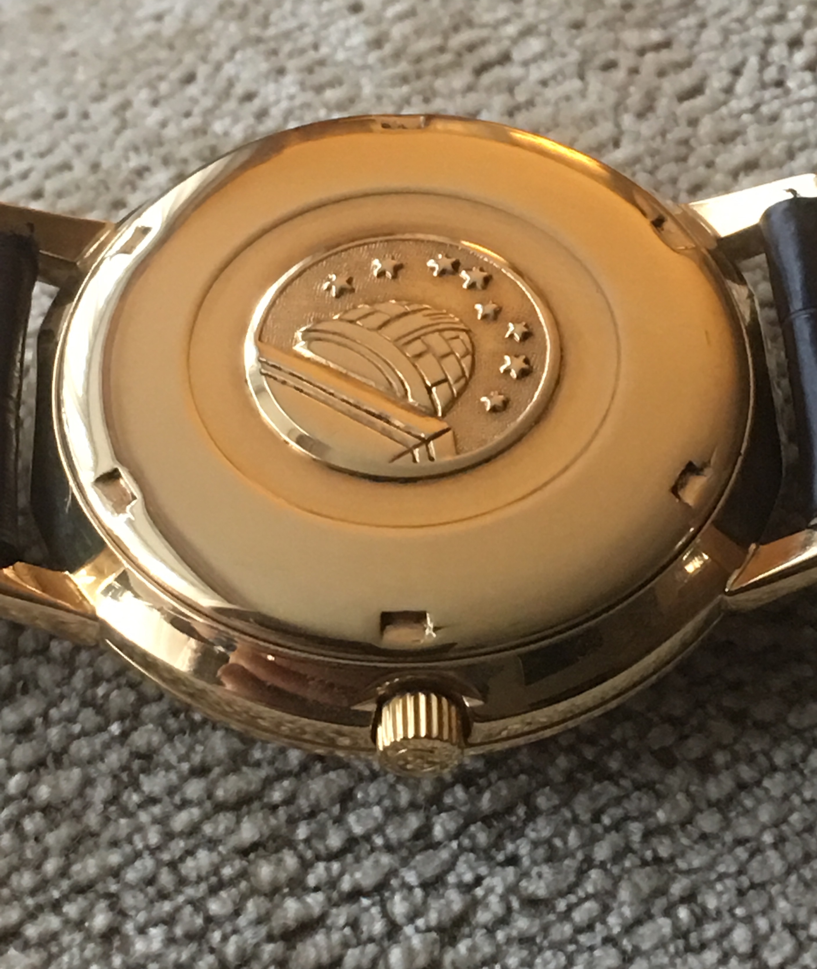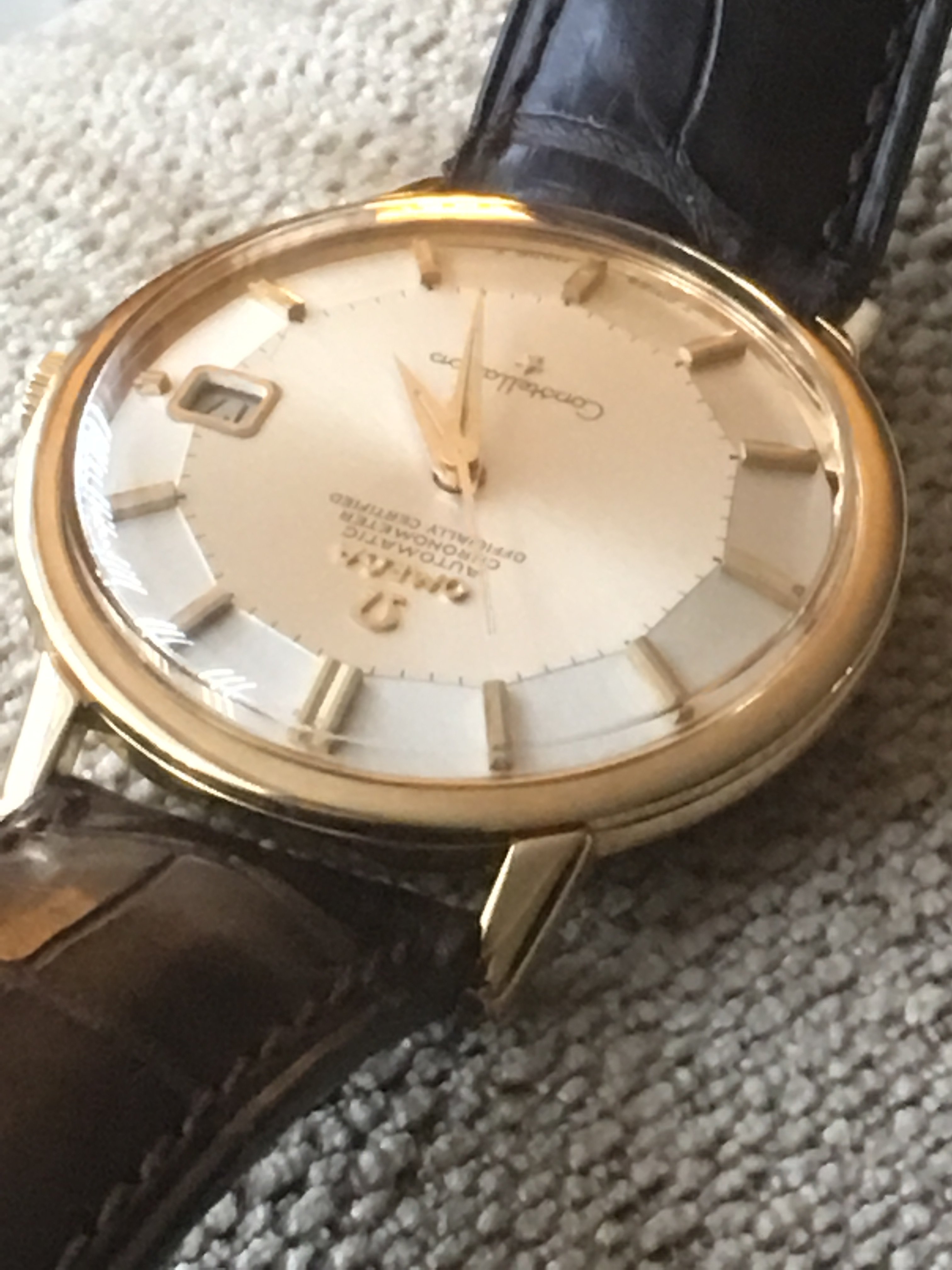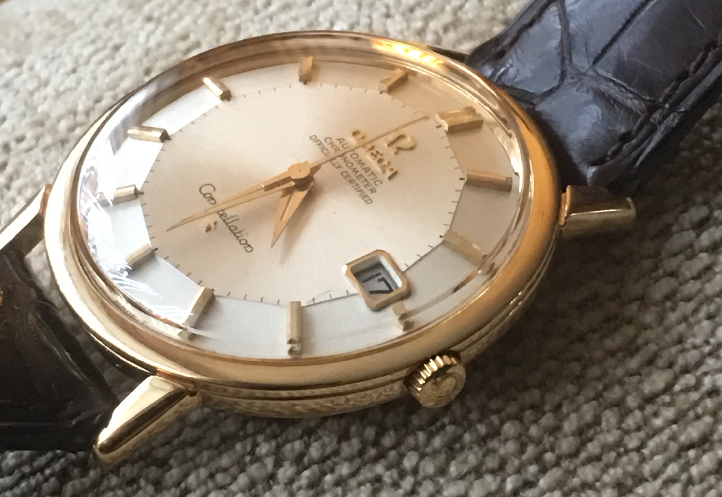 I will quote a comment from when I posted MY first Pie Pan...."A 50 year old watch that's not prefect!! Basphemous!! Hang the witch!" .. Overall look is great, dial is great. Love the medallion and buckle. Enjoy.
