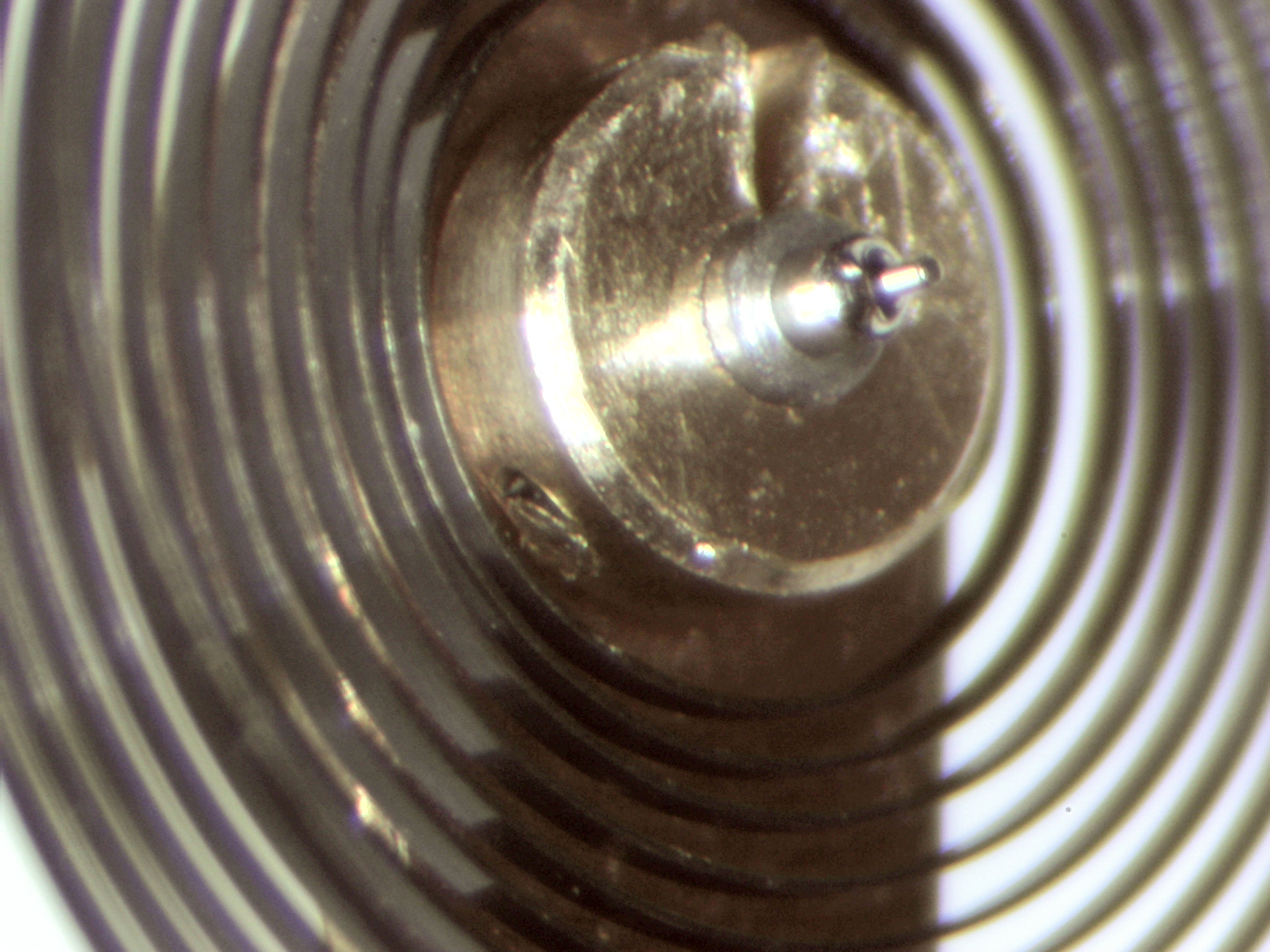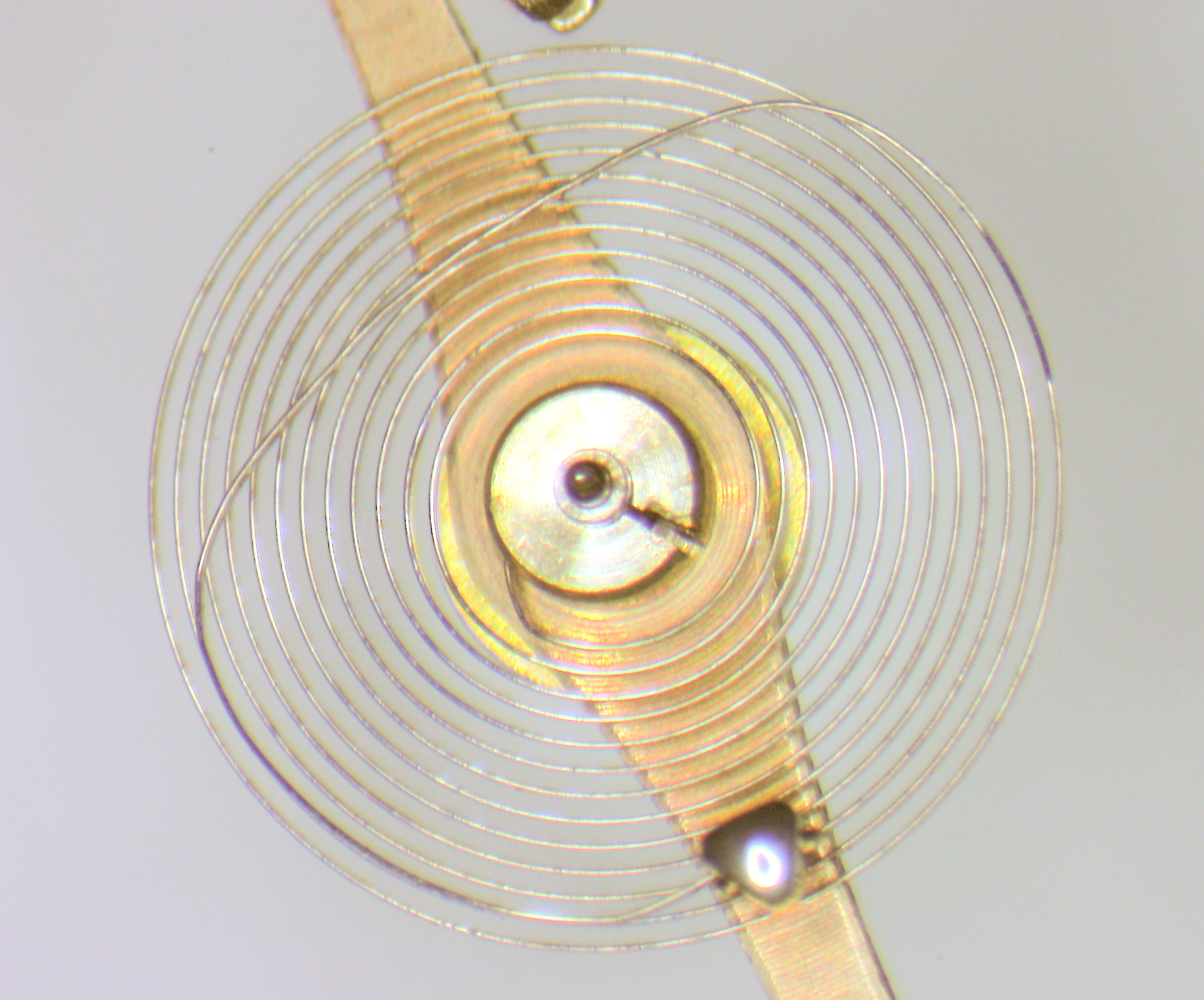 First - here's a look at the hairspring of the NOS balance. This exposure doesn't do it justice - but I think you can kind-of tell how bright and shinny the hairspring is. Looks like it was just made.
