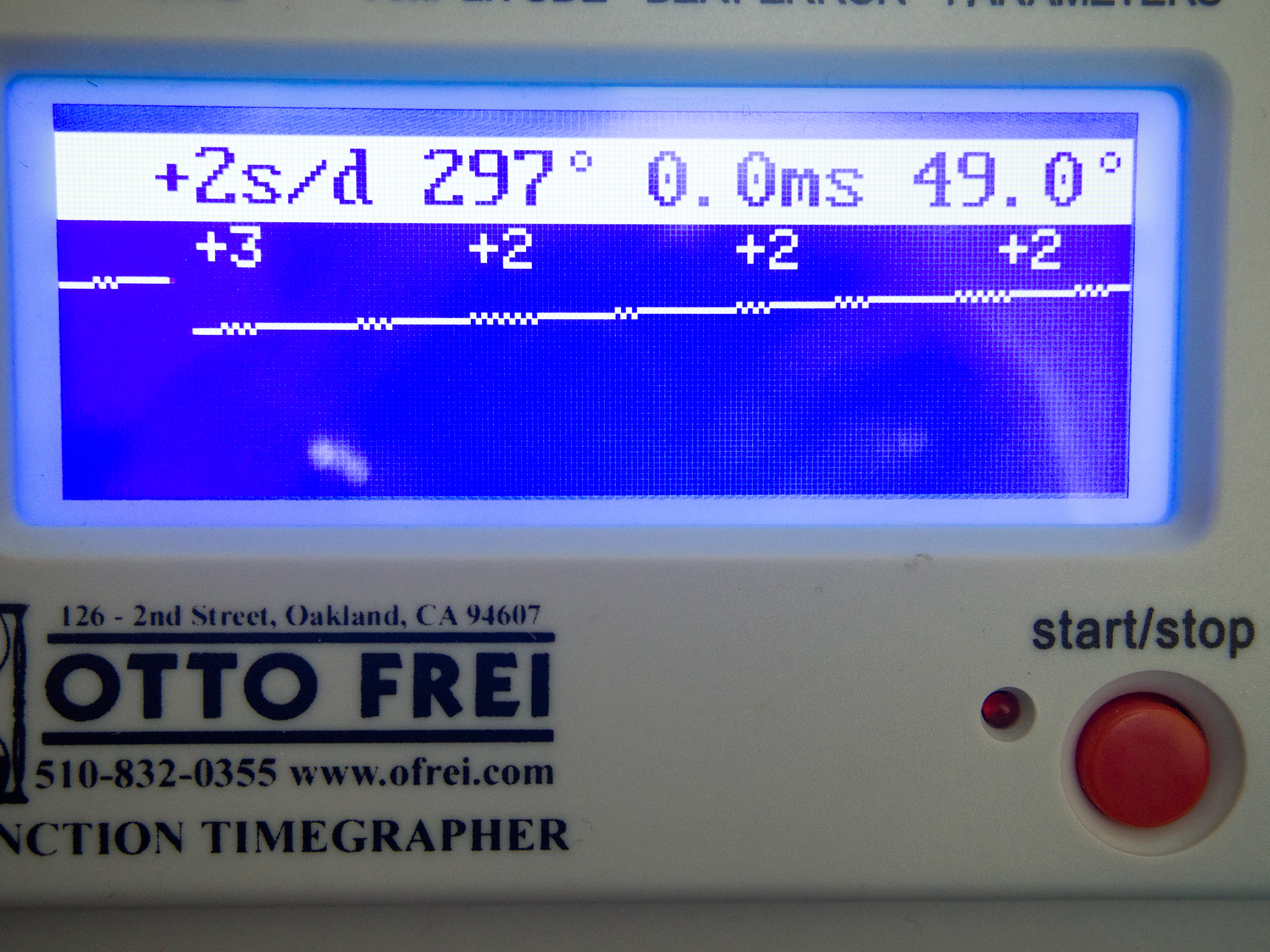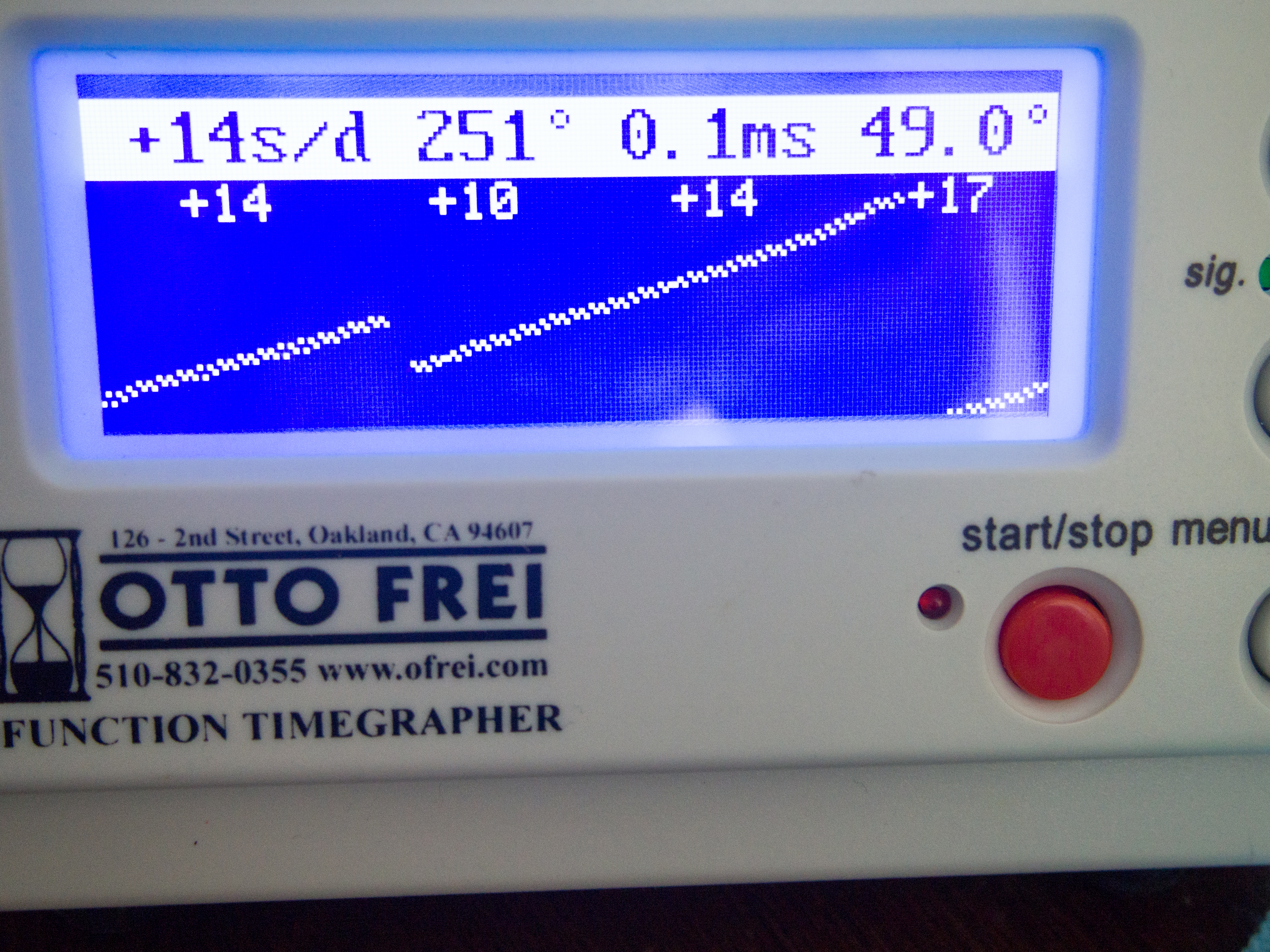 My "full-wind" numbers for the replacement (used) balance look pretty good to me. Though the amplitude drop in the pendant up position seems strange.