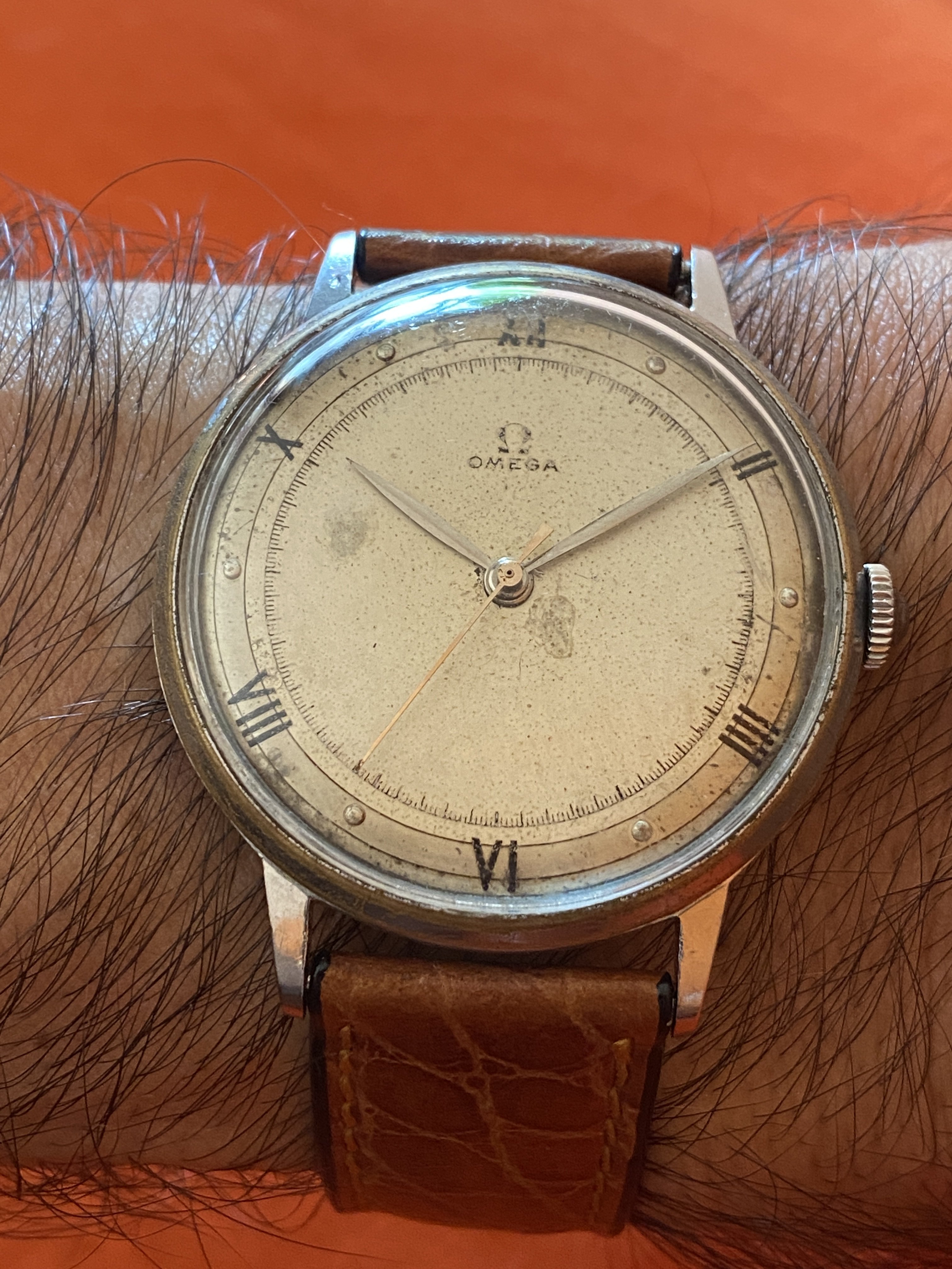 ·Was handed down what I believe is a 1943-1946 Omega (bumper?). I am asking for help with ID of the model and years made. Will add some photos and eventually carefully open the watch to get the serial and reference #’s. Like I said I’m a very amateur watch repairman. I’ve dismantled and cleaned a few dozen Seiko/Citizen/and pocket watches. If the watch is worth more than say $500 in working condition I probably will have it serviced by a real watchmaker otherwise I might give it a go. Thanks in advance. I did read the forum guidelines but forgive me if this initial post has trampled any rules.