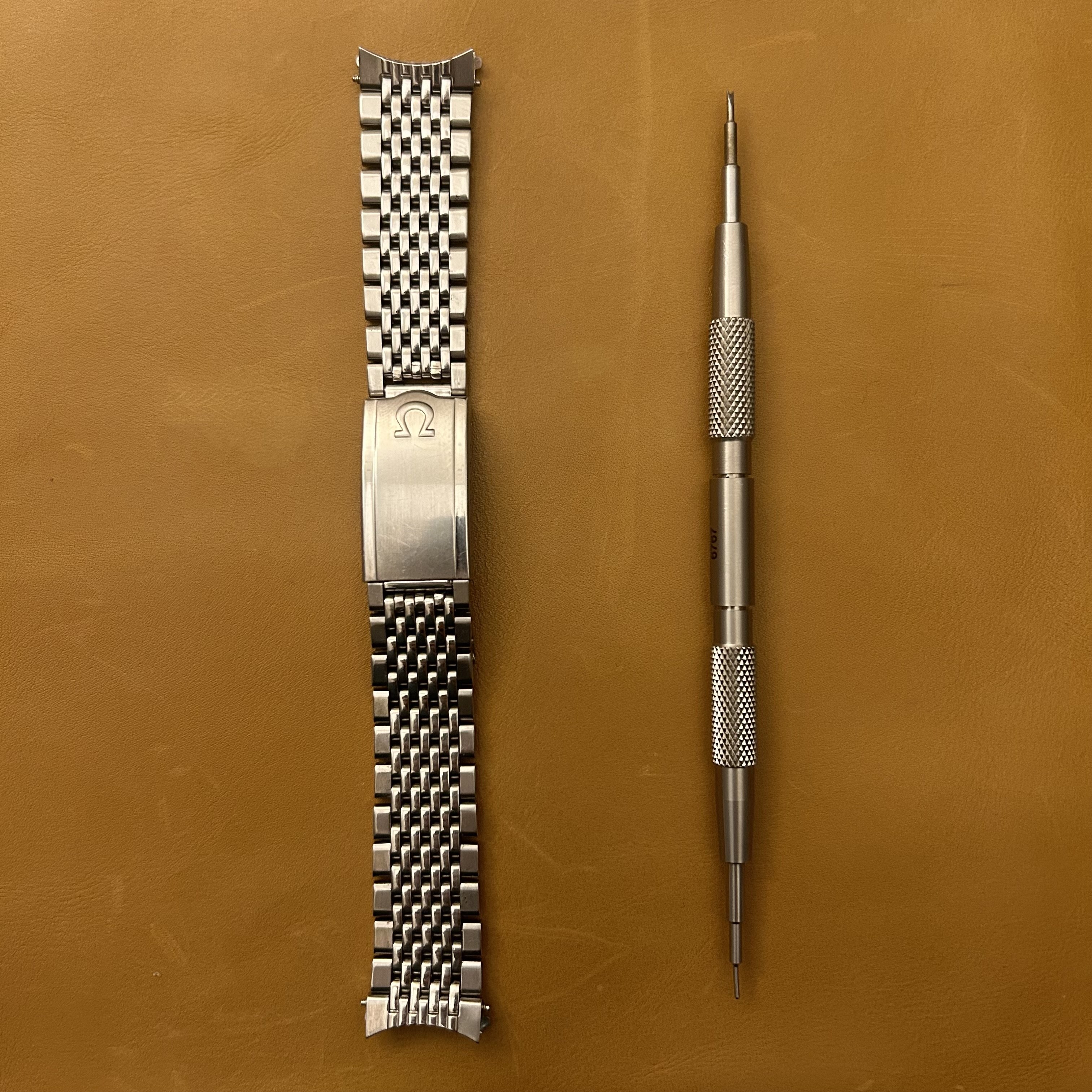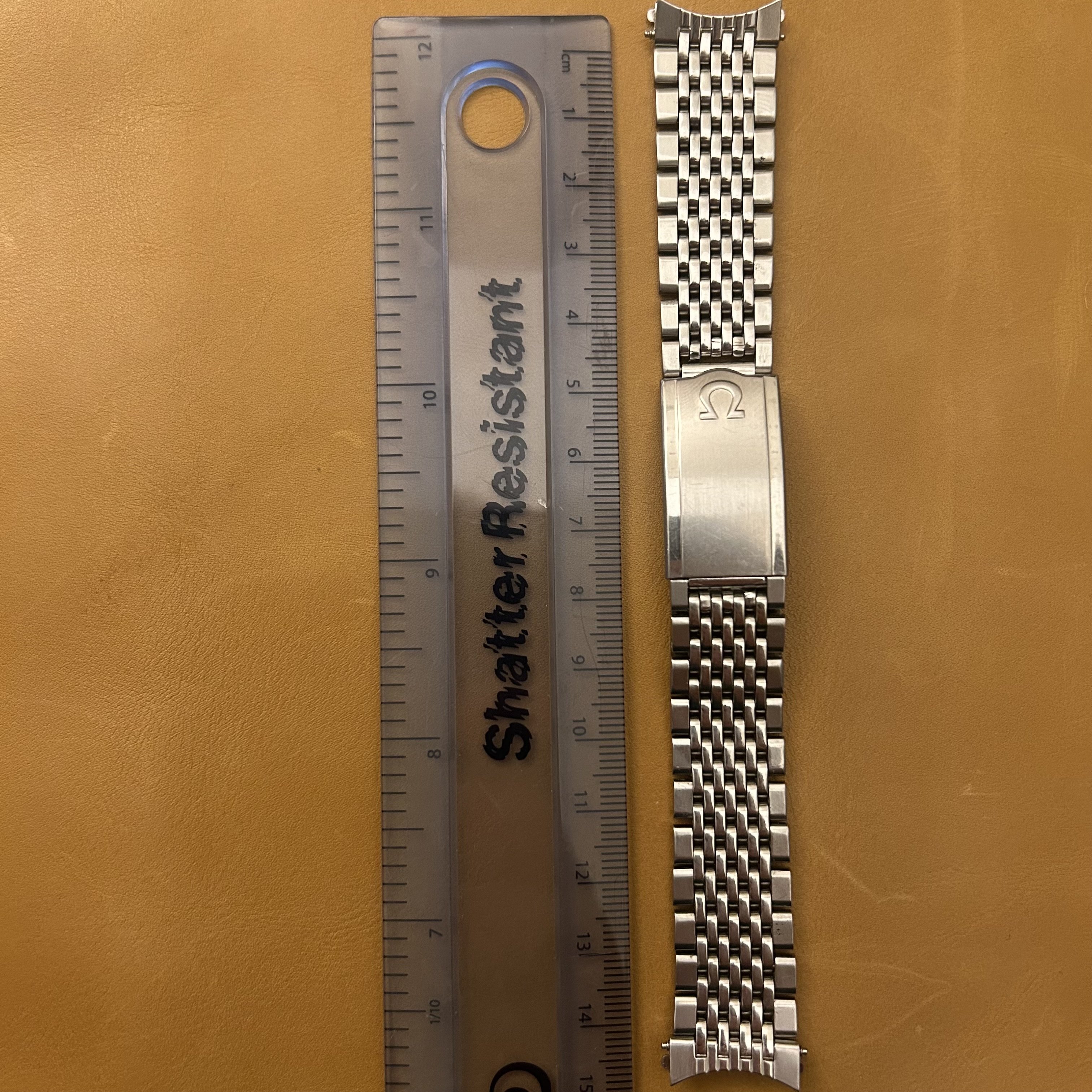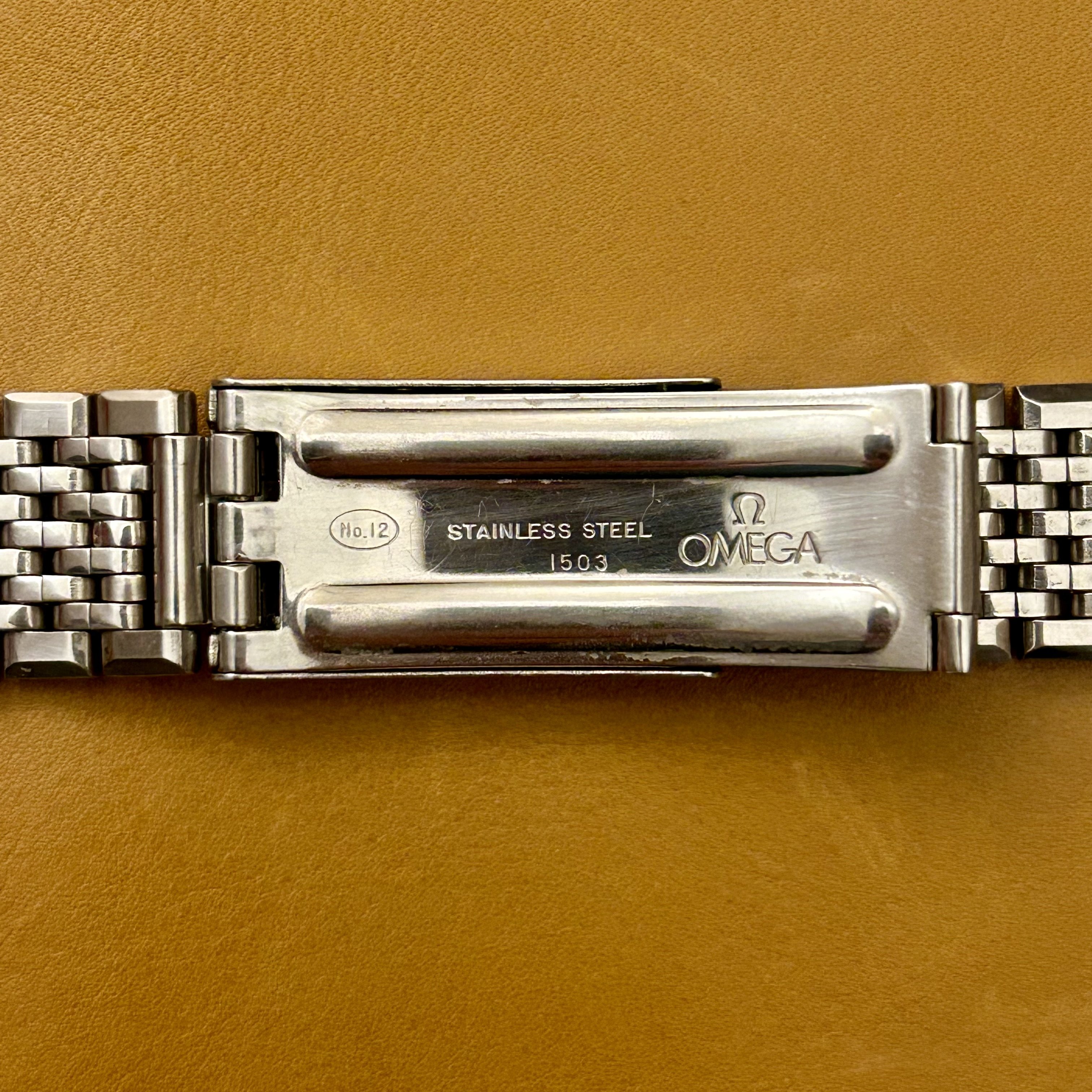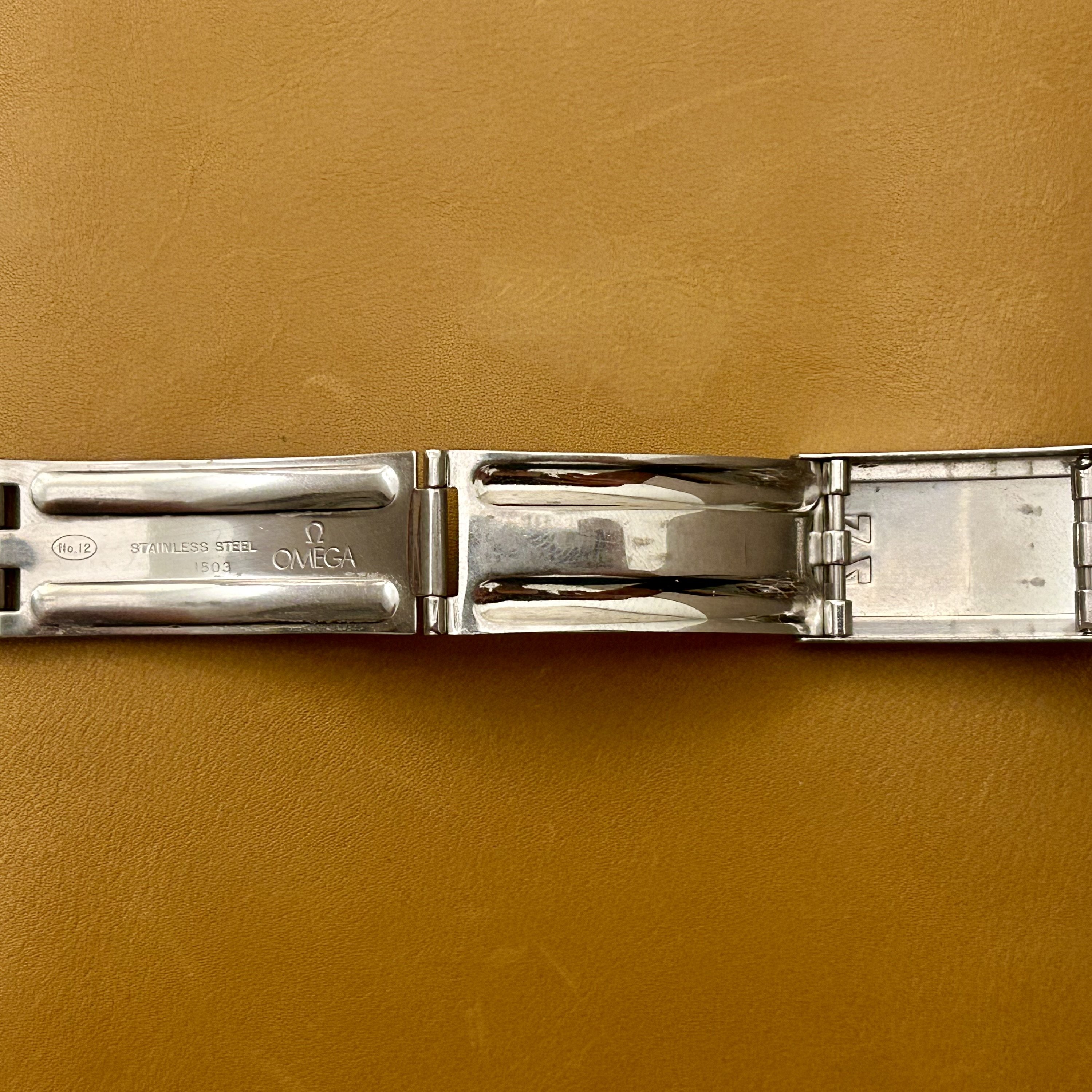·For sale is this nice 1503 bracelet with genuine 72 endlinks originally bought from No Mercy. I’ve realised I prefer leather so for now I’d like to pass this on. It has some stretch but nothing crazy and was very comfortable on the wrist. It fit my 168.005 nicely. Length as you can see is about 14cm. For my roughly 18cm thin wrists it fit with a perfect amount of extra space on the last adjustment hole on the clasp.