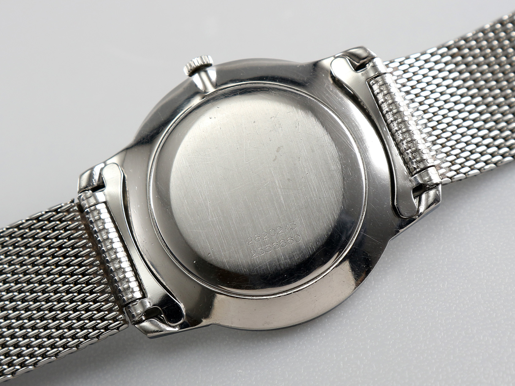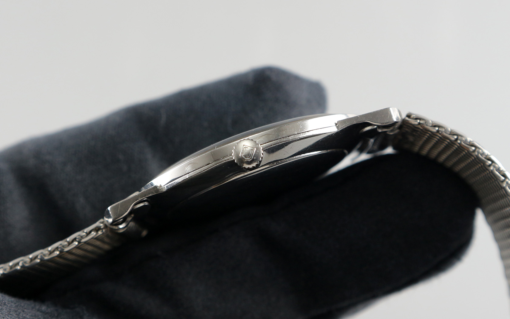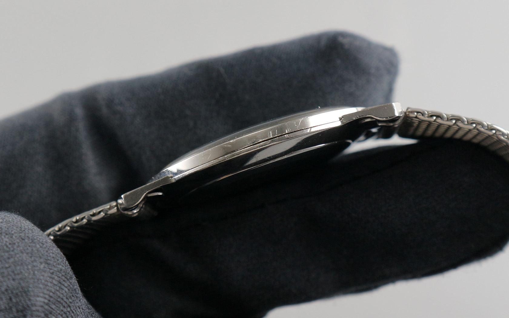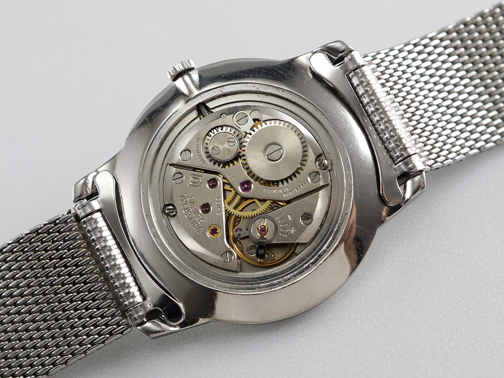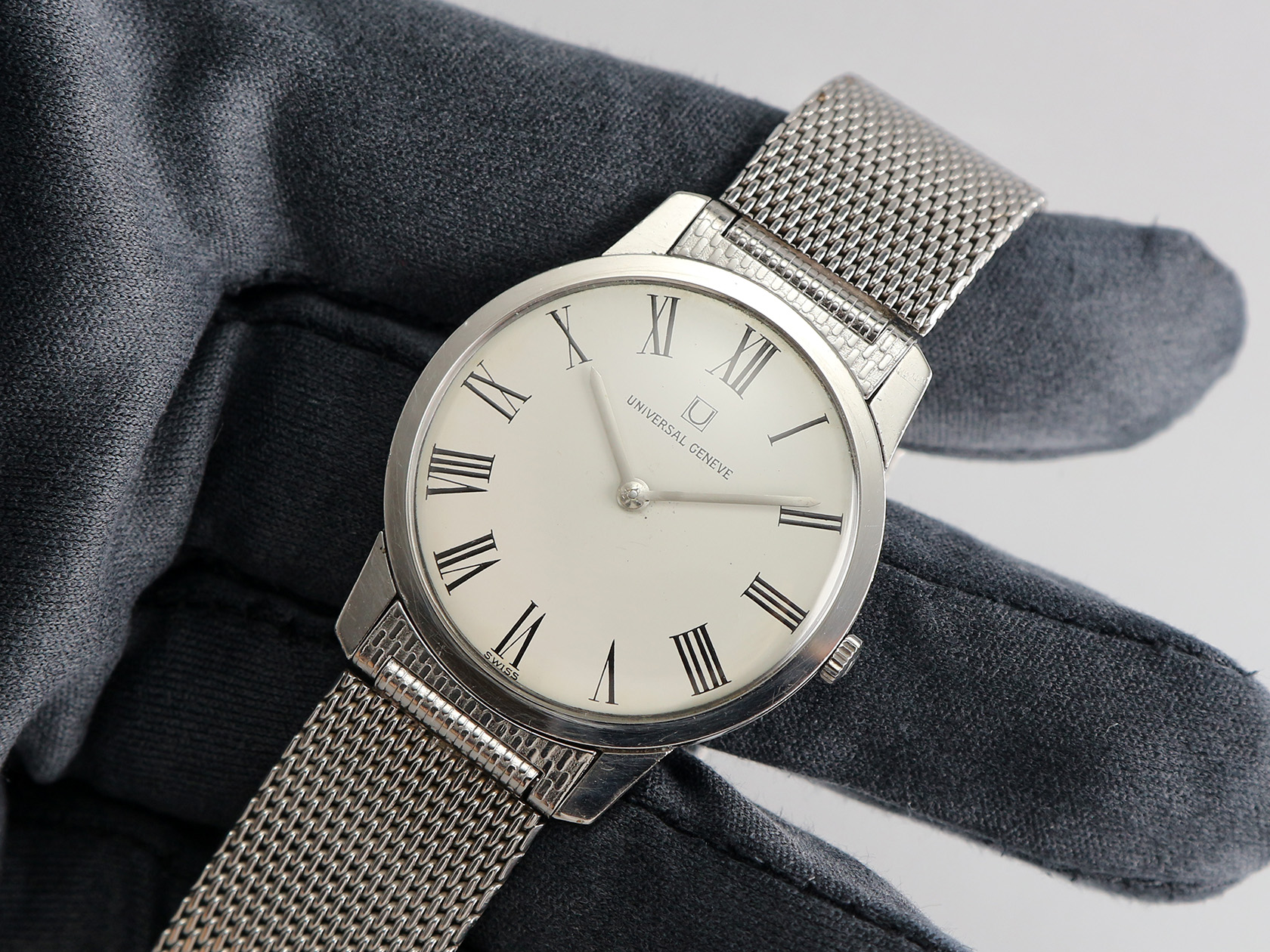 ·Up for sale is a very nice UG dress watch Ref. 28202/3. The original creamy white dial with Roman numerals looks elegant. The case is unpolished and in great shape plus the original crown. It is measure 31mm wide without crown and 37mm lug to lug, lug width is 16mm. Thanks to the ultra-slim profile: only 6.6mm in thickness, it wears larger. Inside is the UG cal. 42, service history unknown but still running strong & keeping time. Come with an original free-size mesh bracelet.