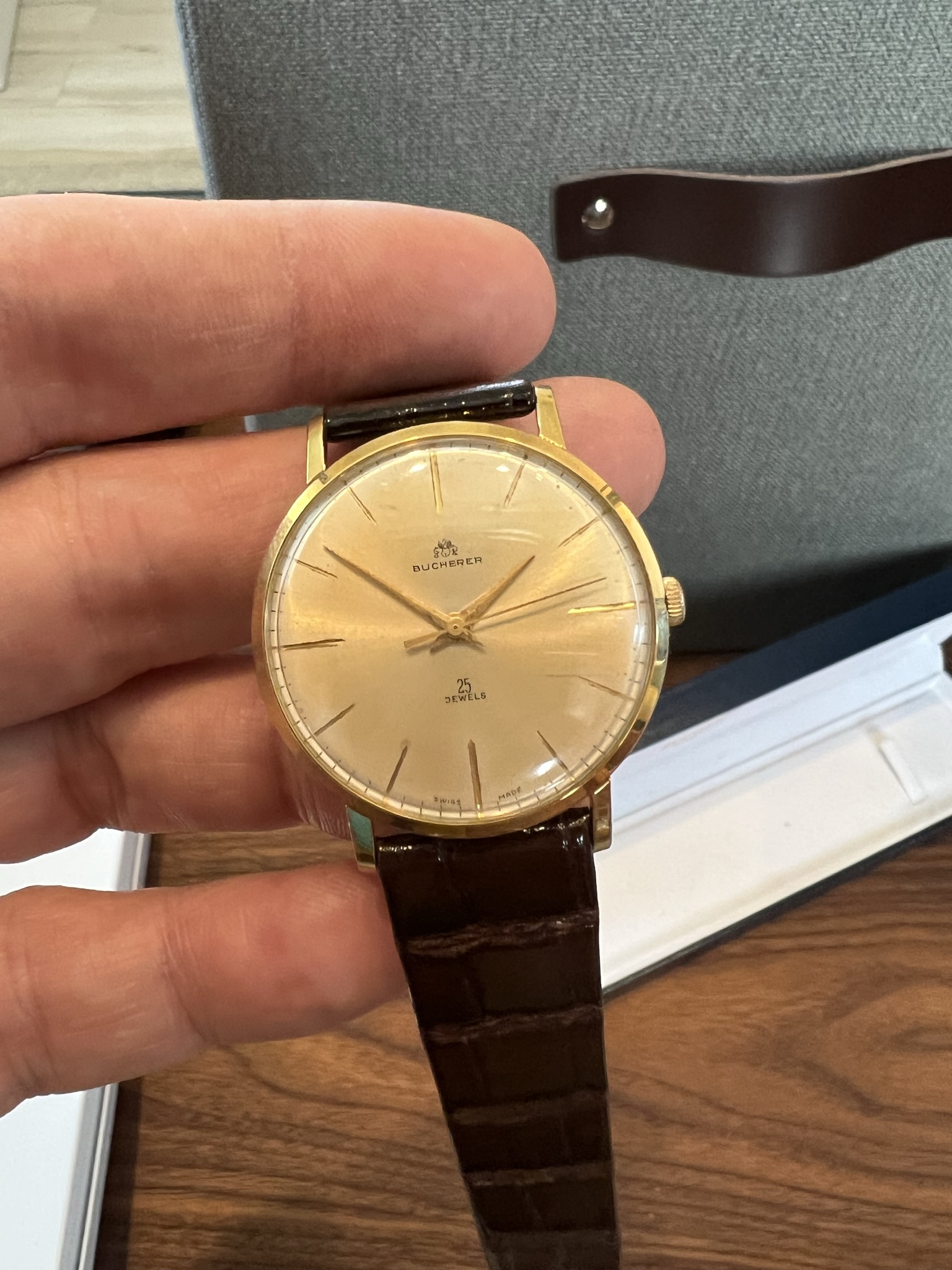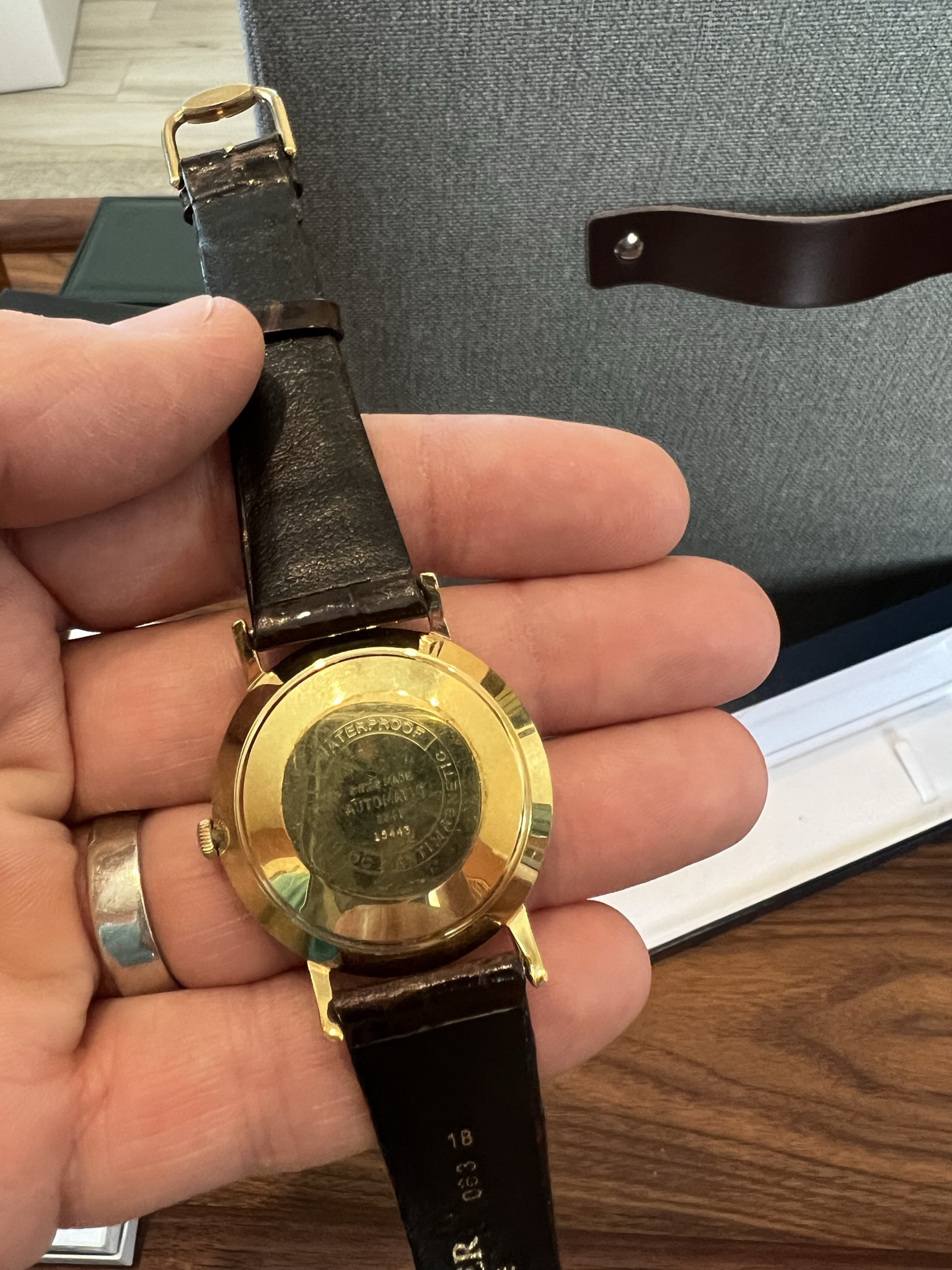 I don’t know much about this one, but I’ve had it sitting in a box for a while. It has a front loader case. I don’t want to damage the crystal by pulling the movement. Movement winds and sets and sounds like a full rotor automatic. There is no wear on the strap, so don’t think this was ever worn. I will have to get a new pic of the back, sorry it is so terrible.