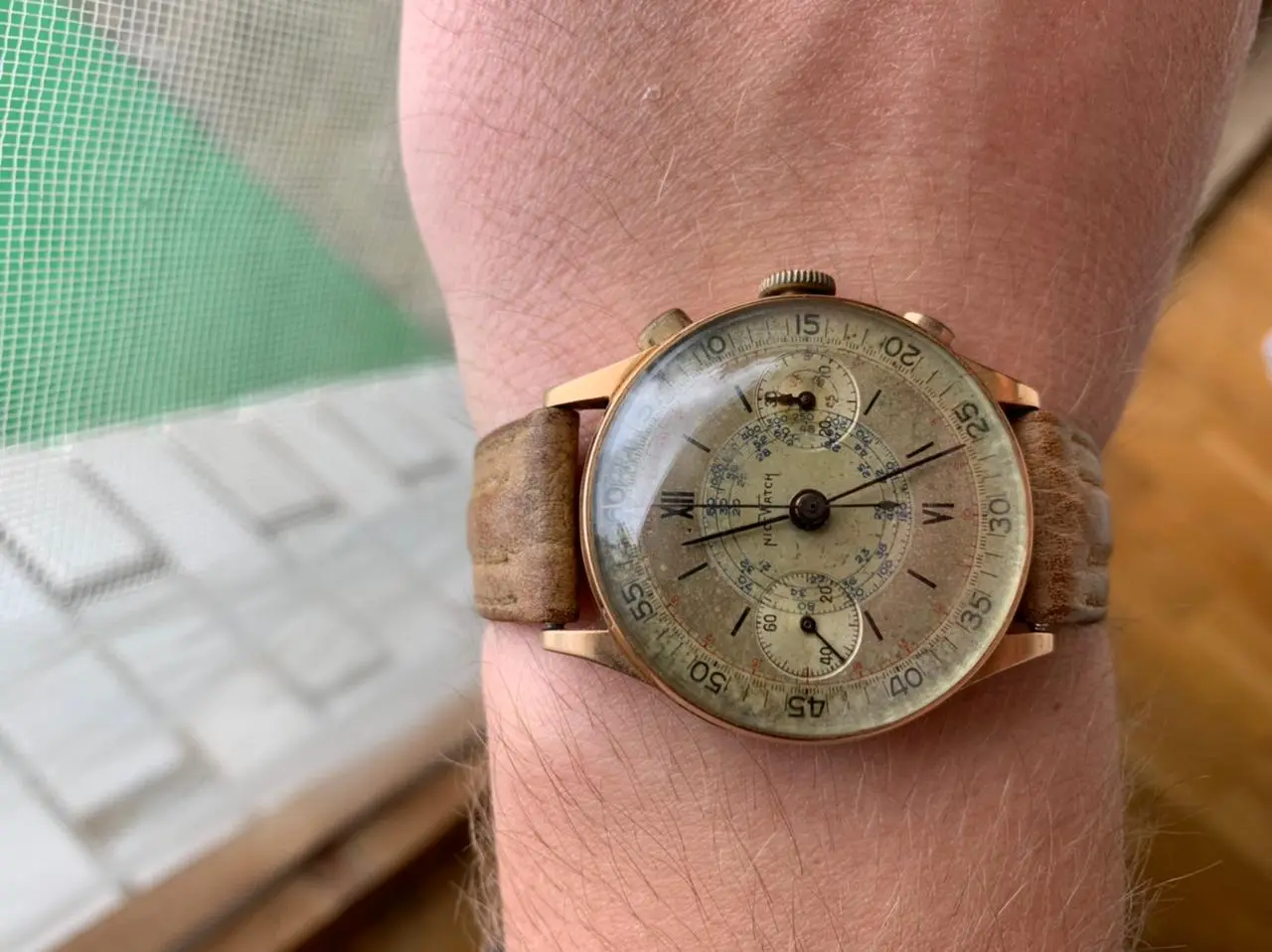 ·Hello collectors, I’m looking for more information on this Nice Watch Co. vintage chronograph (serial 217254, 20-micron gold-plated case, likely Landeron 48 movement).