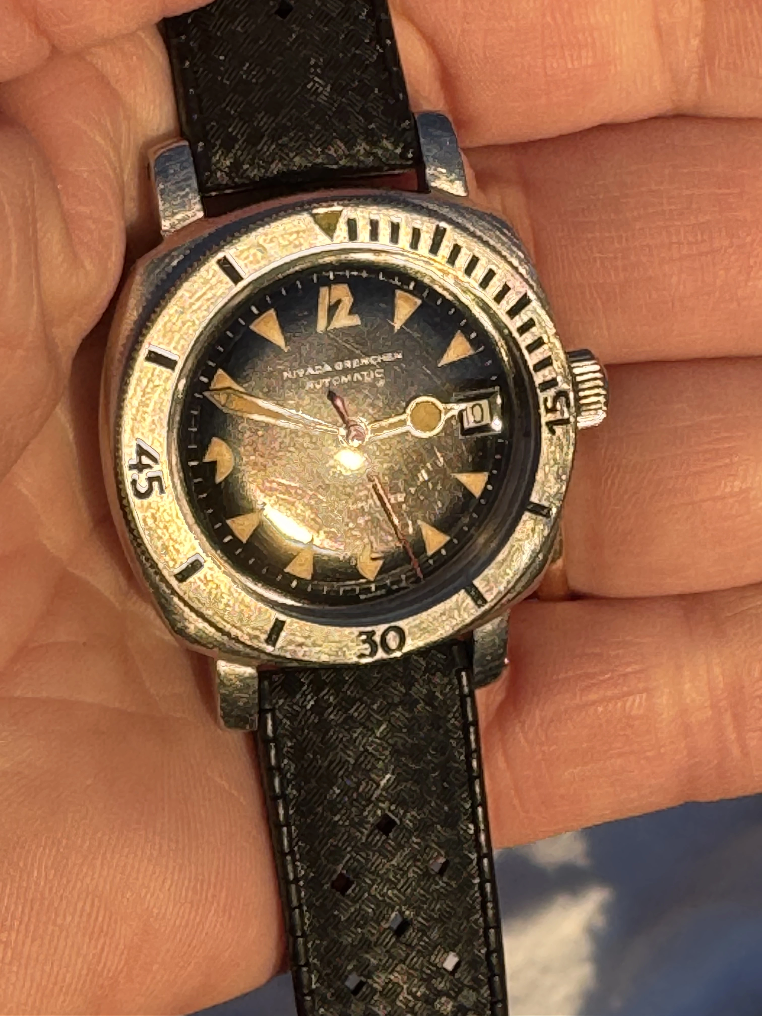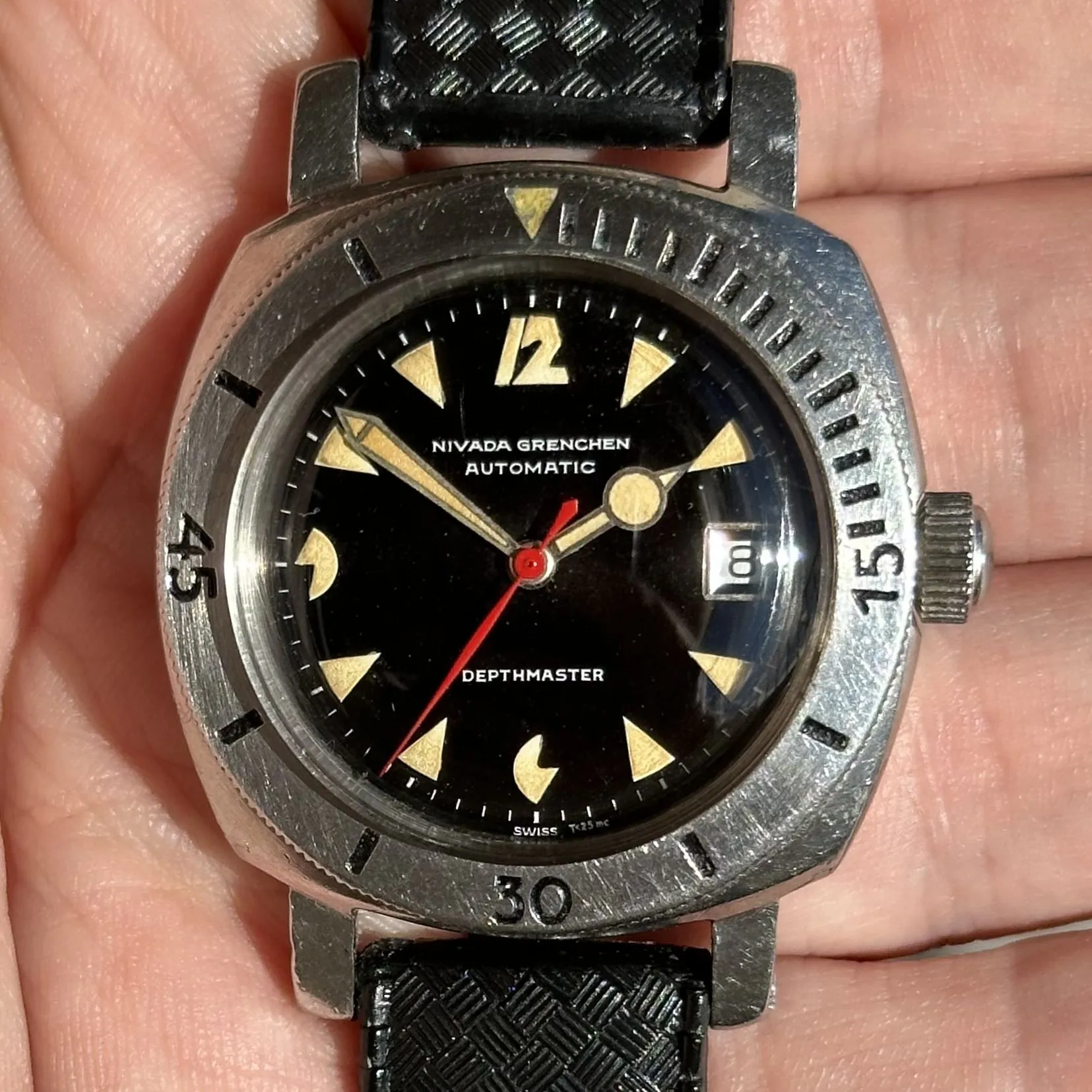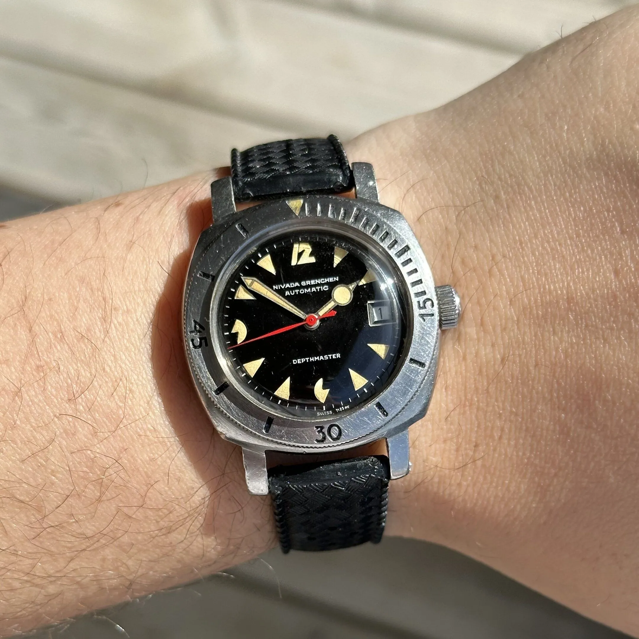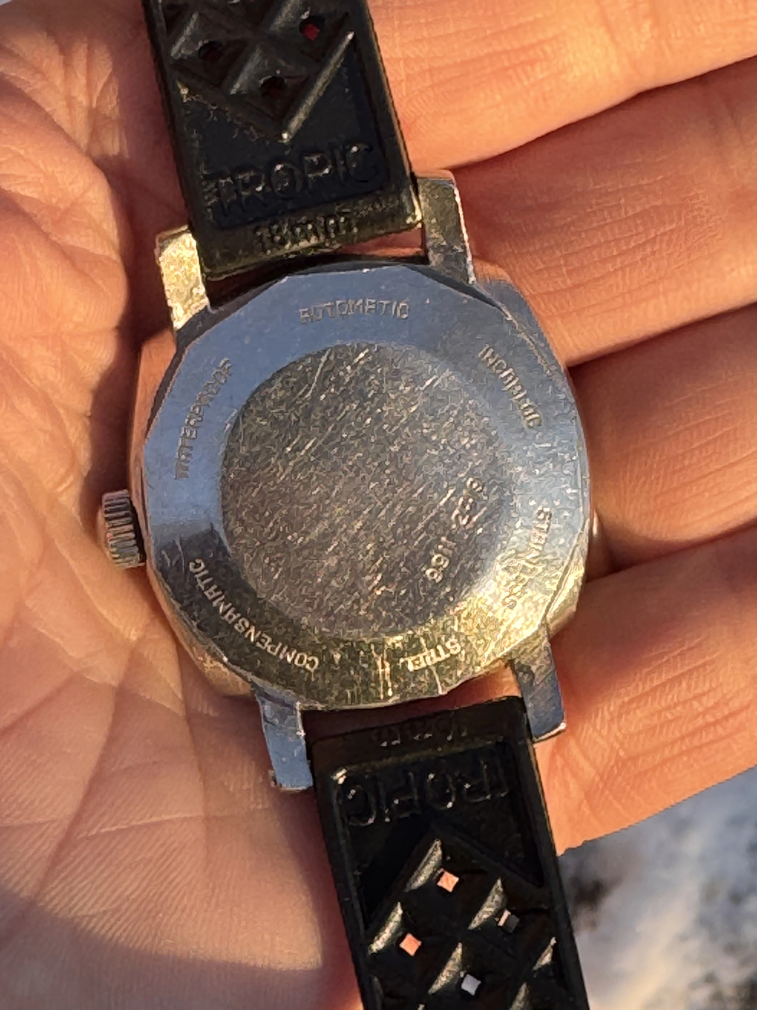 Watch comes on a brand new expensive swiss tropic rubber strap.
