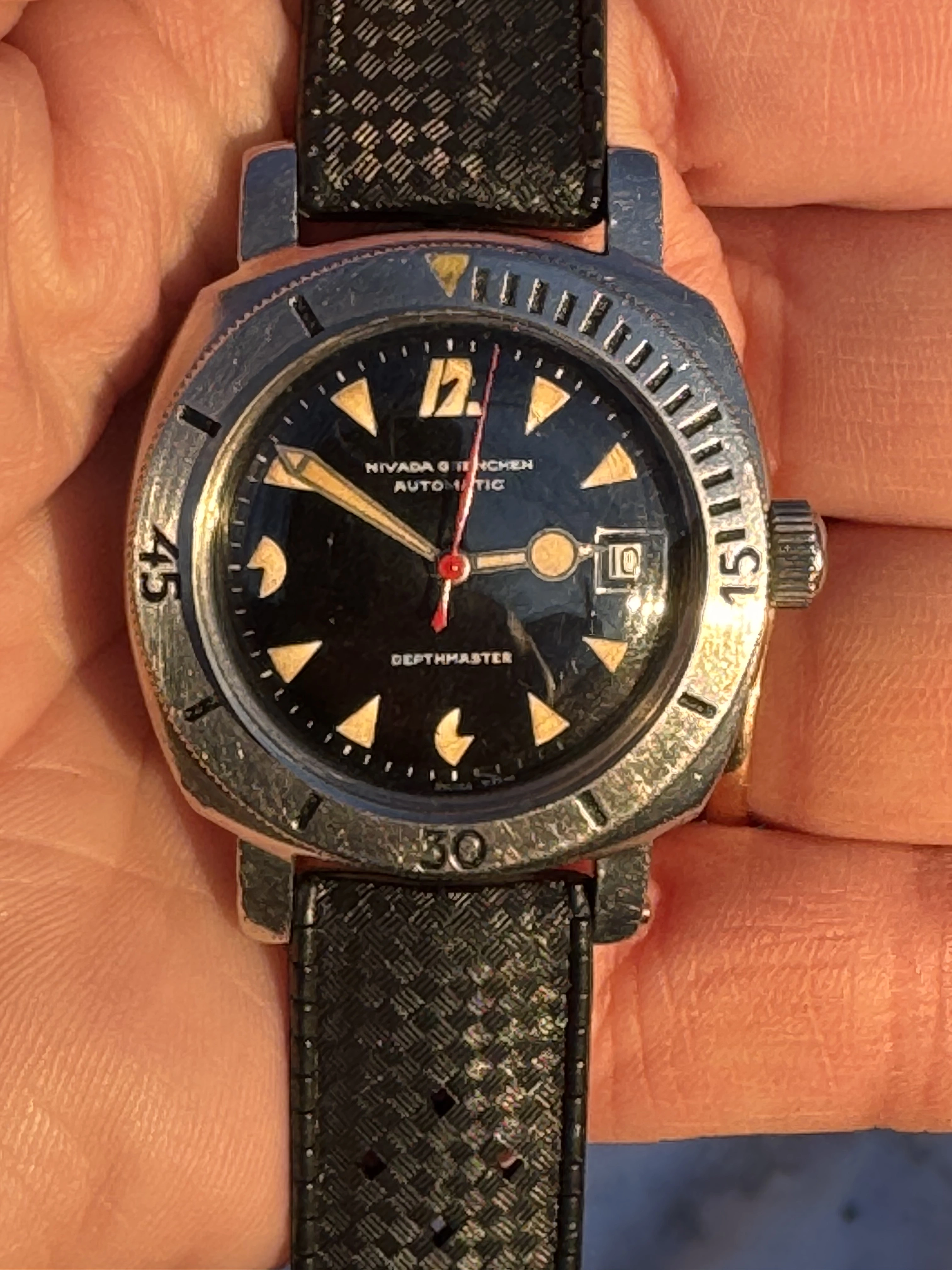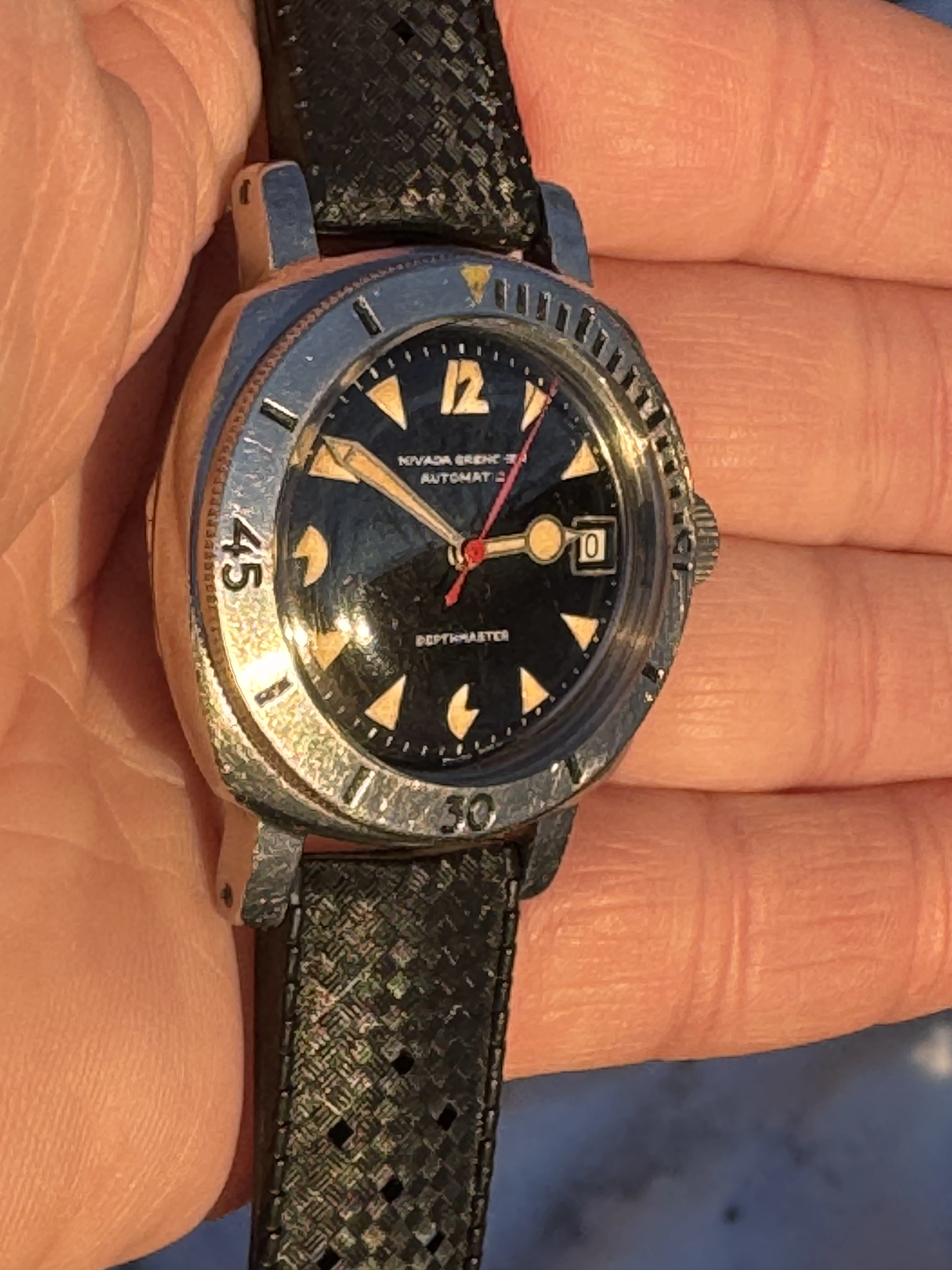 ·Selling a well 1000m diver Nivada Depthmaster Pacman from the 60’s. Dial and hands are in very good condition with lovely patina. Case is worn but sharp. These are hard to find in these condition.
