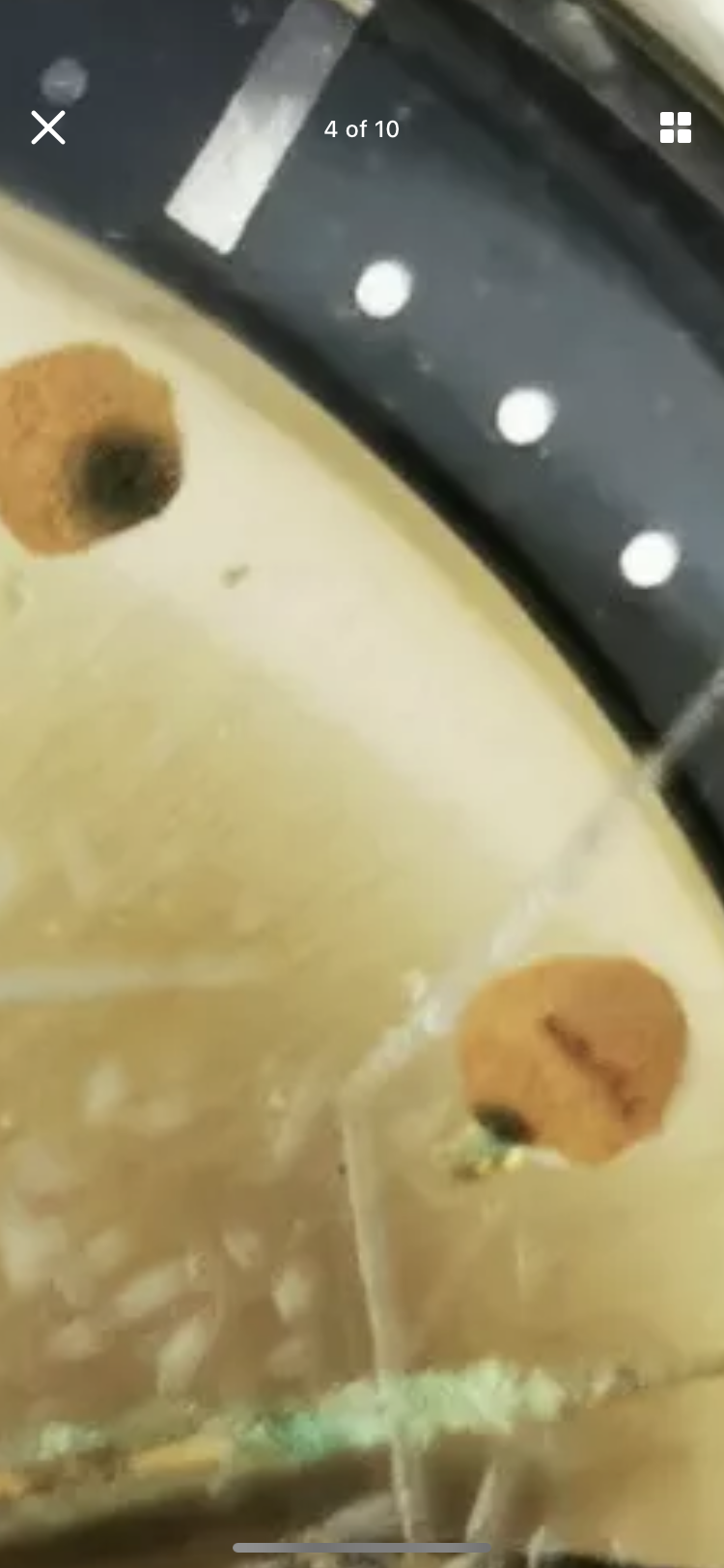 Wow- I totally missed that. So the dial looks like standard aging, lacquer is bubbling, lume is yellowed and has a few moldy patches (commensurate with a dial that’s seen some moisture), but on further examination, it looks almost strangely patina’d- I always looks at lume plots as a determiner of condition and originality (like blood splatter- it tells a story), but this is very unusual spotting for lume- almost like the damage was applied or spot burned