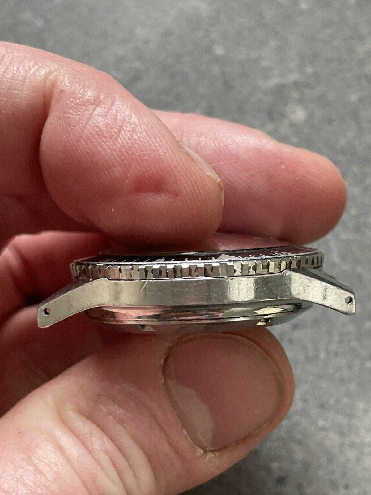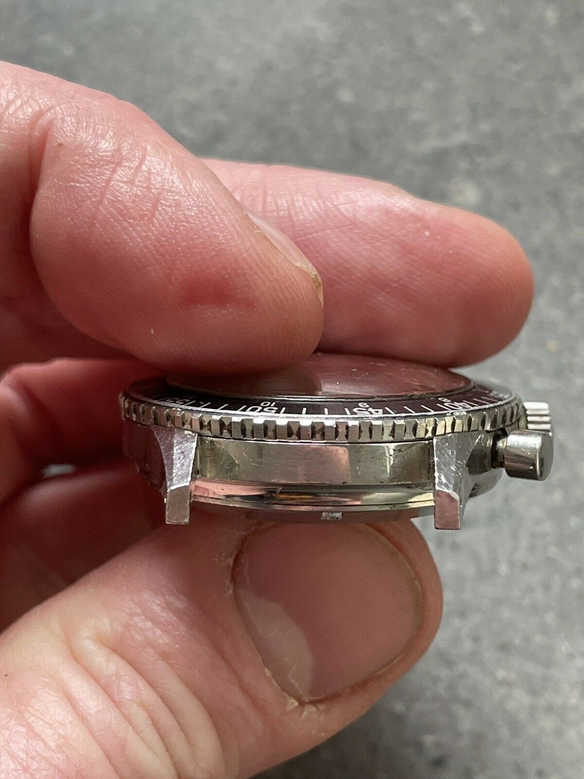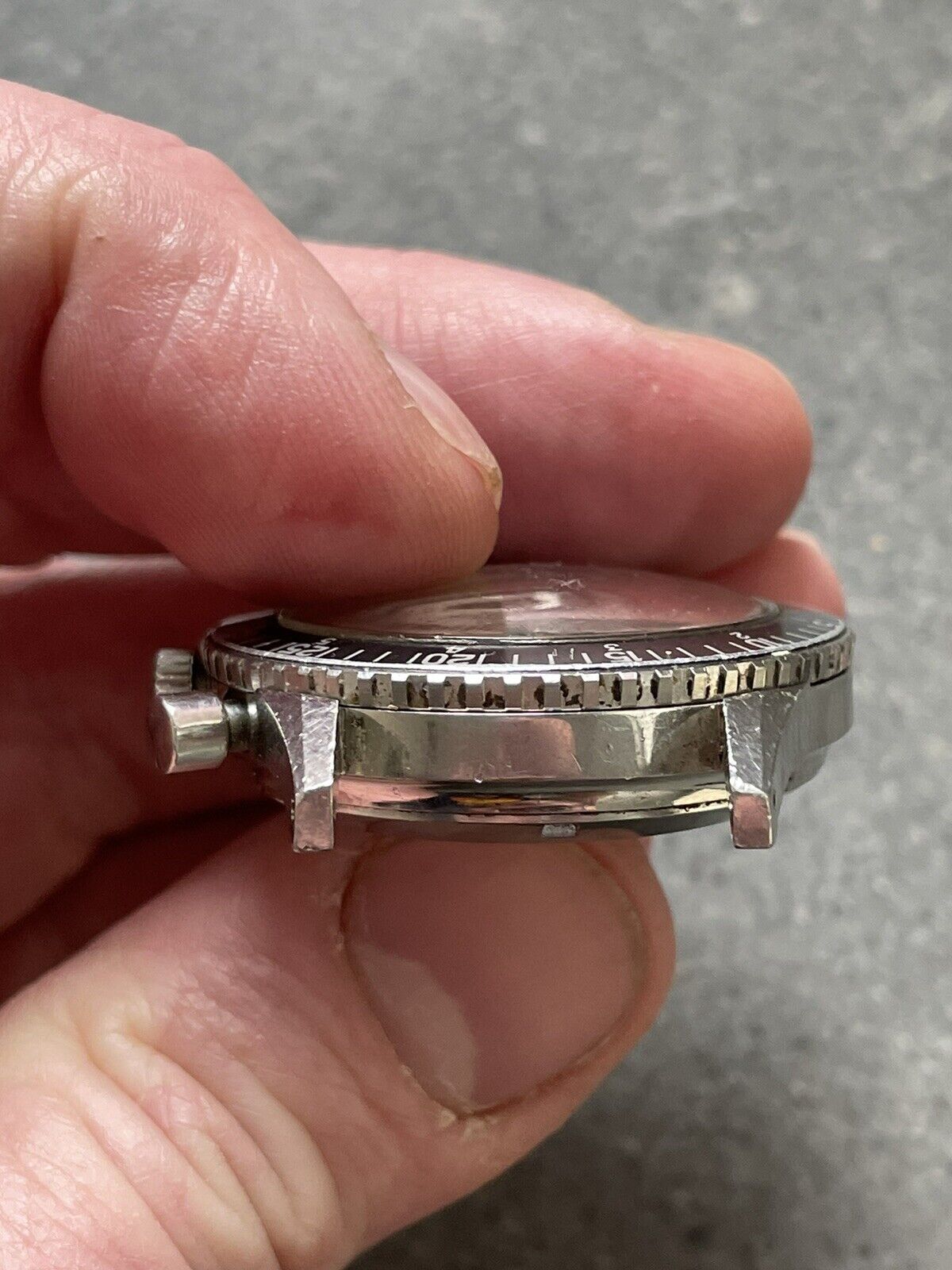 CASE: 39mm case (without signed crown) is in excellent, unpolished condition; all bevels are obvious, and there's light marks from wear, as you'd expect of anything pushing 60 years old. The caseback etching is clear, the crown is signed, and the bezel rotates bidirectionally as it should. The seemingly original crystal is crazed. The watch comes on a JB Champion straight-end Bullet-link bracelet that fits my 7.25" wrist fine. Caseback is marked 1837 M 8222.