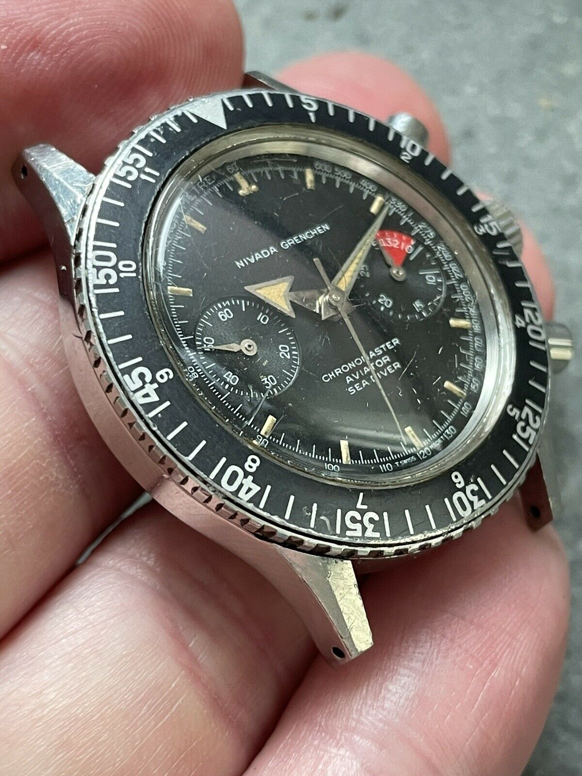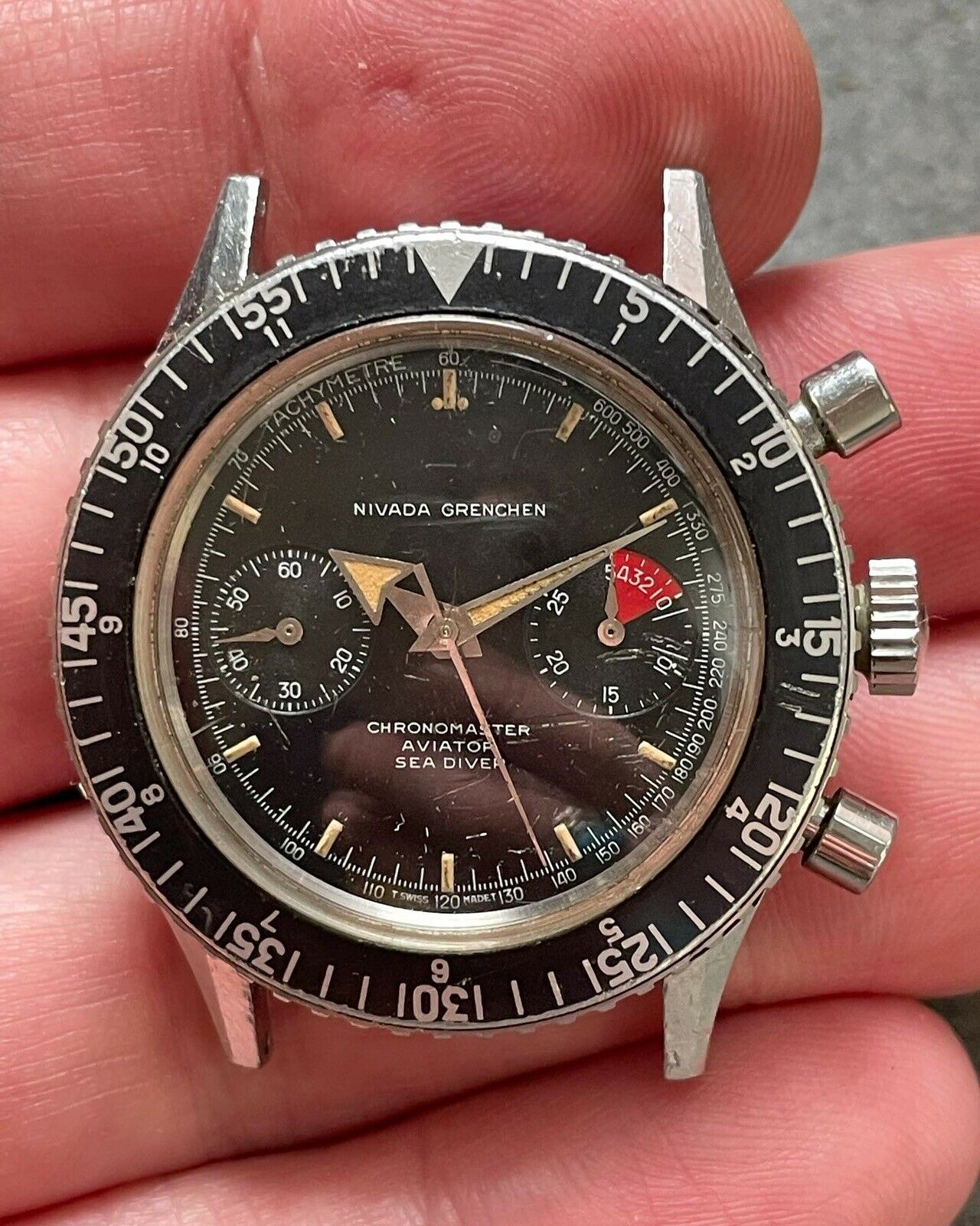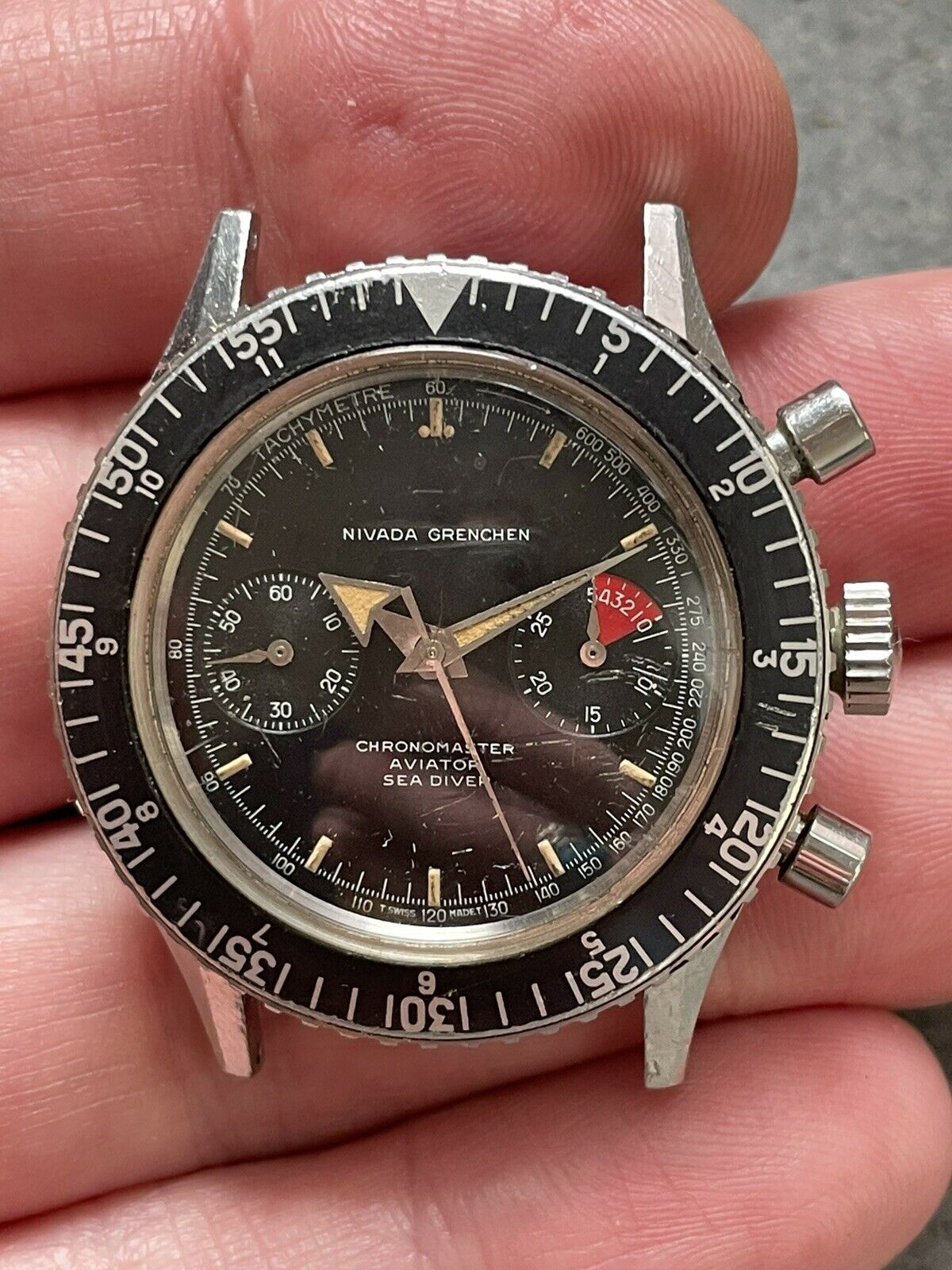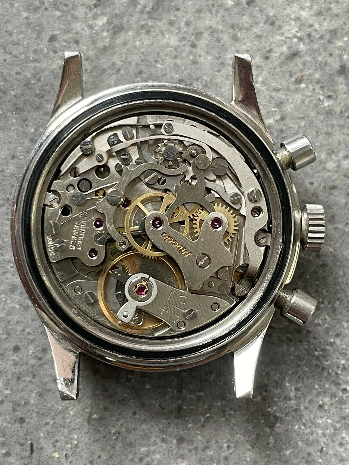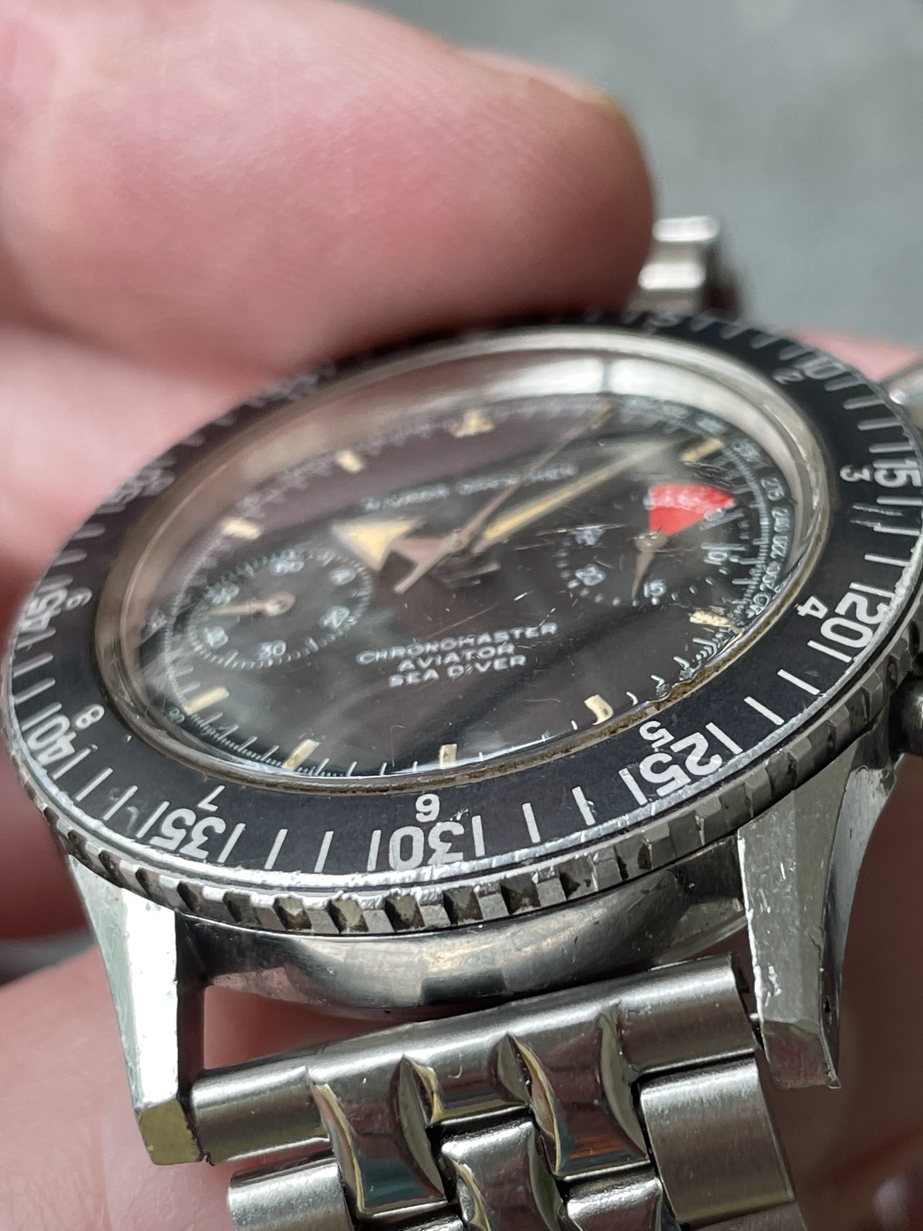 MVMT: The signed Valjoux 92 movement is currently running and keeping time. The chronograph starts/stops/resets as it should. In the time I've had this watch, I've had no issues. That said: I don't know the service history (there are caseback markings indicating service at some point, but I'm not the original owner and have no idea when that was). I presume it'll need a service at some point but, at present, it's woprking for me.