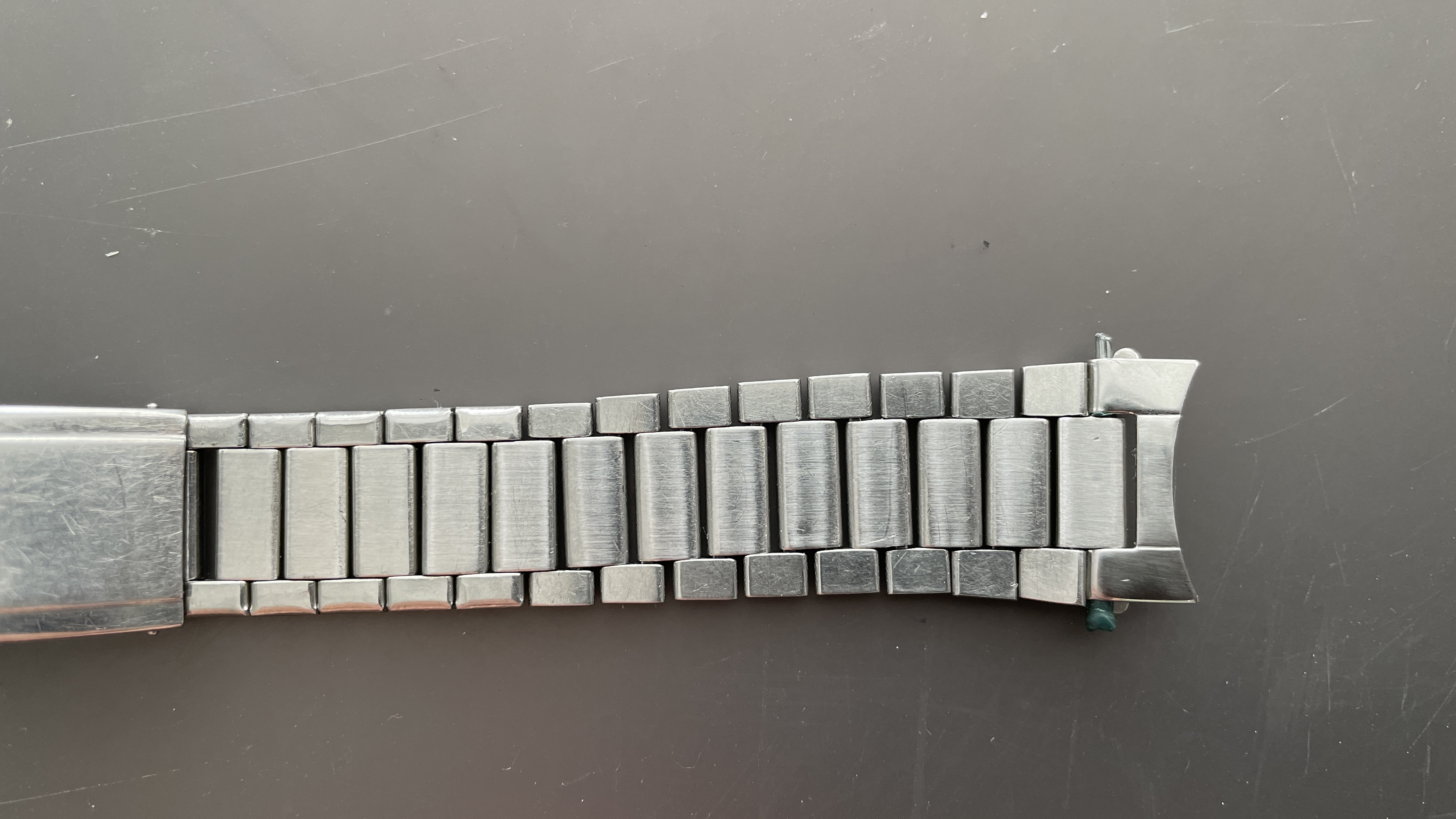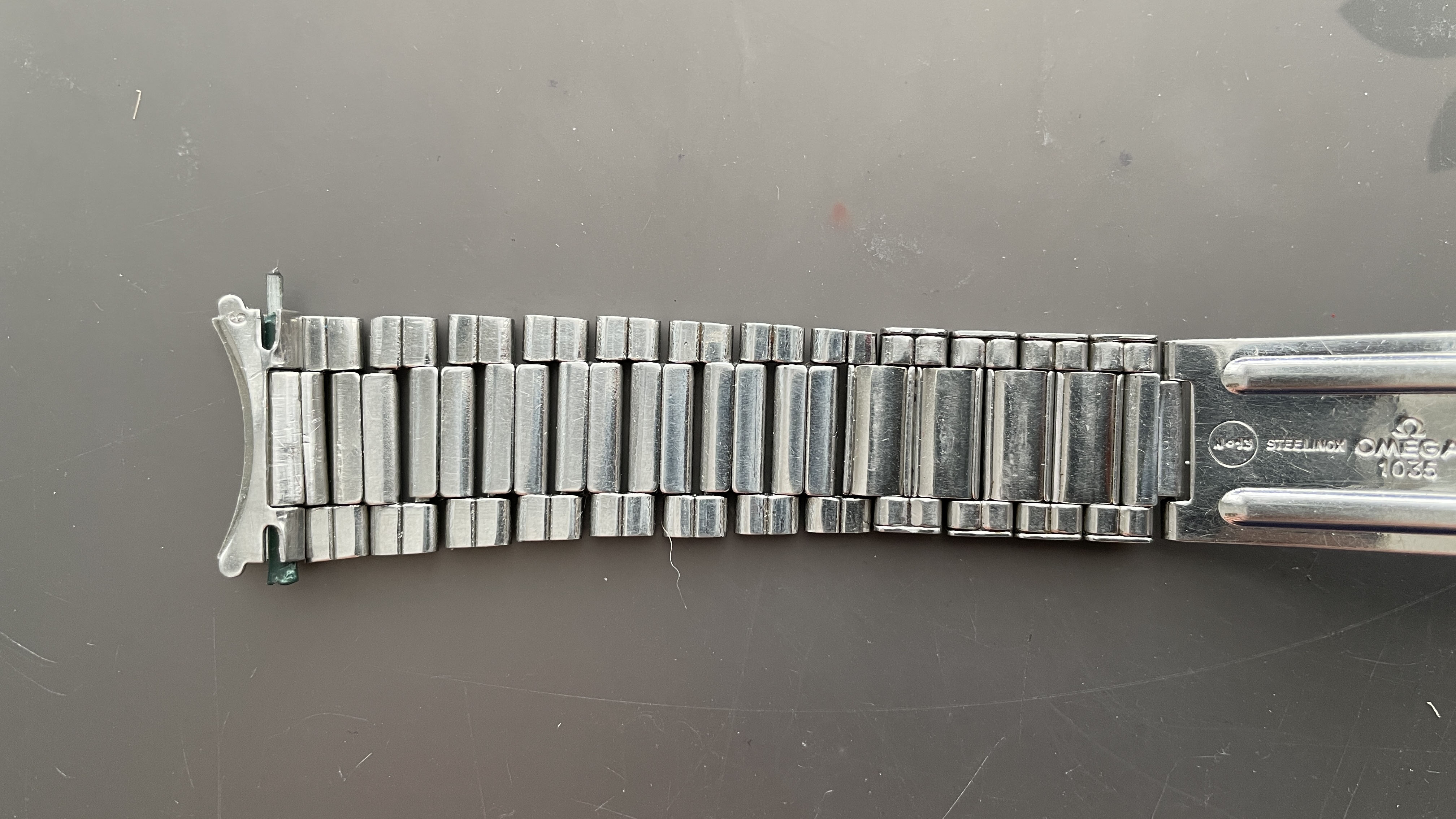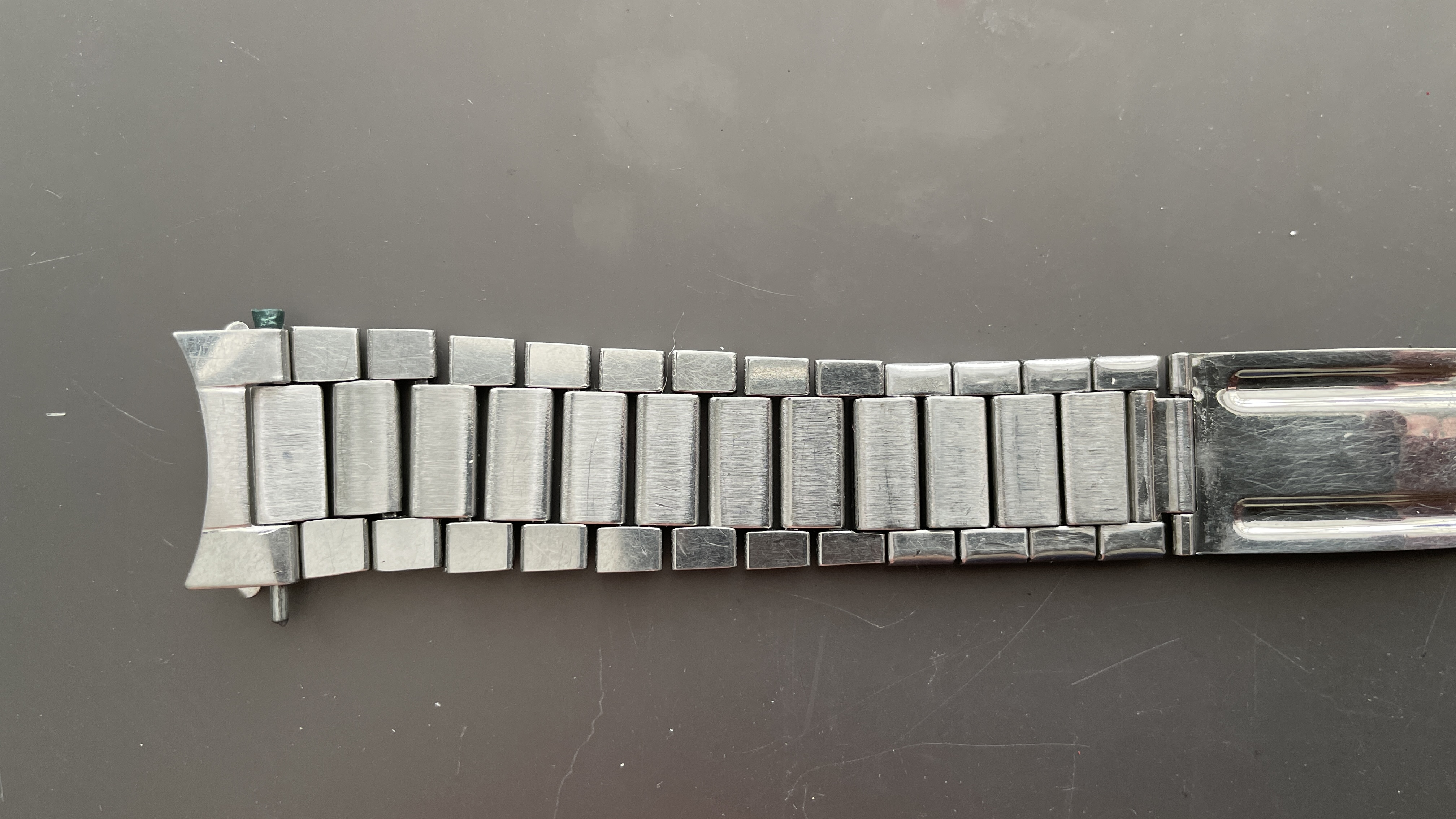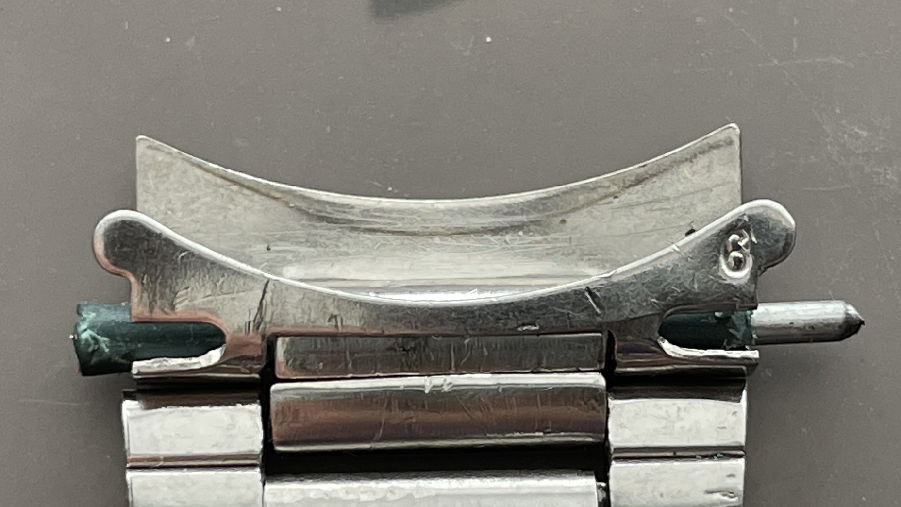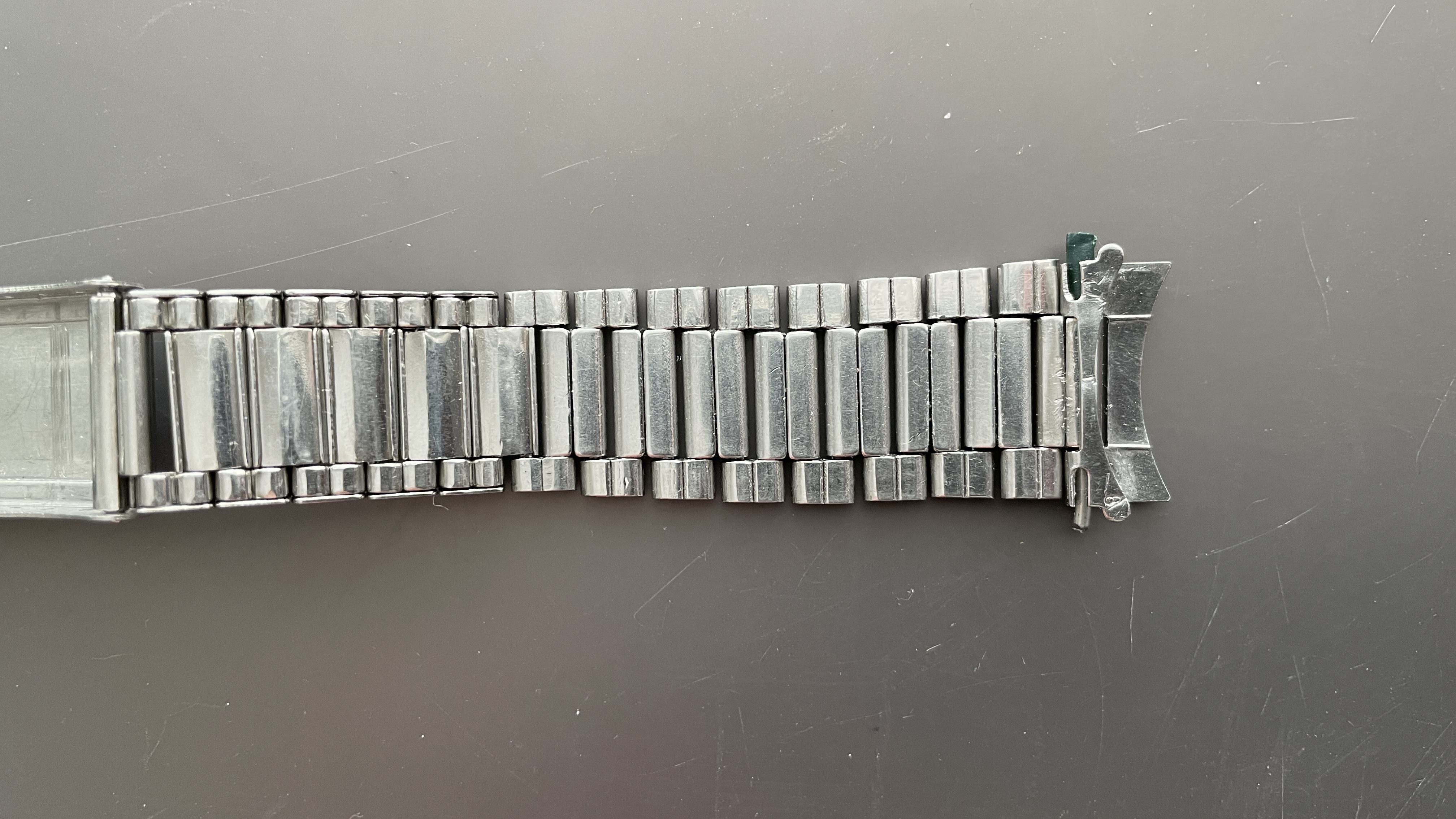 The bracelet is stamped 2/67 and is in very good condition for its age, with remarkably little slack (I’ve included a picture with maximum curve.)