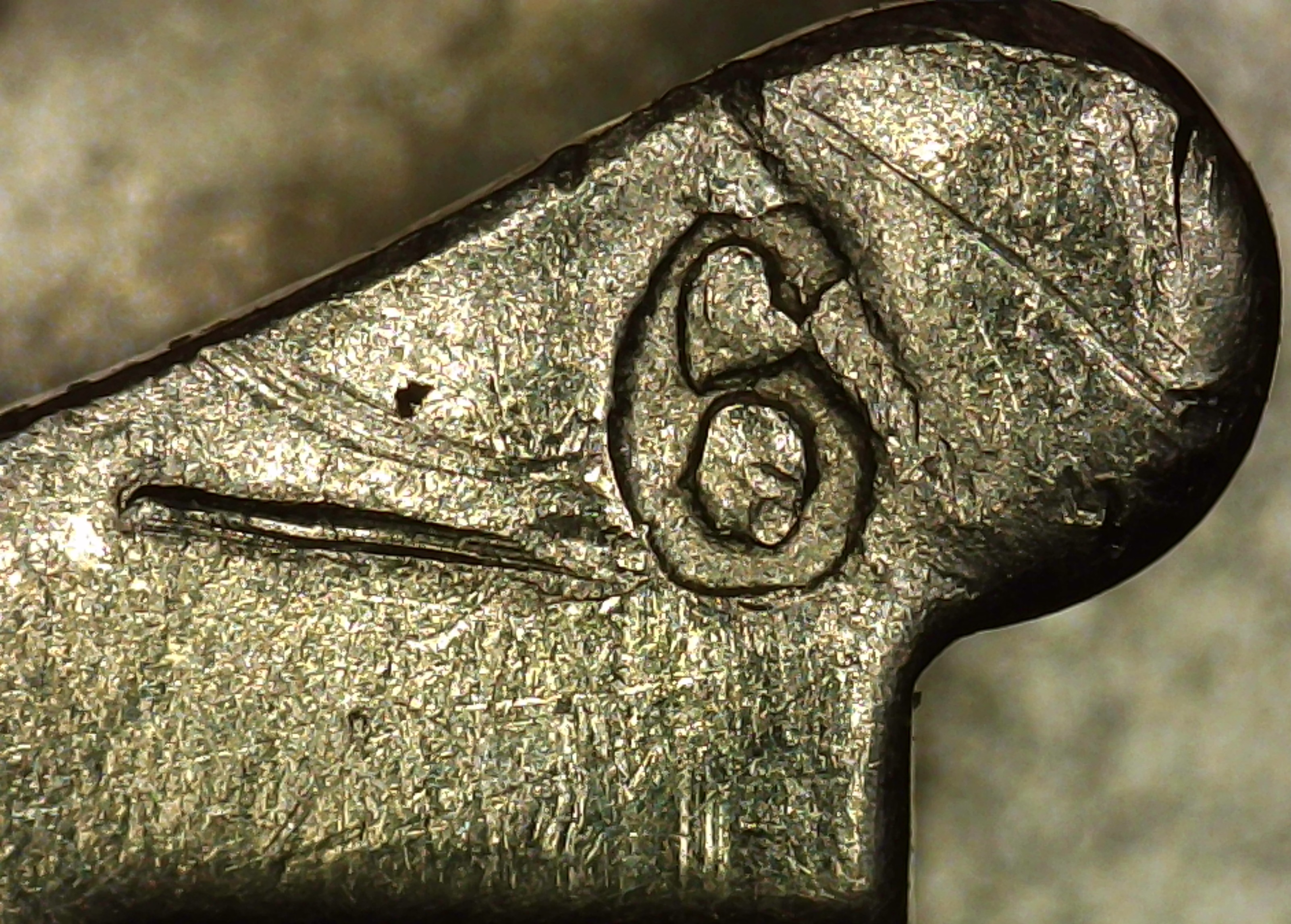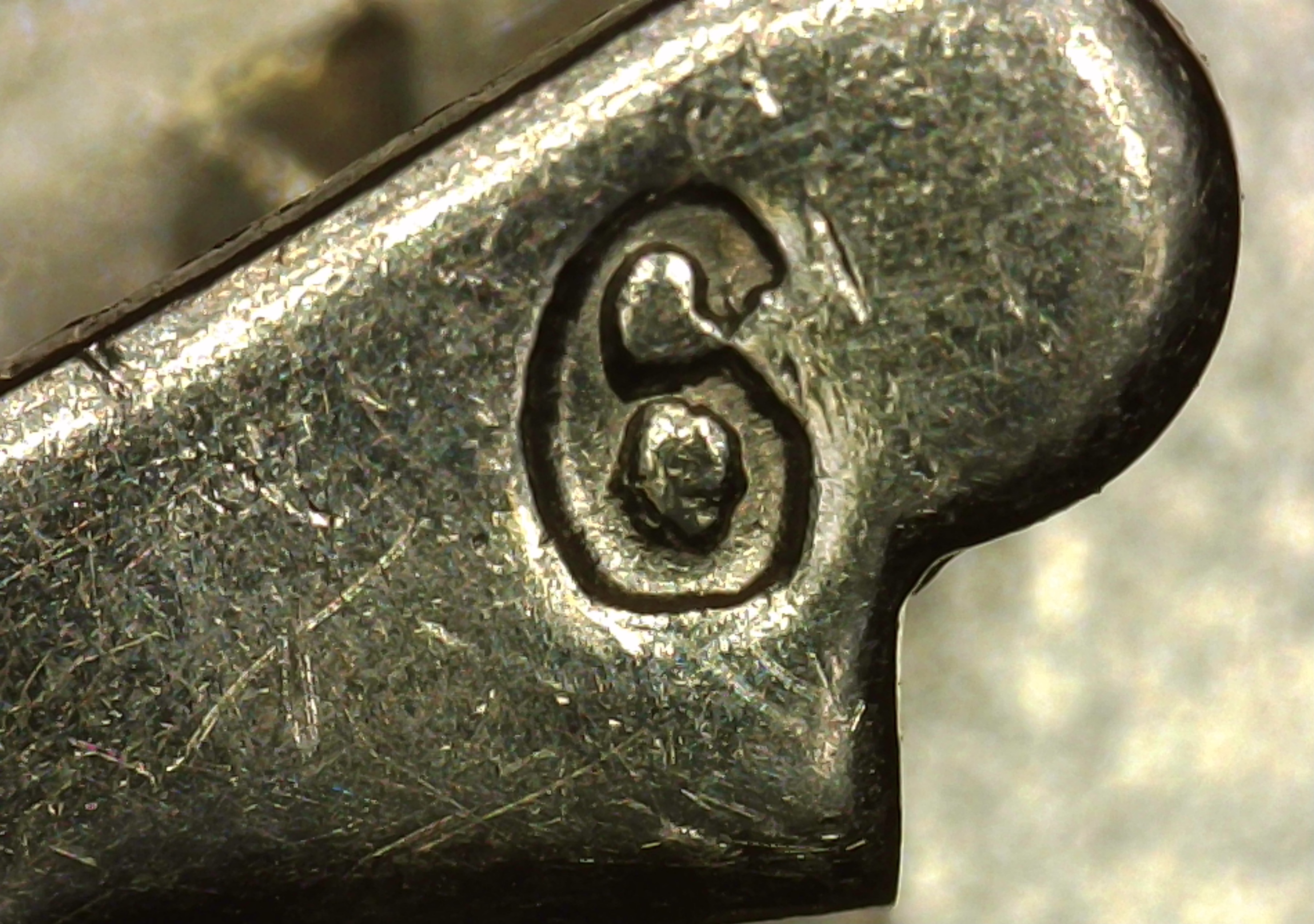 The No 6 end pieces are also in good condition. One of the endpieces has the two ‘stripes’ on the rear of the top blade and the other is plain. However they are both genuine No 6 as can be seen from the macro pics of the much discussed unique design of the stamp.