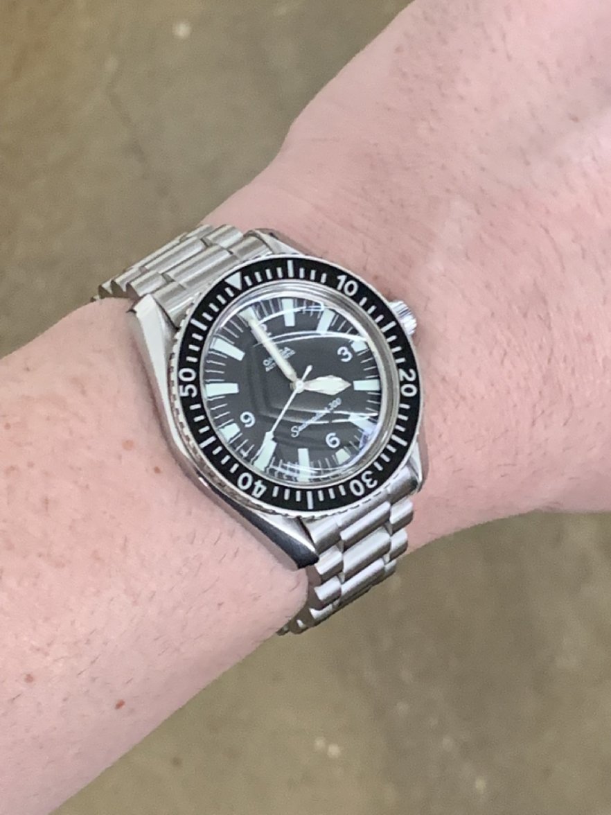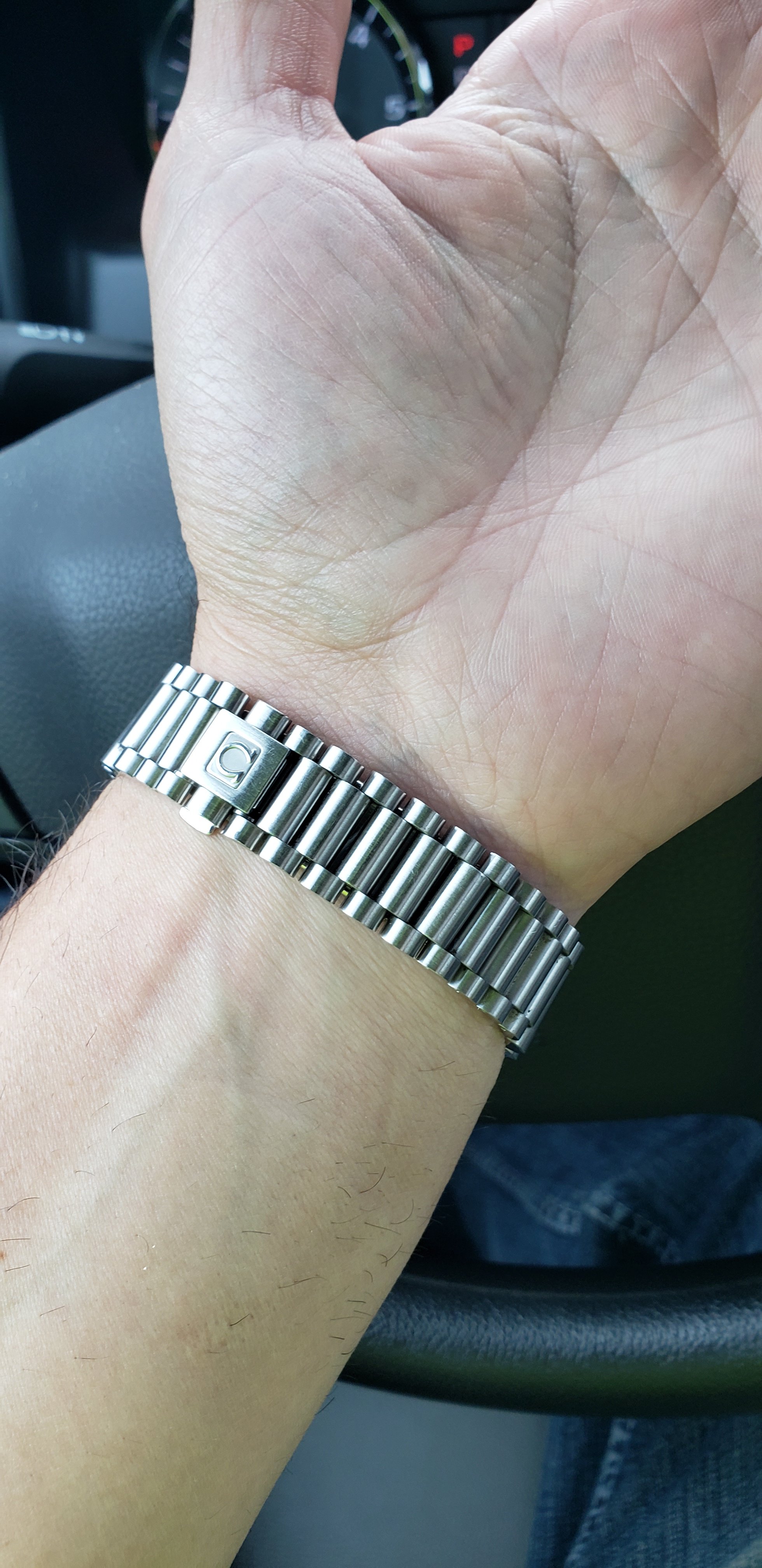 I installed a Forstner 1450 on my Watchco 300. Here are the results on a 7 inch wrist. For folks considering this bracelet, I selected the pre-2021 Forstner Speedmaster solid end links.