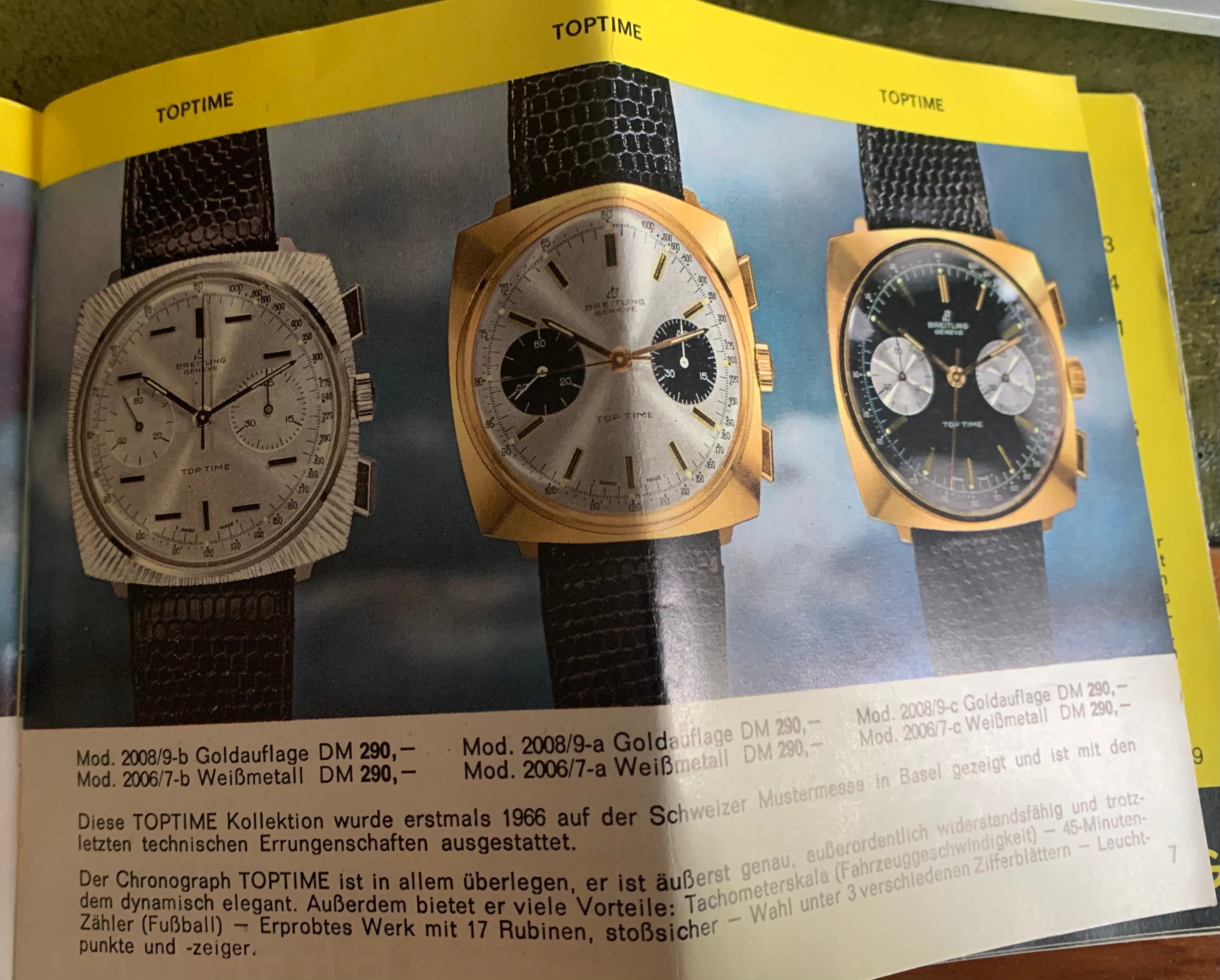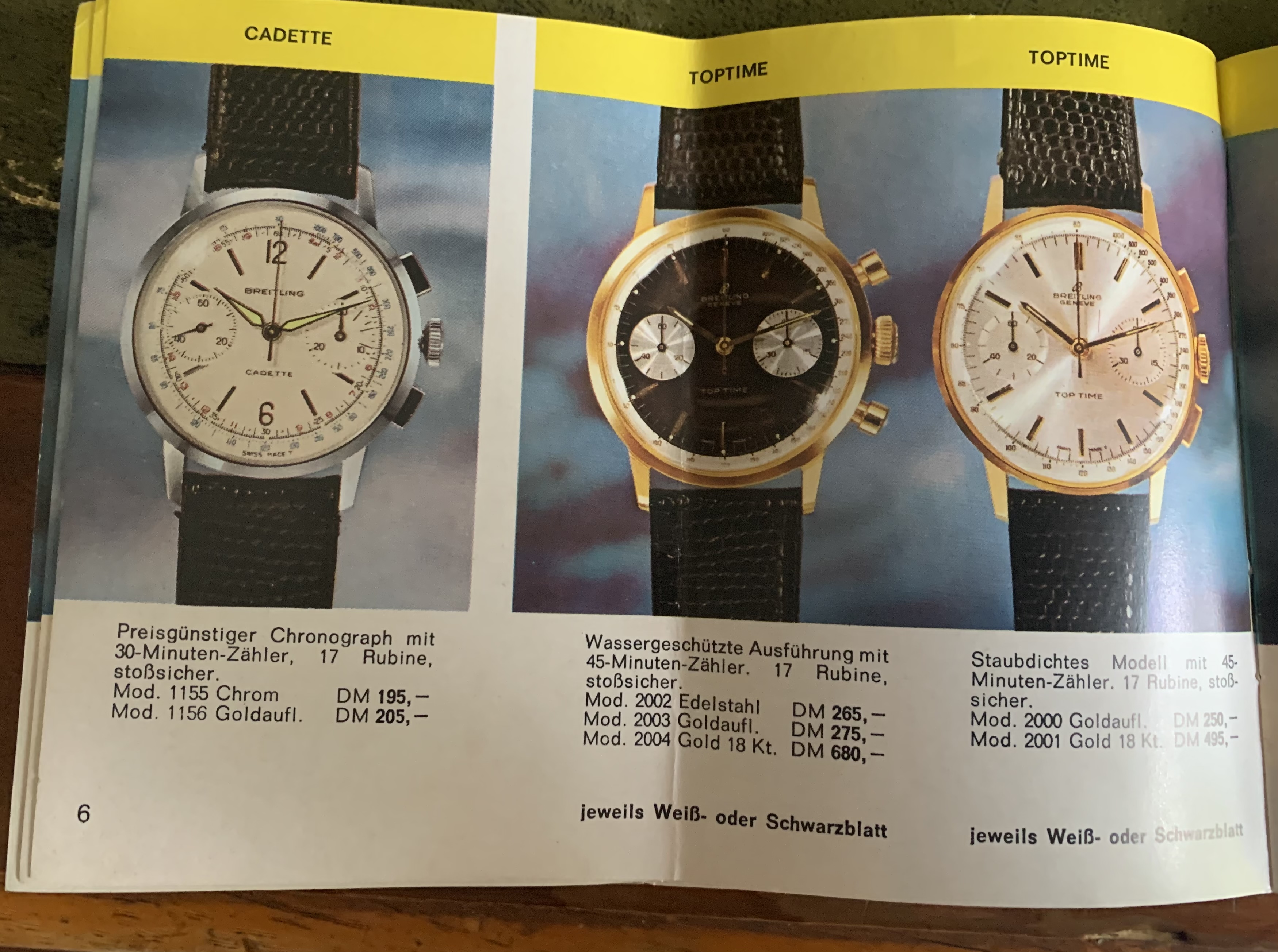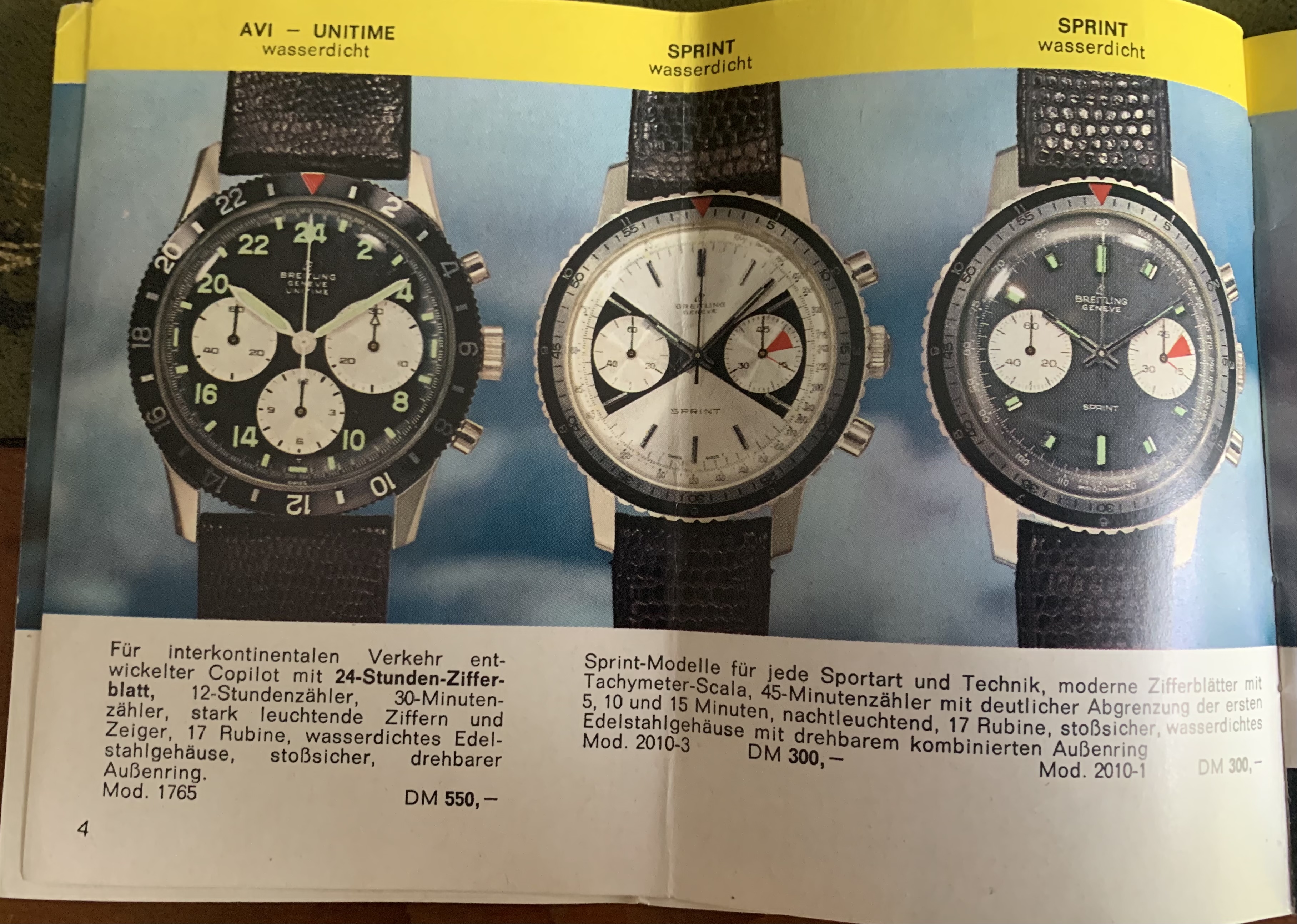 And for those who appreciate these things, here鈥檚 a copy of the brochure which was with the above watch, from 1968 showing the available chrono range and prices from Breitling鈥檚 glory days: