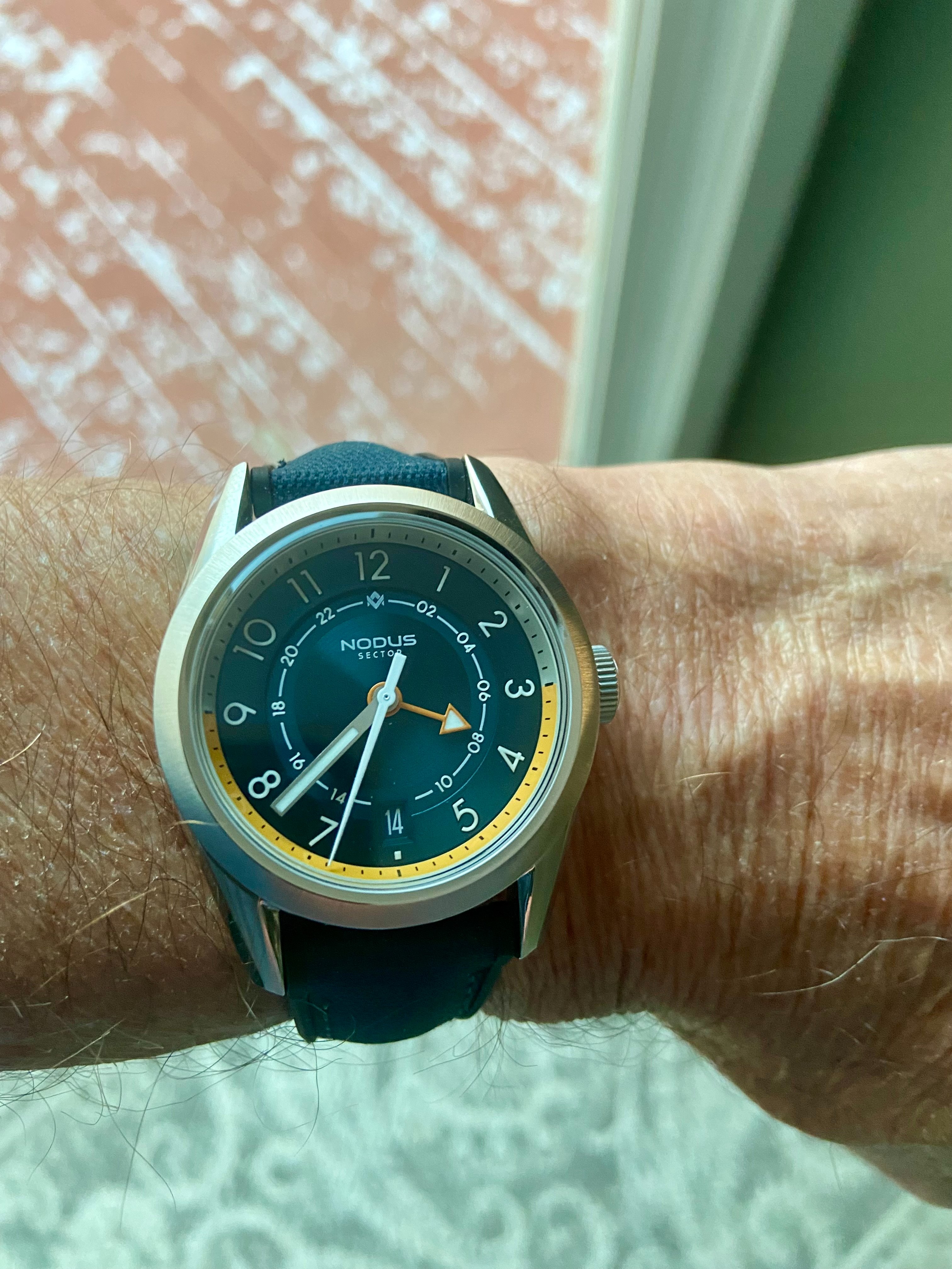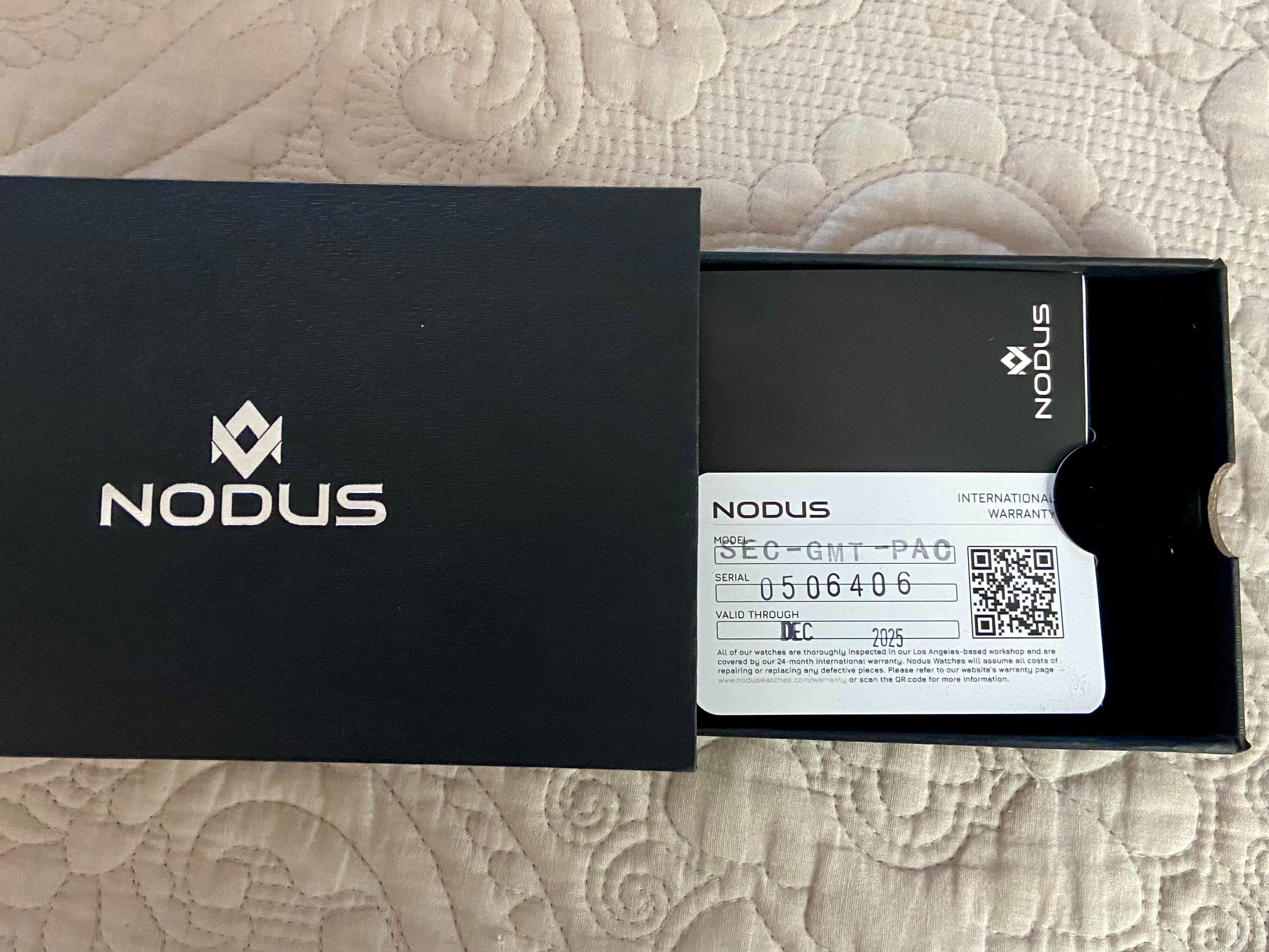 ··Hears dead people, not watch rotors.For sale is my Nodus Sector GMT-Pacific. I purchased this new a little over a year ago and it's under manufacturer warranty until December, 2025. The case is 38mm, thickness is 12.25mm, lug to lug is 47mm and it's on a rubber strap. The movement is a Seiko TMI NH34. As can be seen in the photos, the watch is in excellent condition. I like having a GMT in my small collection, and when I recently purchased a JLC Master Hometime, the Nodus became redundant. I can take Venmo or Paypal F&F, and I will ship the watch via USPS. Thanks, Mike