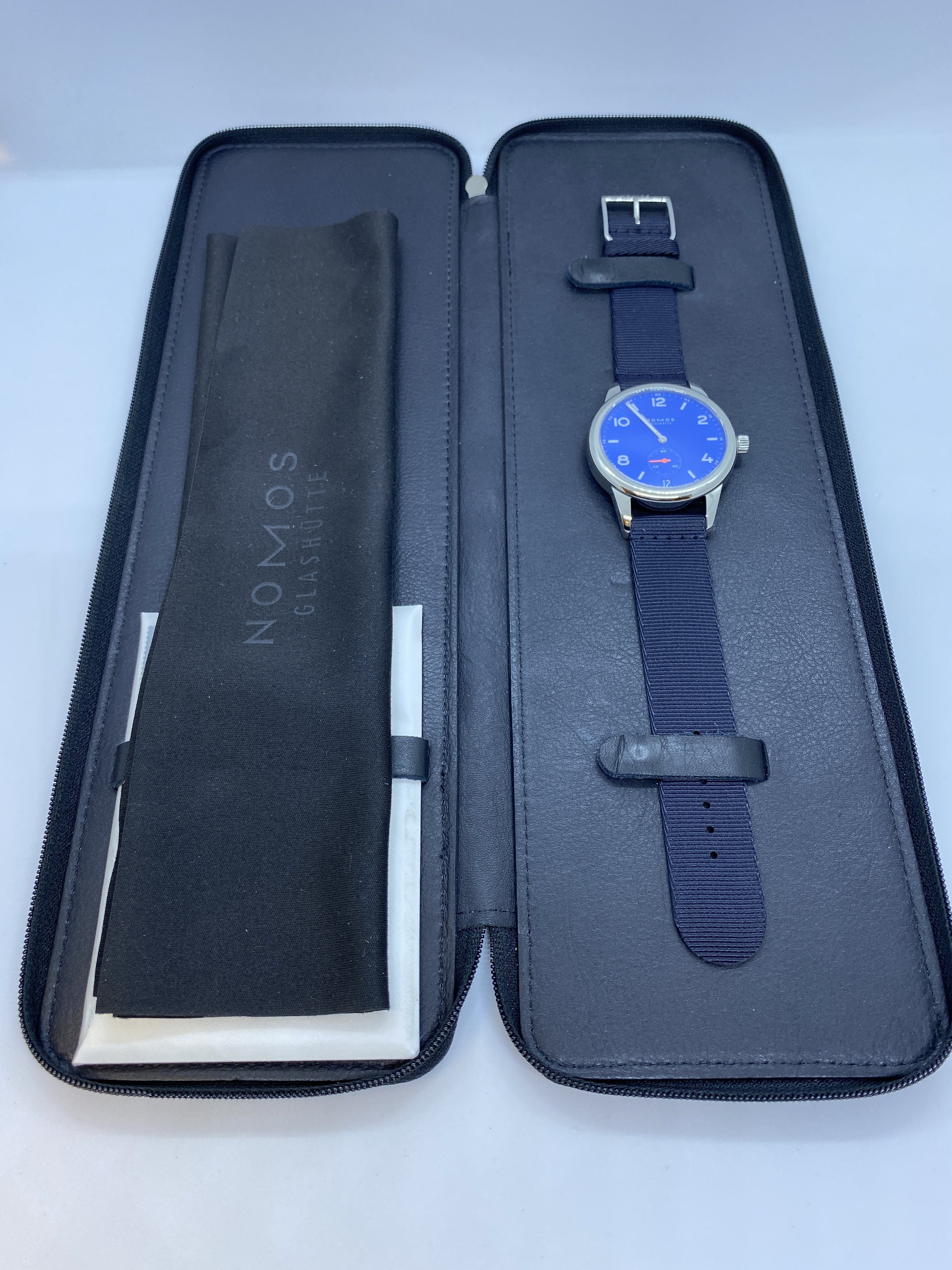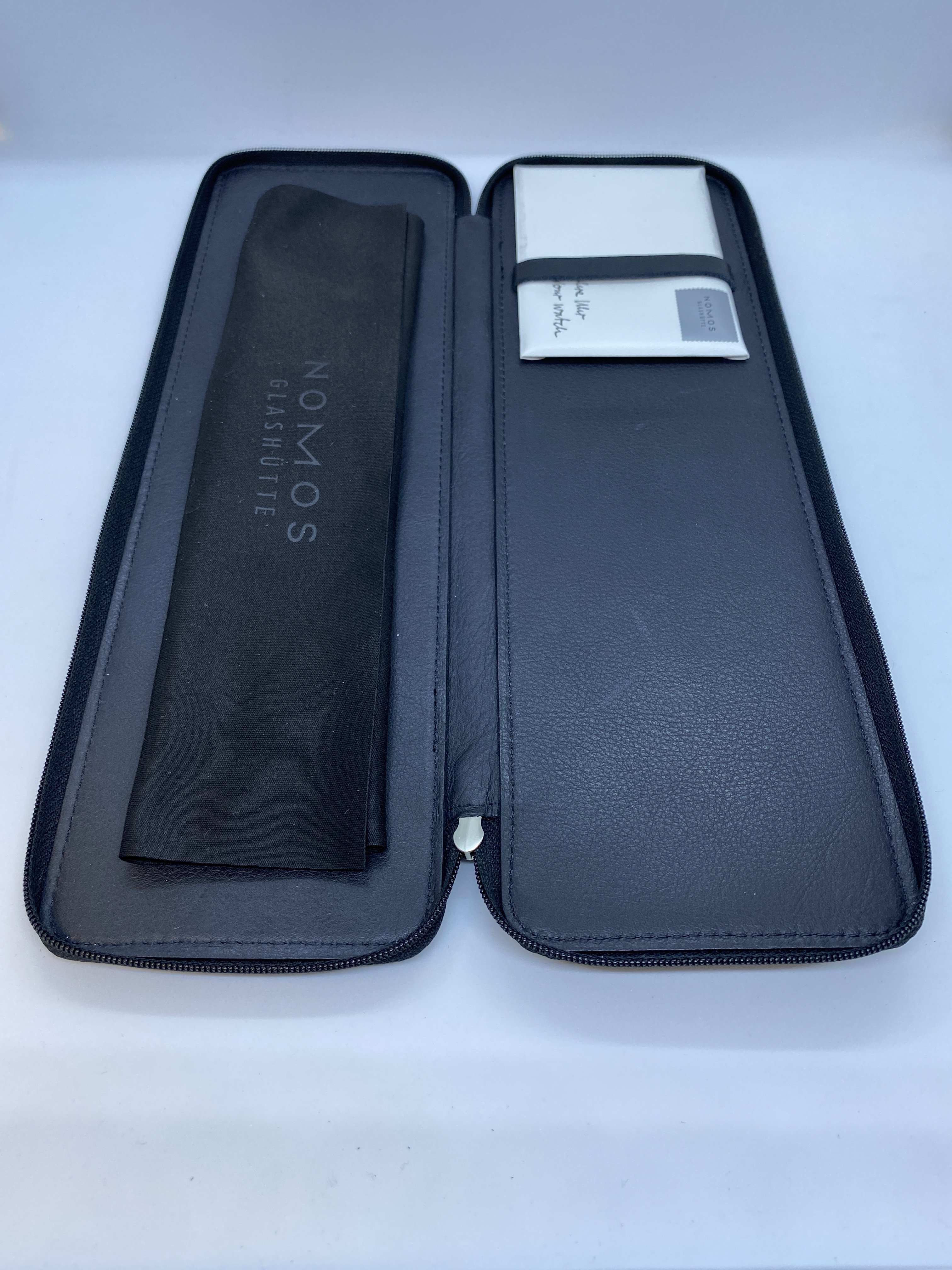 - Nomos black leather travel case
