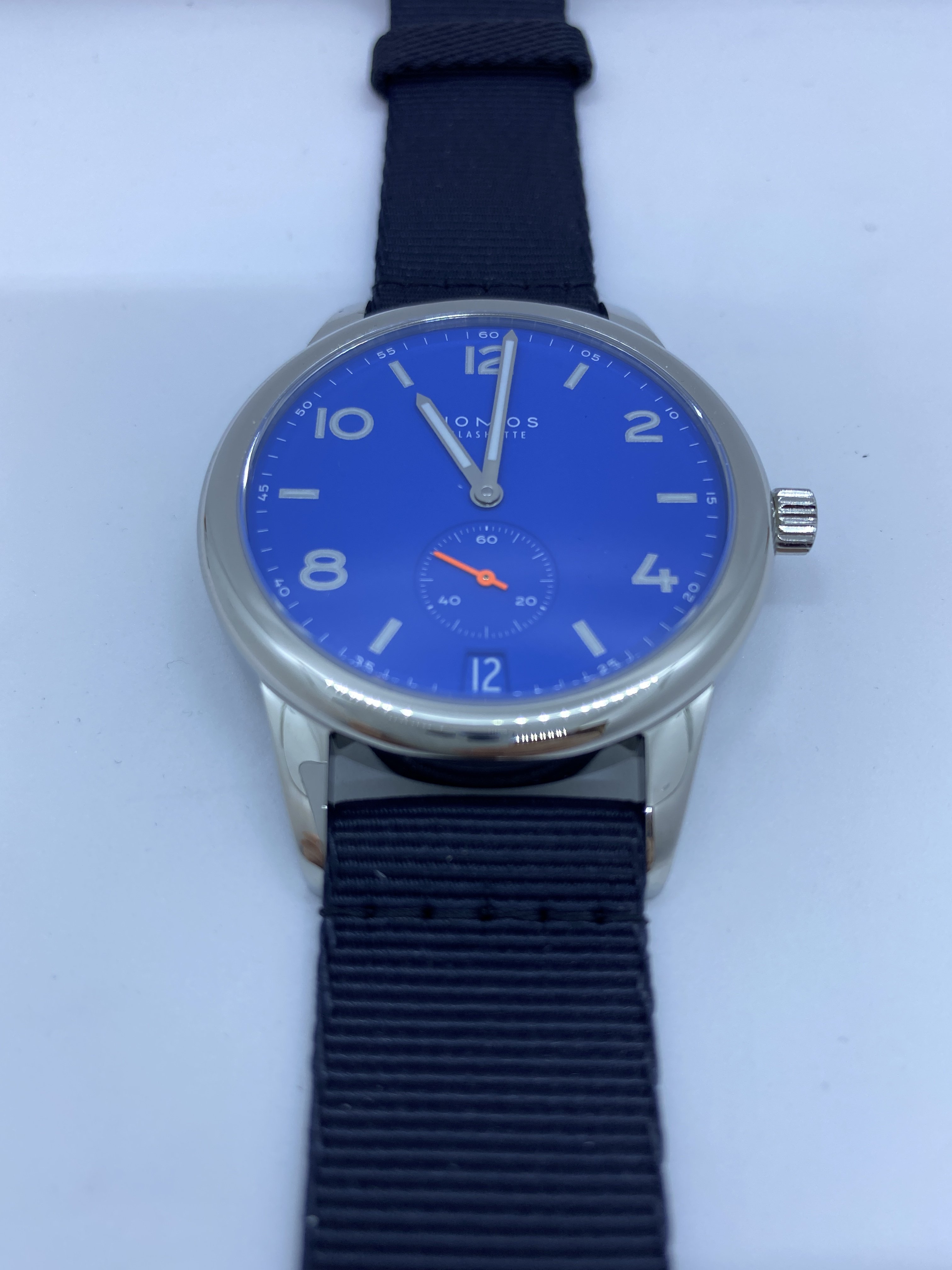 Below for sale is a new Club Aqua Automat Datum Signal Blue 41.5 mm (777) with box and papers for sale. The serial numbers are intact just not shown in photos. The warranty card is October 2019 dated.