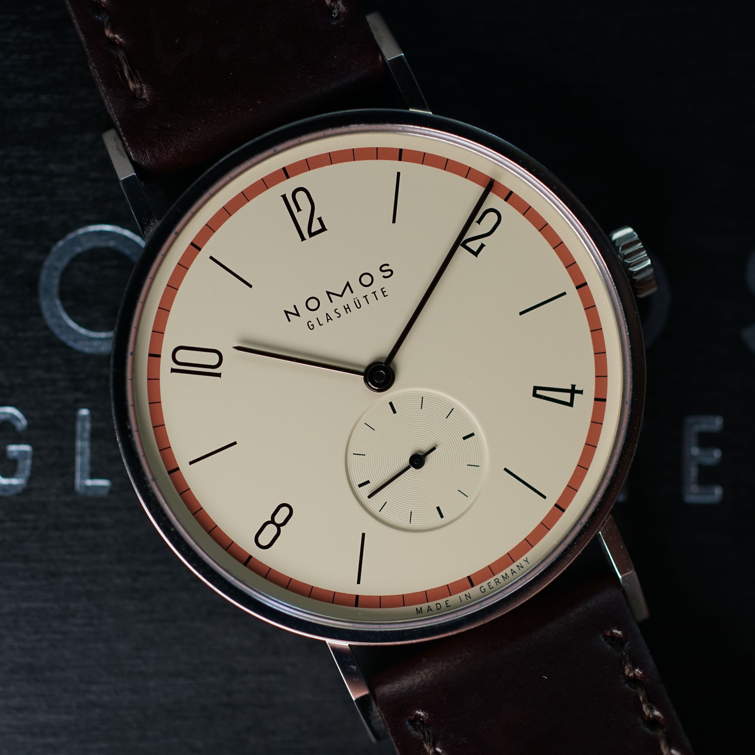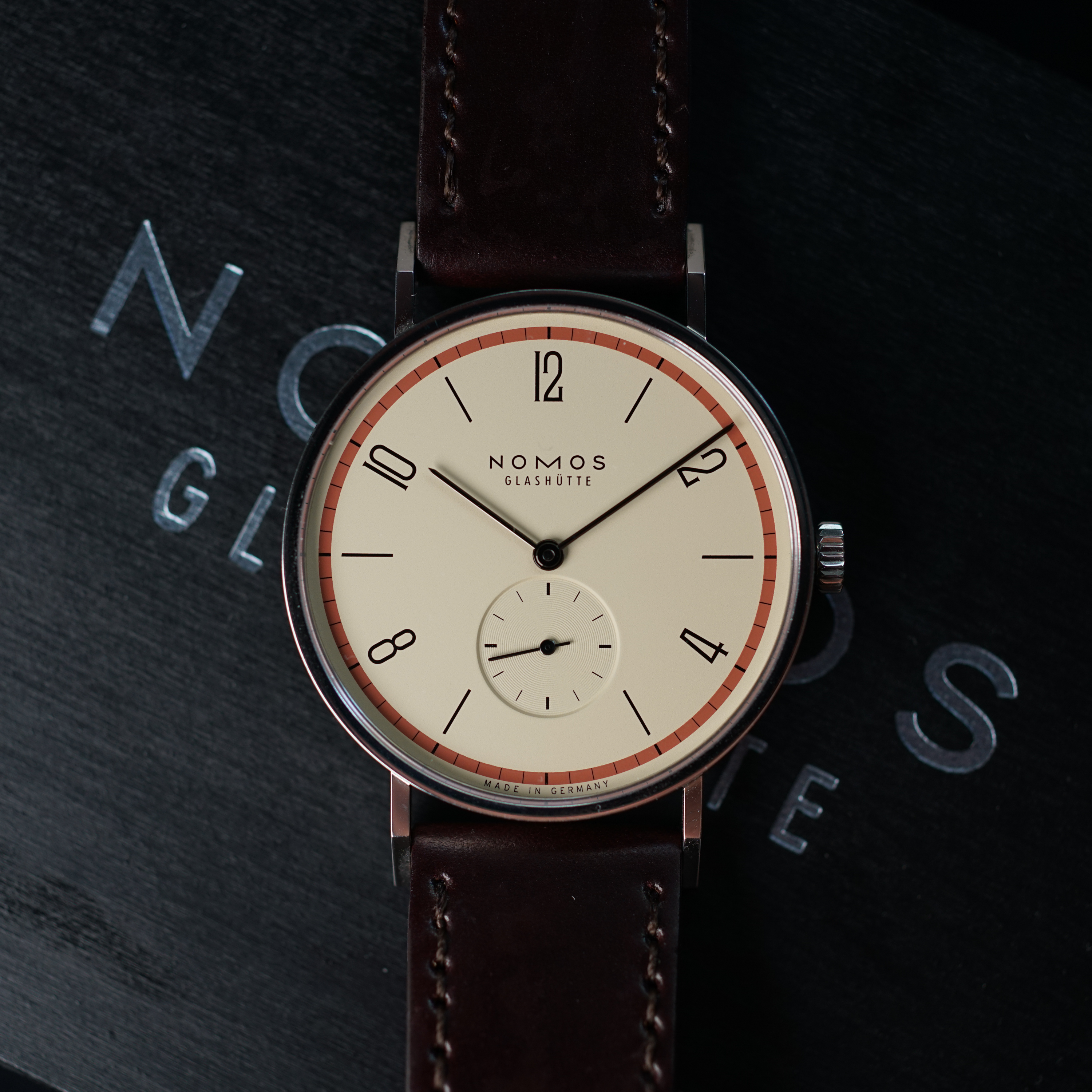 Watch has been worn sparingly in rotation. Number 86/100. Manually wound in house alpha caliber. Sapphire crystal and limited edition case back. Fitted with a regular length brown cordovan strap from Nomos with Nomos buckle.