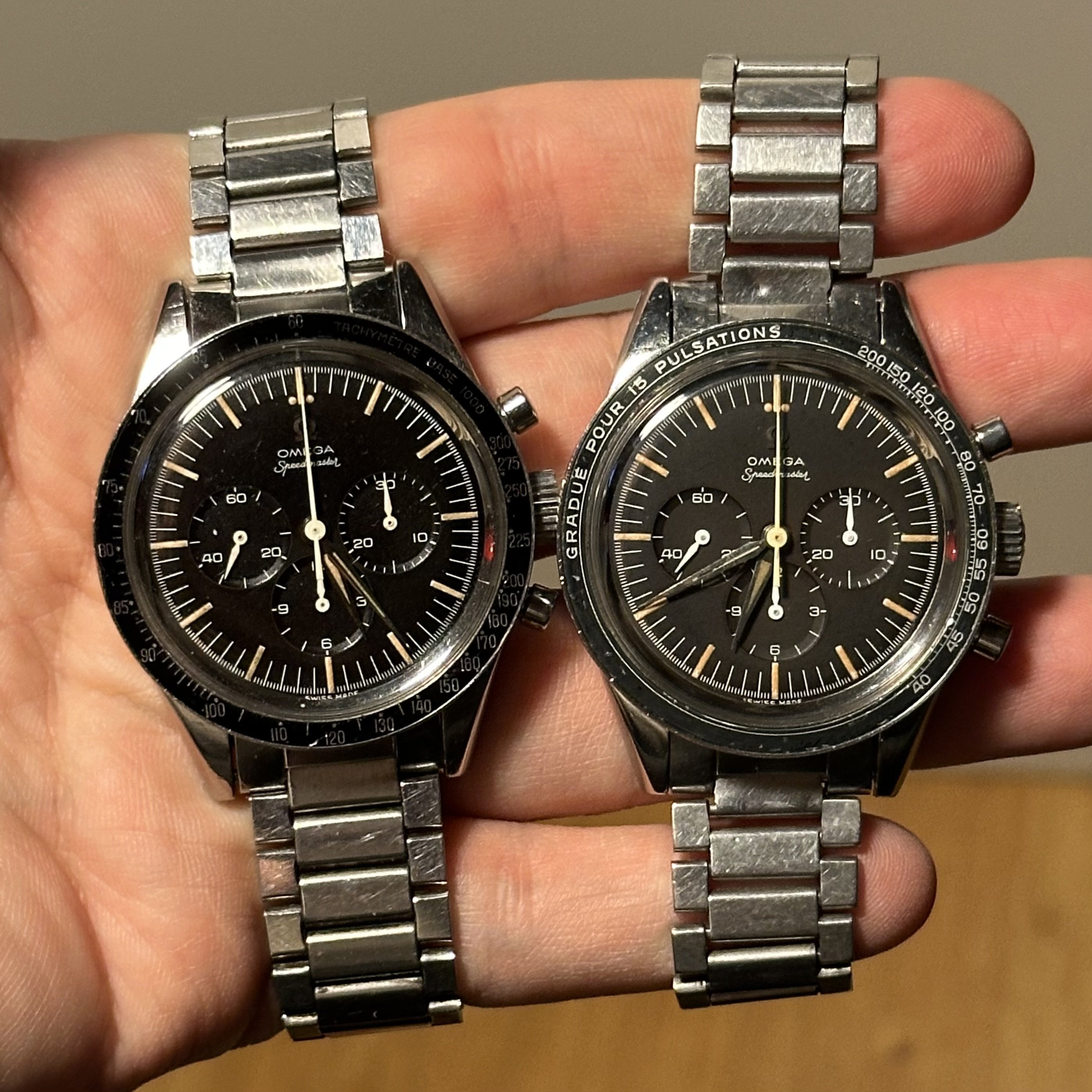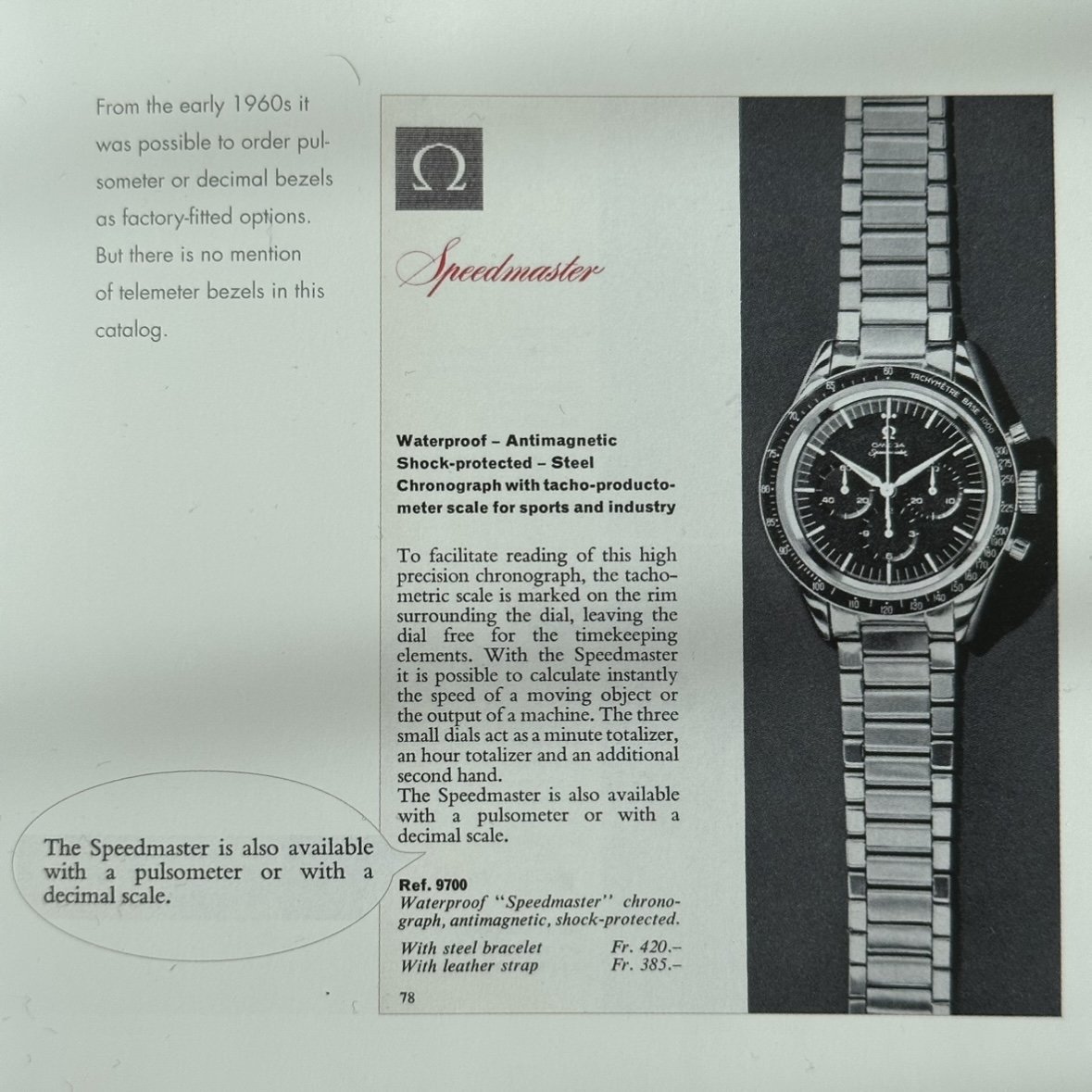 ·Greetings all. I was perusing my copy of Moonwatch Only which my wife gave me for Christmas and noted that it was possible to get a Speedmaster with an alternative bezel as a factory fitted option from as early as 1960. The ones mentioned in the book are the pulsometer, telemeter and decimal bezels. These bezels seem pretty rare as I've yet to see one in the wild. So, I was wondering if anyone on this forum has a Speedmaster with one of these alternative bezels. Thanks in advance for your responses. Gratuitous watch pic now...