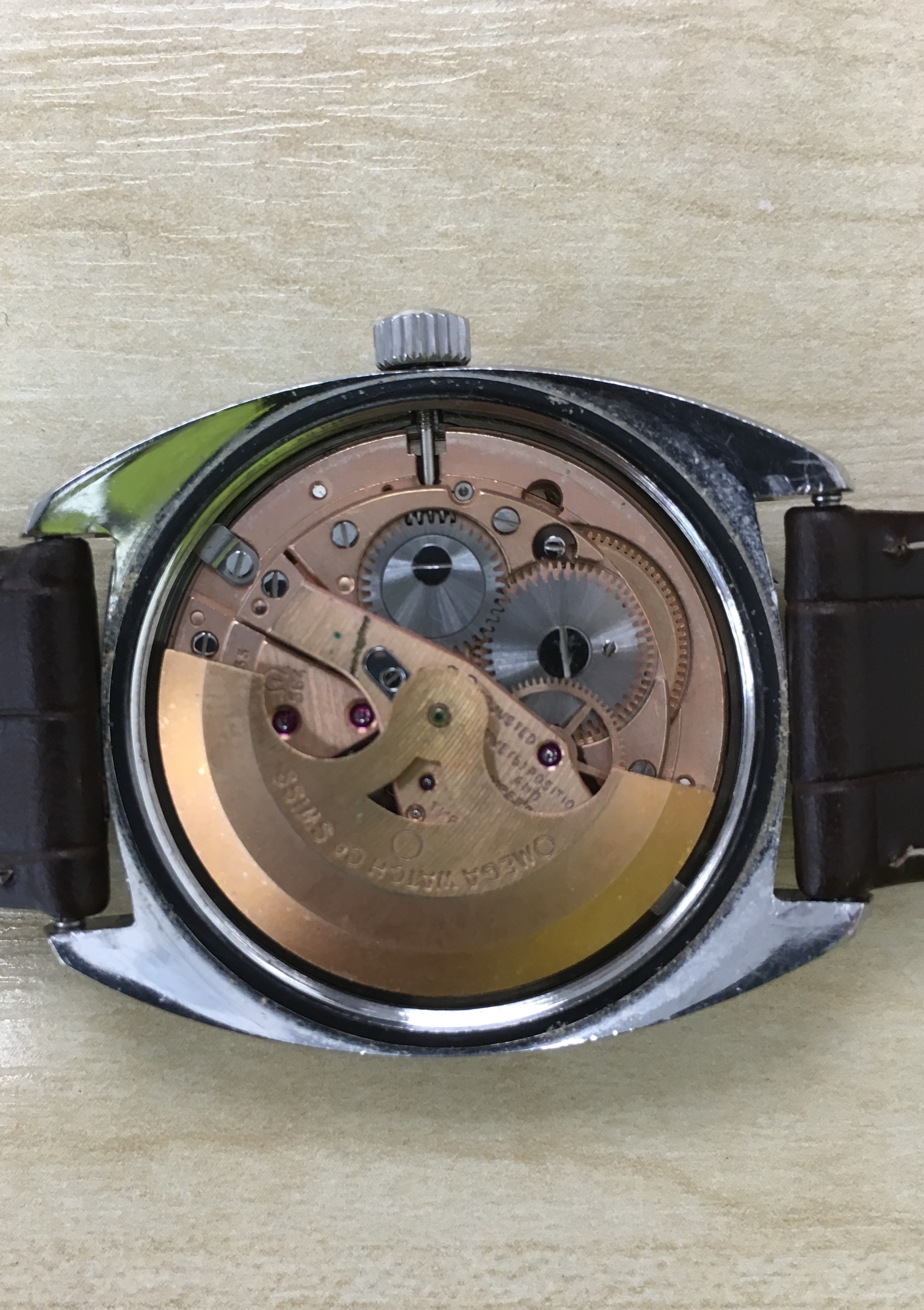 Then I saw this and I liked it. The listing was, I thought, honest, but there were no images of the inside. I decided to take a risk on the basis that if the watch was wrong the seller would not be difficult if I wanted to send it back. Now I've had it opened up and I think I've got a decent example. I know it's not a super-collectable watch but it will be a nice watch for daily wear. There's a small crack in the lens below the surface which is hardly noticeable. The seller pointed this out. As the lens has the Omega signature I think I shouldn't change it.