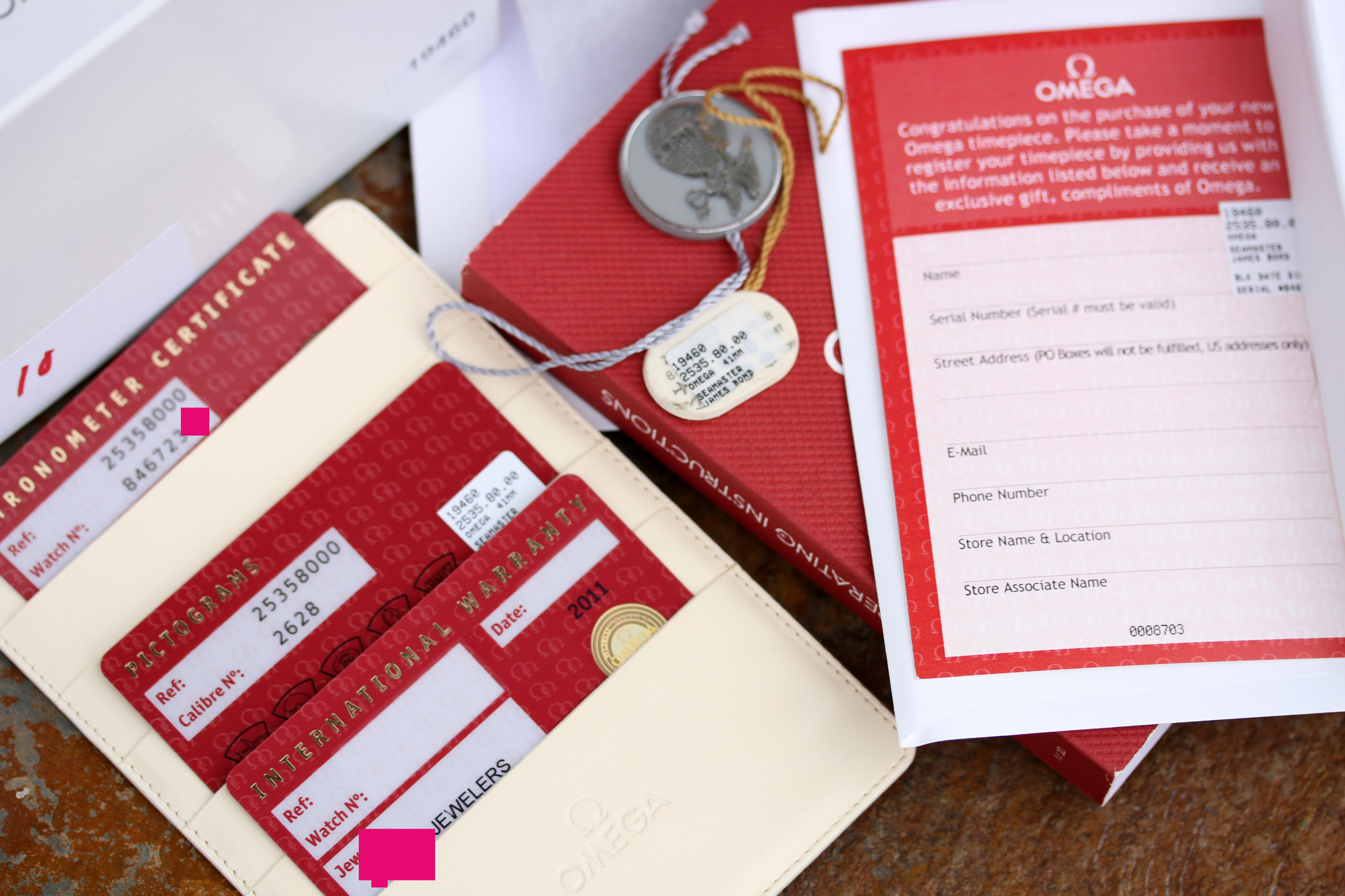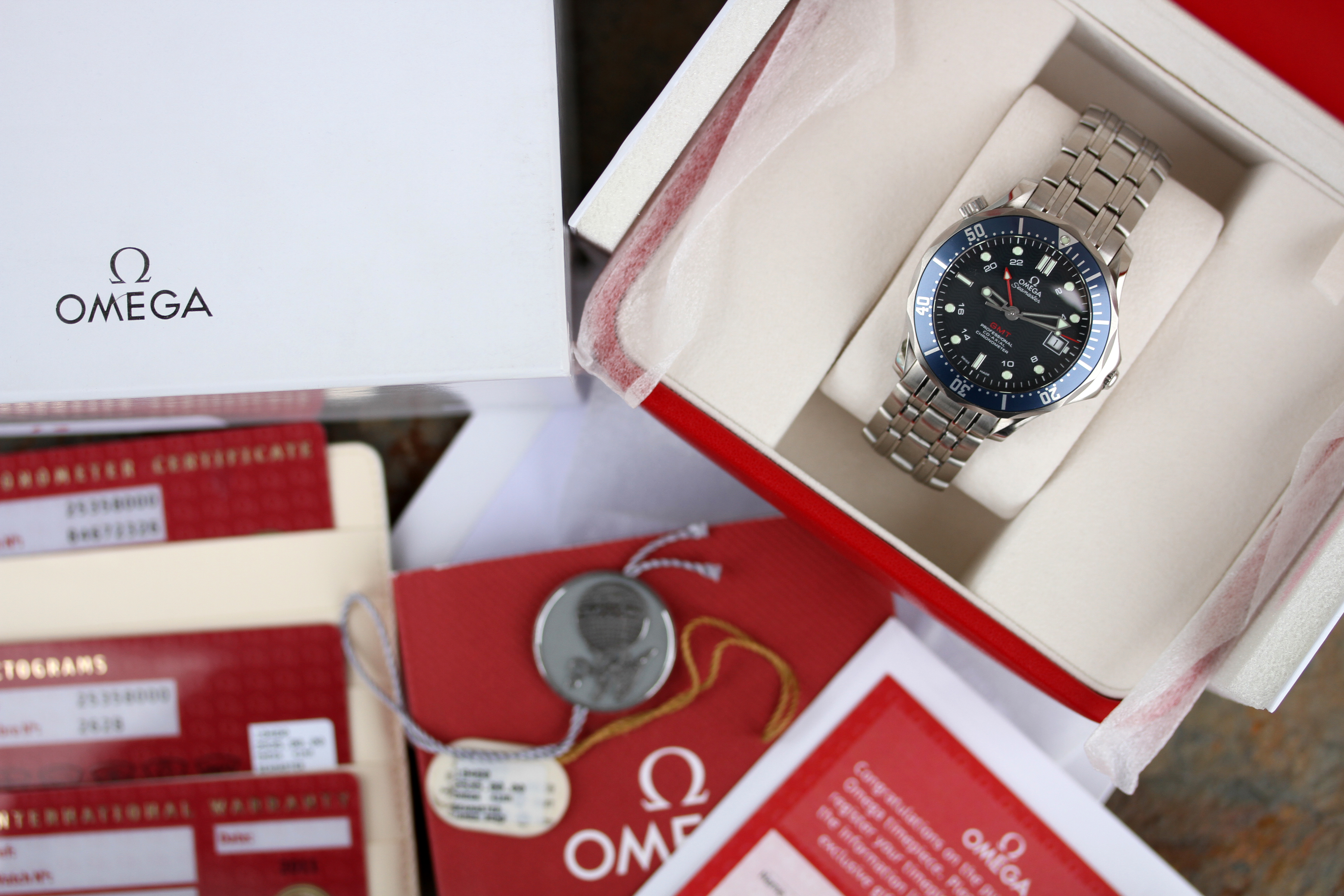Comes with Omega boxes, manual, cards, hang tags, Omega registration.