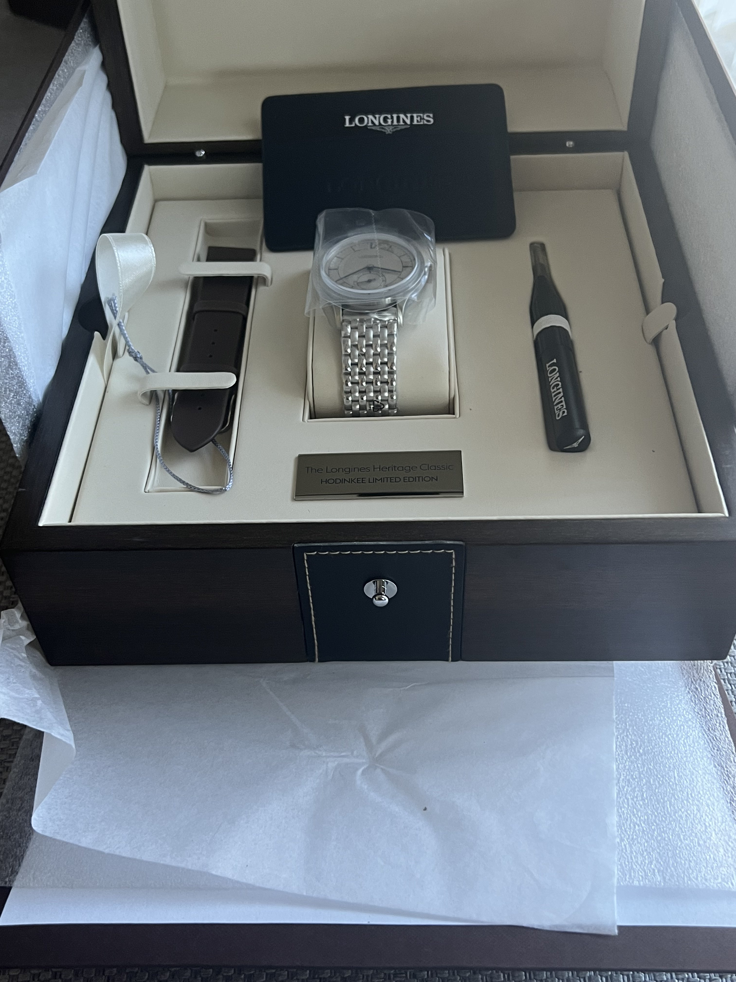 so I had the intention of keeping this watch but picked up some other watches that I have been looking for. So I have to let this one go. This is the limited edition of 500 with Longines and hodinkee. I haven’t even taken off the plastic to the watch. So the person will be getting it exactly as I bought. Brand spanking new. My asking is what I paid for it. 2675 usd. I just want to net what I paid. Buyer to cover shipping. Plenty of references available upon request. Watch is located in Fort Lauderdale Florida.