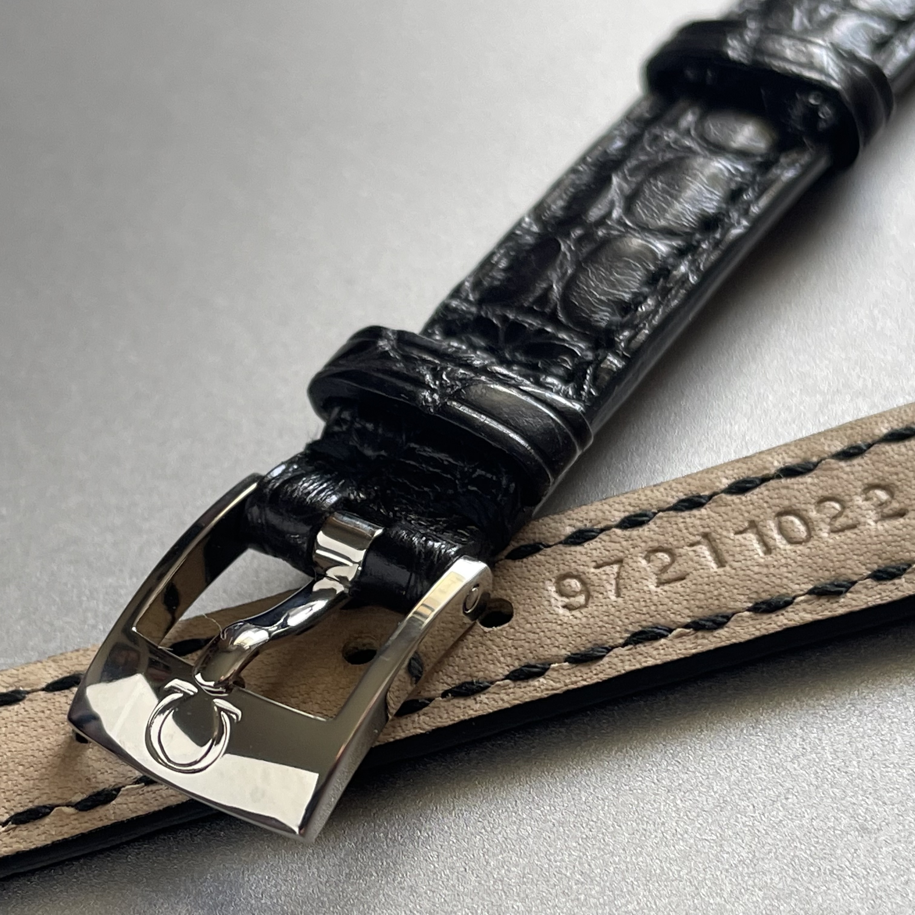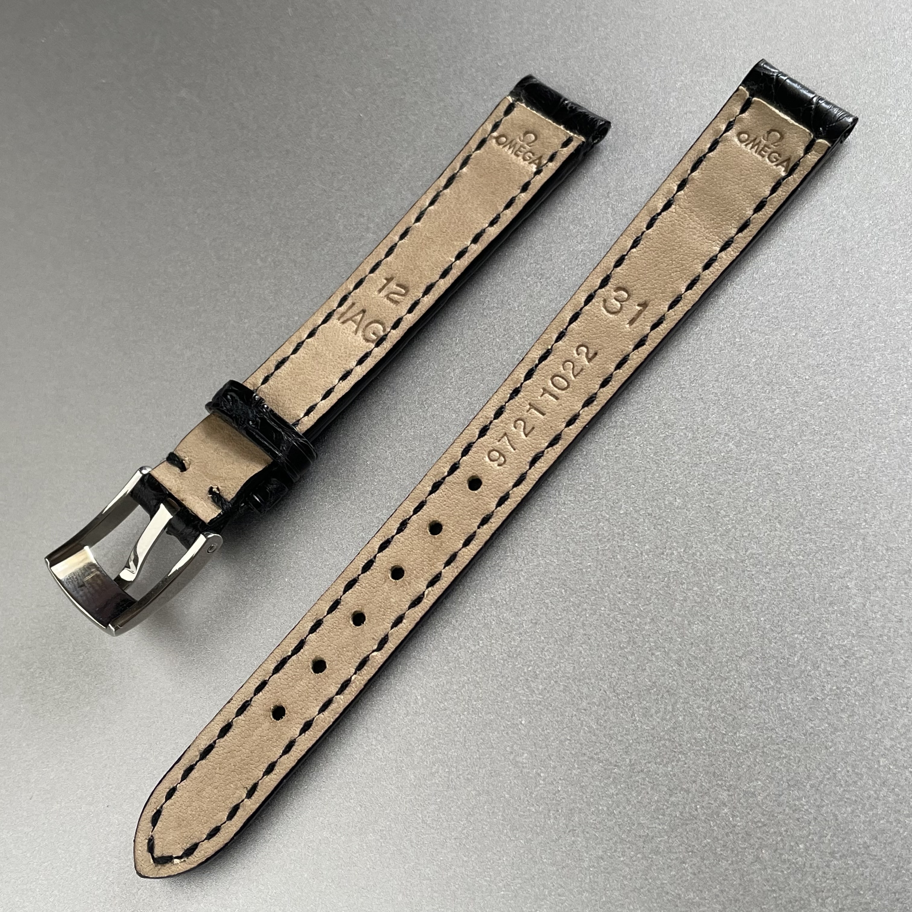 This is a genuine Omega black alligator leather strap. Includes the originally fitted 10mm genuine Omega pin buckle.