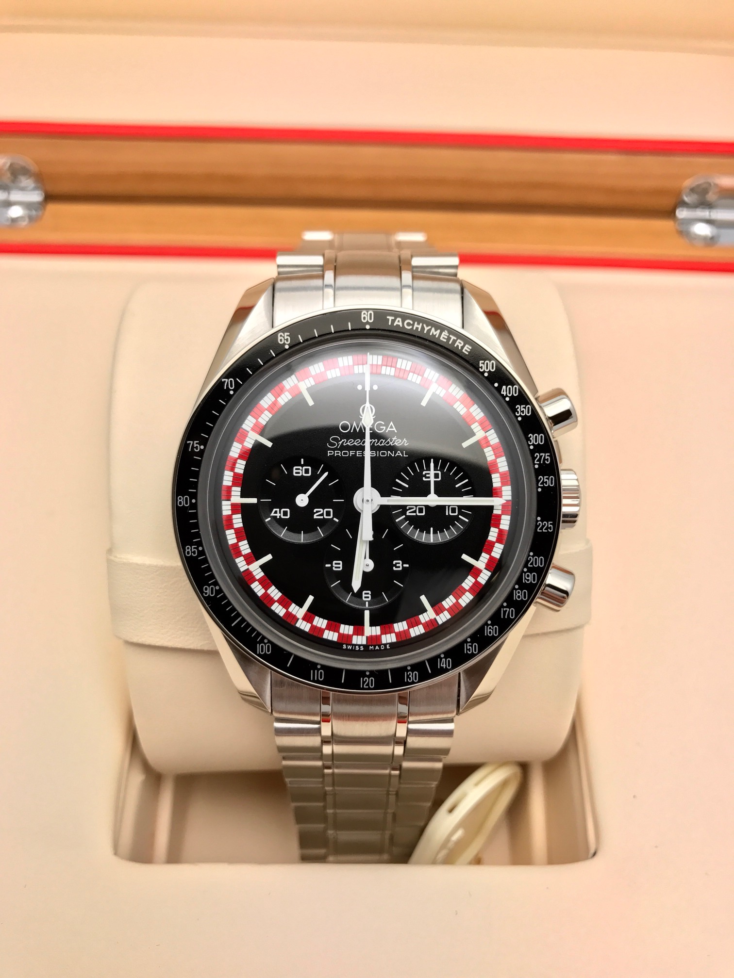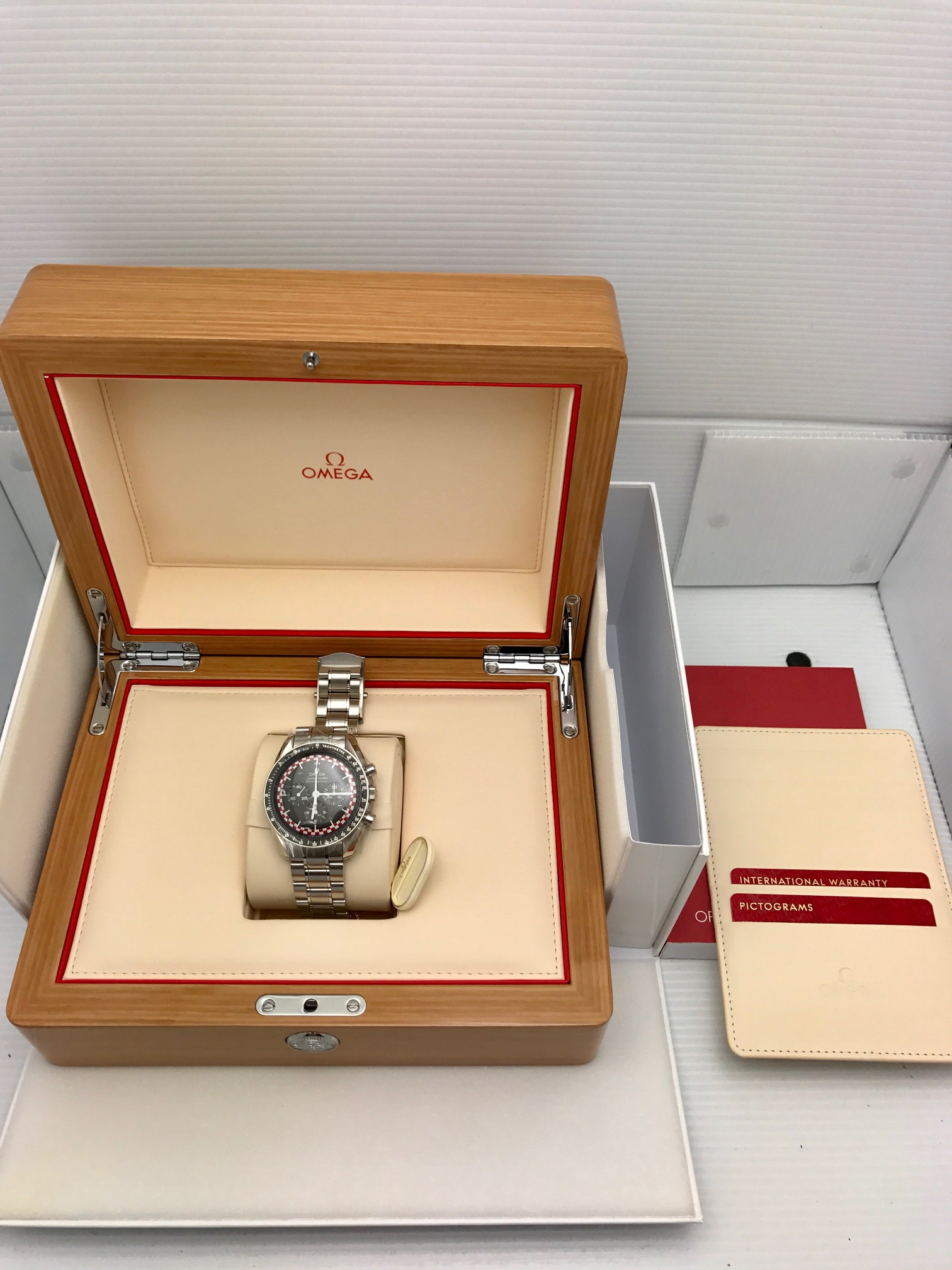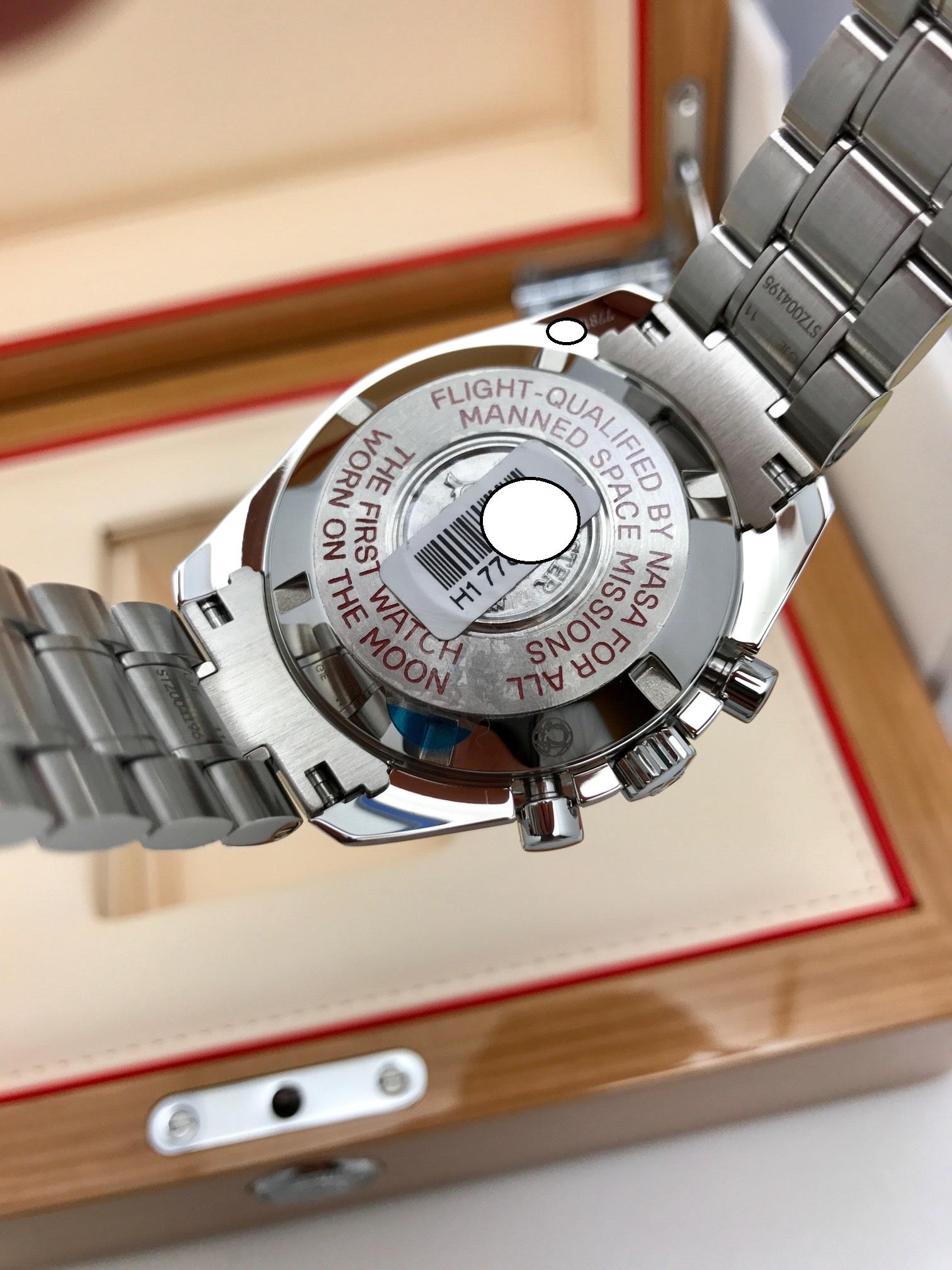 I have a New Old Stock Omega Speedmaster Professional 311.30.42.30.01.004 for sale. I will warranty this piece for 90 days from sale. Please take a look at photos for condition. Any spot on the bracelet is a light smudge (I will wipe off) but it is mint shape!