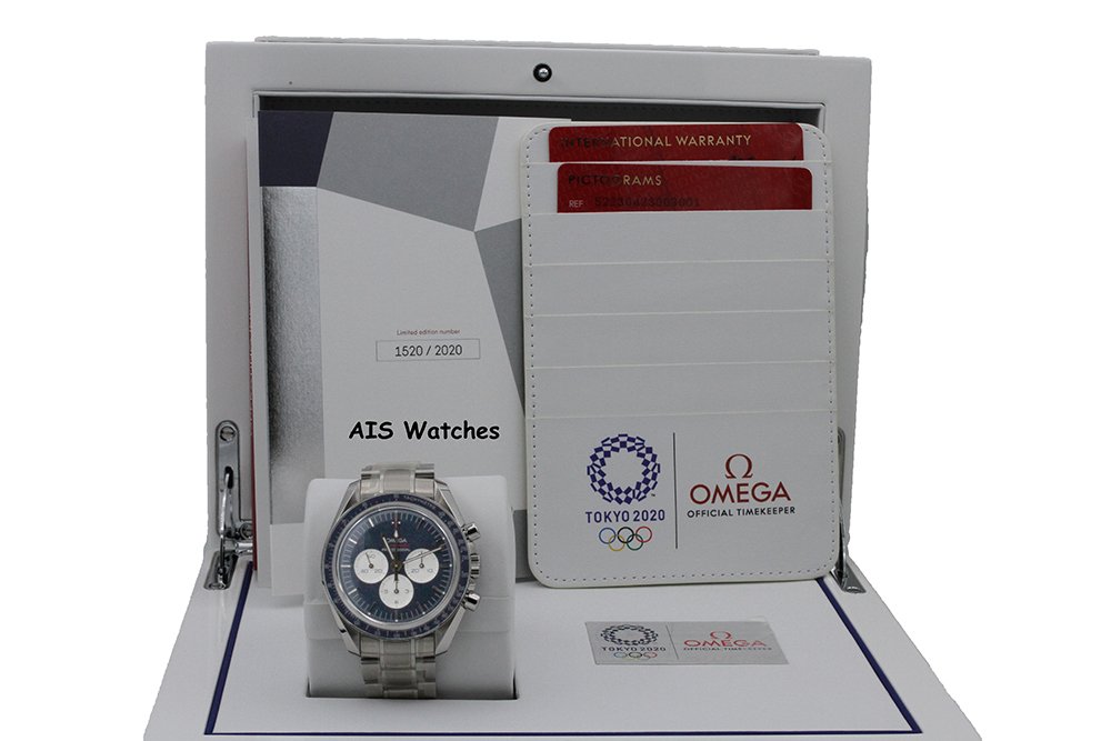 Up for sale is a NOS Omega Speedmaster Tokyo 2020 Olympics Blue Dial 522.30.42.30.03.001 Box & Papers. The timepiece is New Old Stock / Unworn / Unsized / Stickers Intact