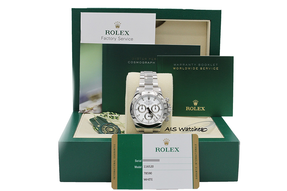 NOS Rolex Cosmograph Daytona 116520 White Dial Random Serial Box & Papers