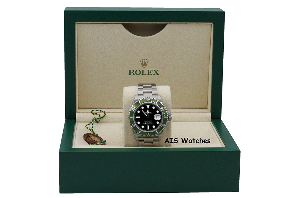 Up for sale is a relatively RARE NOS Rolex Submariner 16610LV 50th Anniversary M Serial - NO PAPERS / Engraved Rehaut. The timepiece New Old Stock / Unworn / Unsized / Stickers Intact.