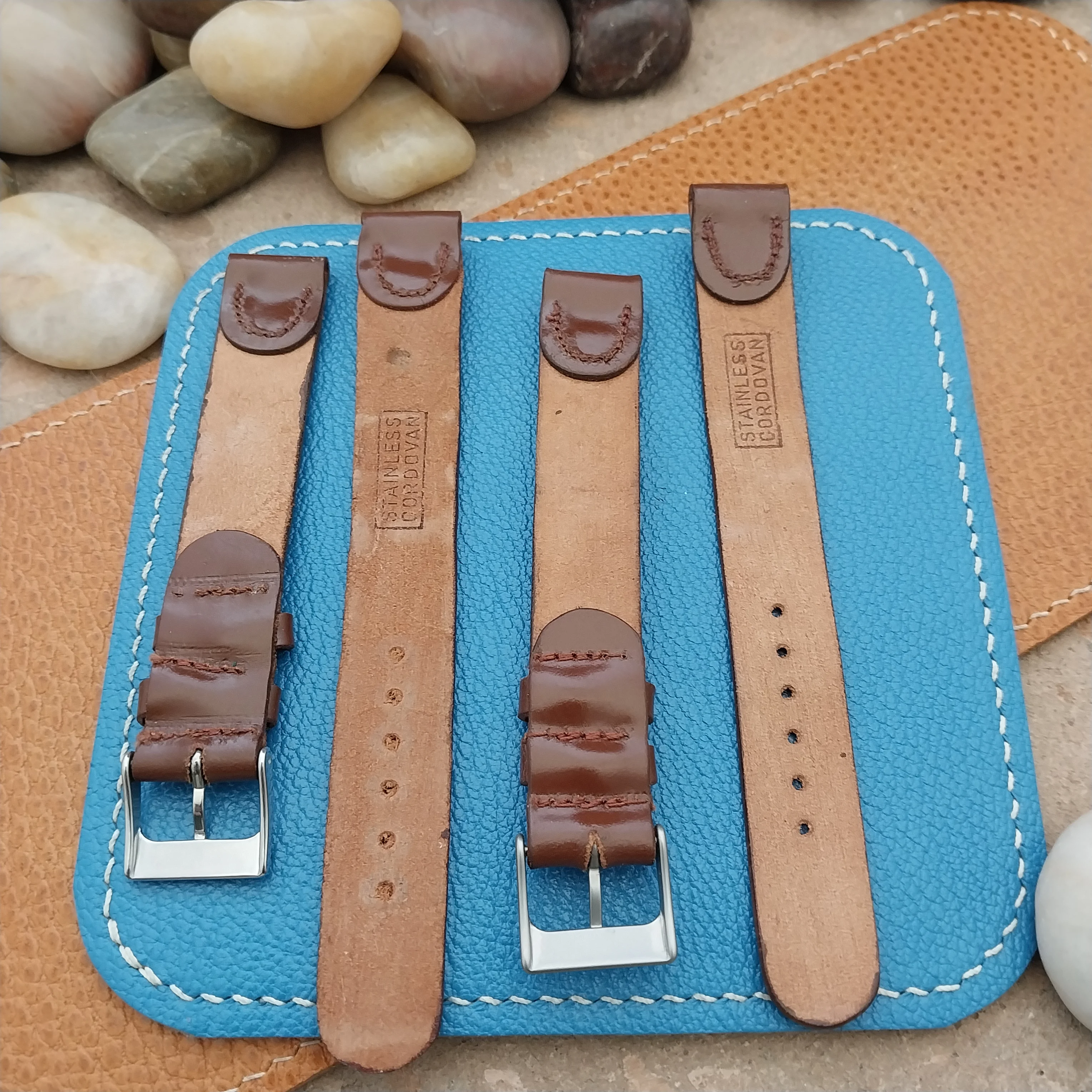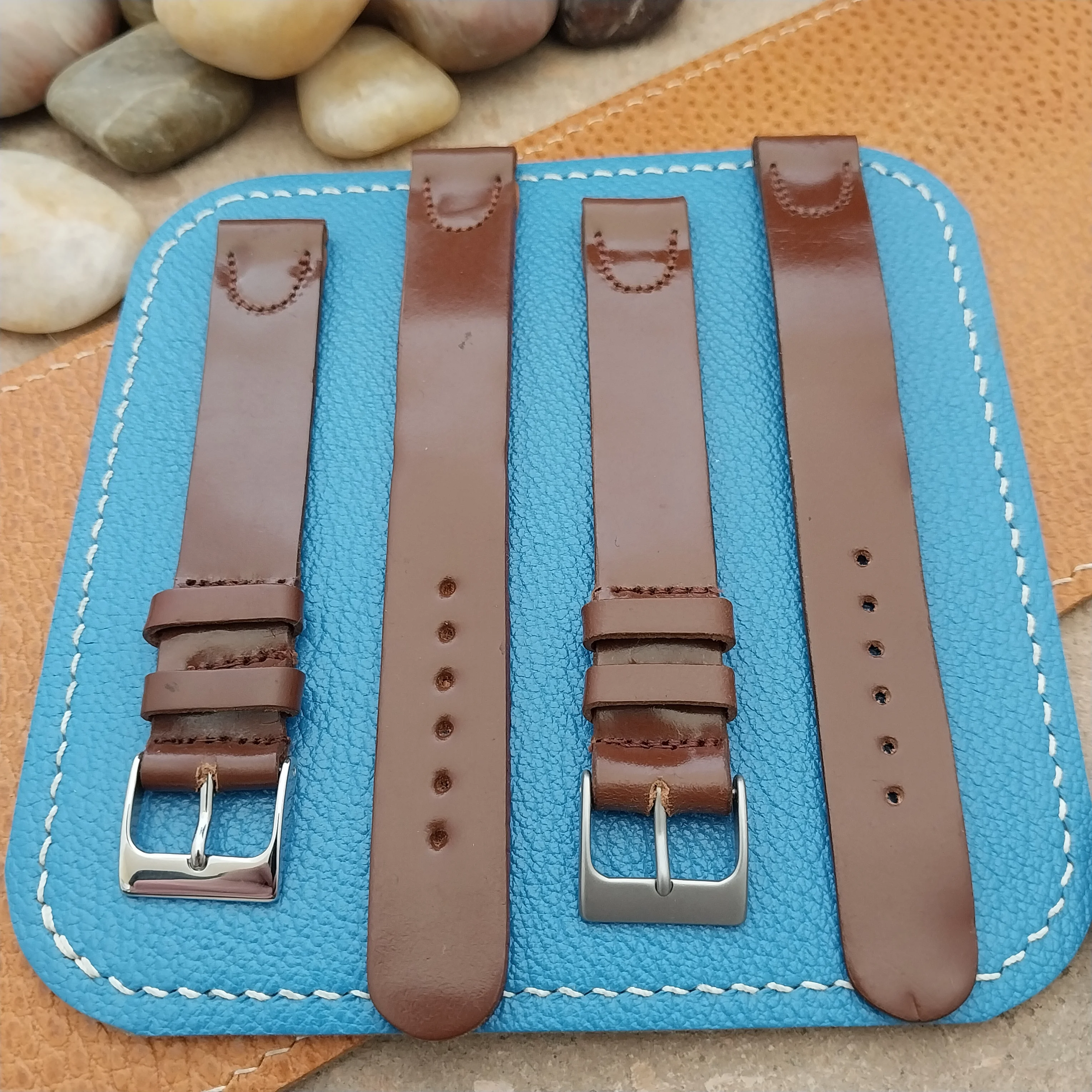 ·I have 2 NOS unused 1950s old-stock brown Shell Cordovan leather watch straps available.