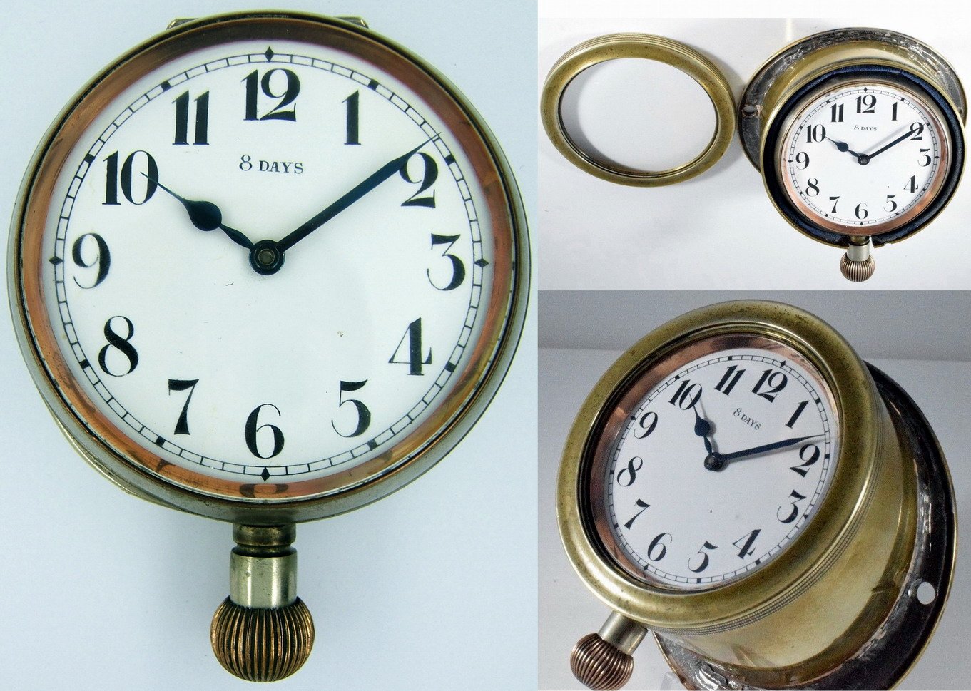Clearly there are similarities. However, of significance is that the Marconi watch (left) is inverted, has no bow and has the stem at the bottom - and the watch will probably have been mounted in a suitable stand for that purpose. This would be similar to pocket watches that were used in the early days of motoring (around 1905 - 1910) that were also inverted, with no bow but the stem at the bottom: they were mounted on a car’s dashboard and could be wound/set from below (an image of such a watch is below). Of course this watch has nothing to do with Marconi - it is shown only to illustrate a watch from this period which was intended (and mounted) for a purpose.