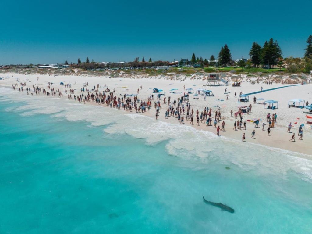 Trevor the tiger shark joins in the festivities, he has become a regular at this beach.