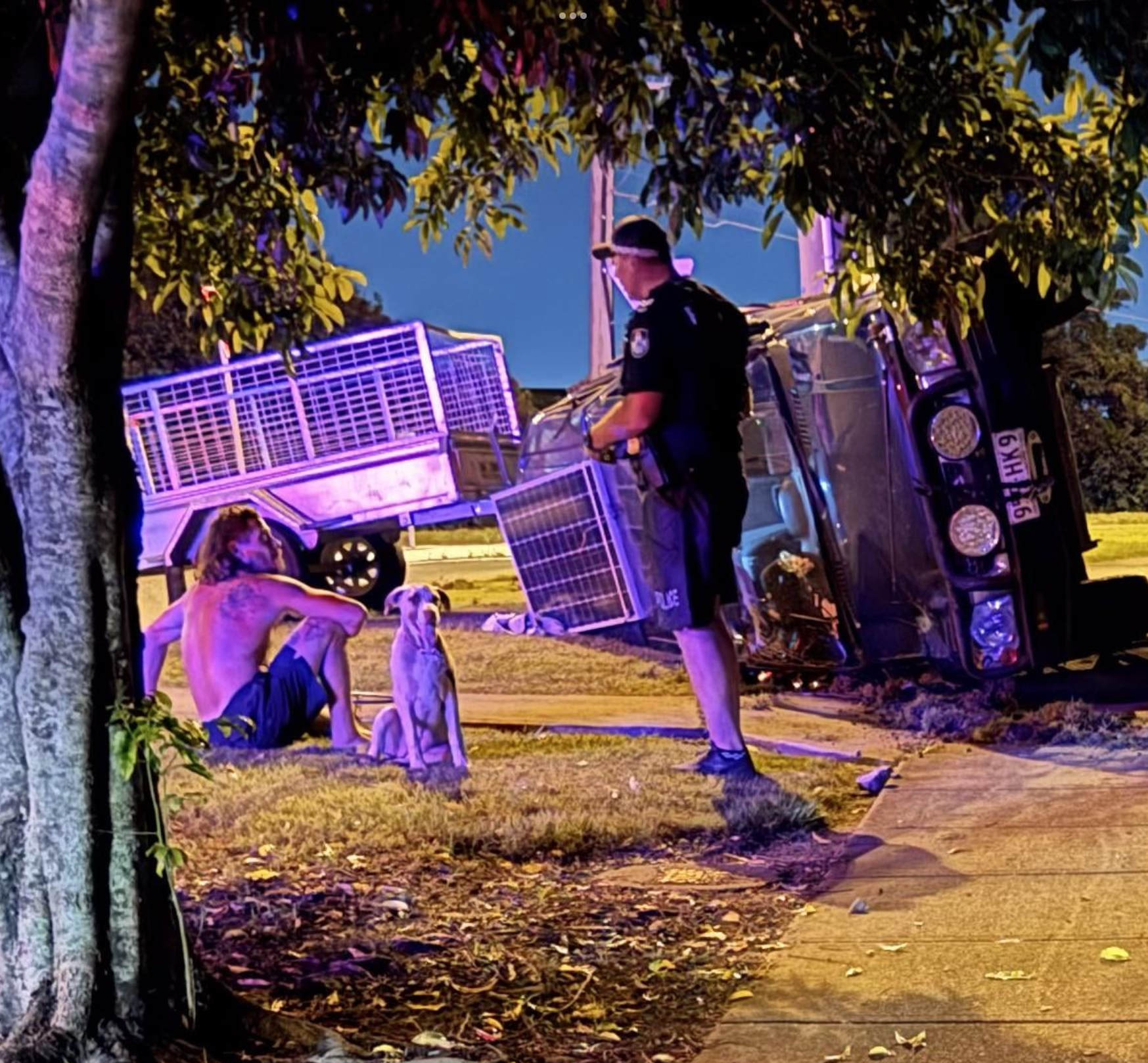 A fabulous commentary on Australian culture in one photo. Even the dog’s embarrassed that his mate’s been drinking and forgot he had a trailer when he went through the roundabout.