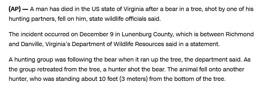 ·I've always been warned about "drop bears" while in Australia...well apparently they can be a hazard in the US as well...