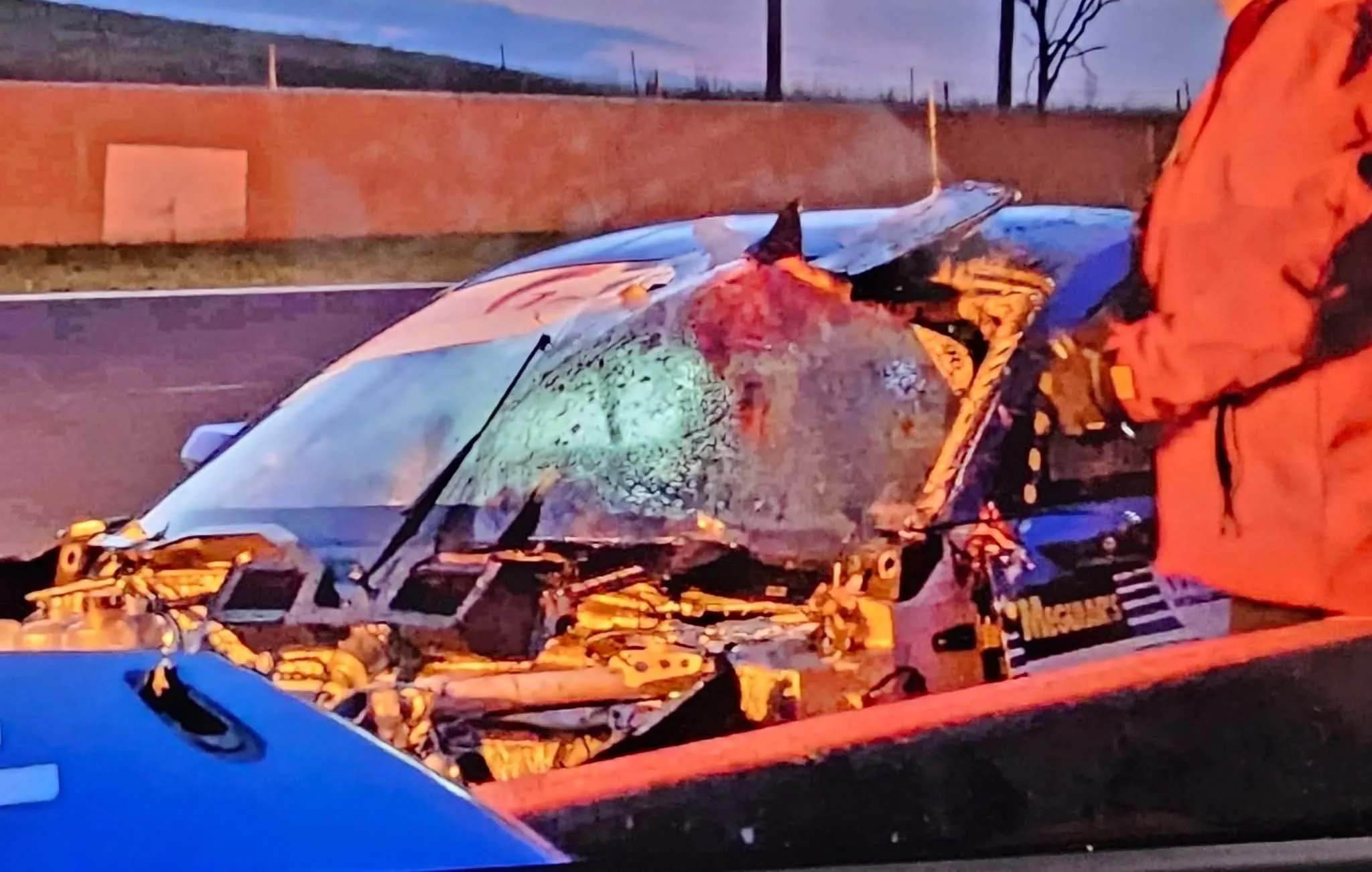 The roo exploded into meat mince as it went through the hood and windscreen, driver got covered in stinky bits. Not the first time and won't be the last. They make deer look like sensible pedestrians by comparison.