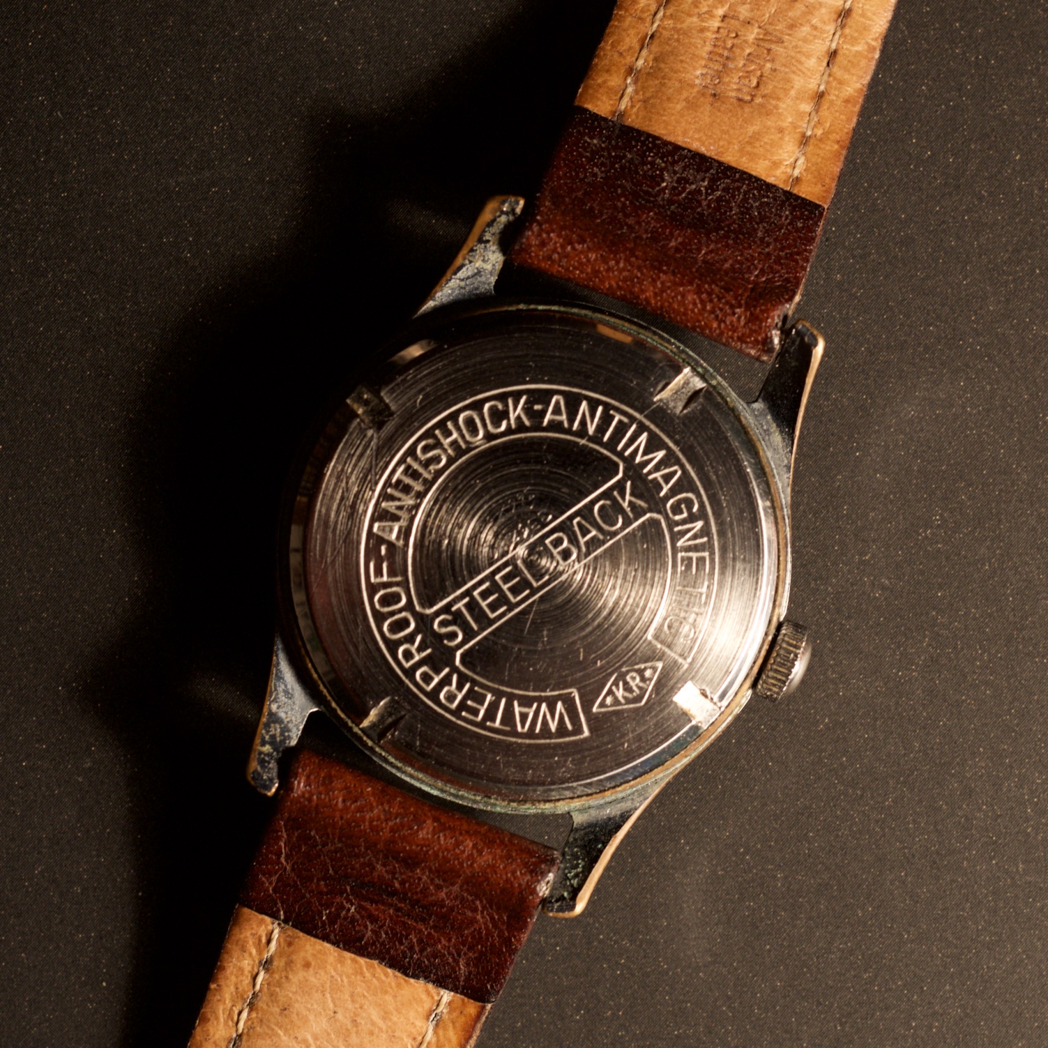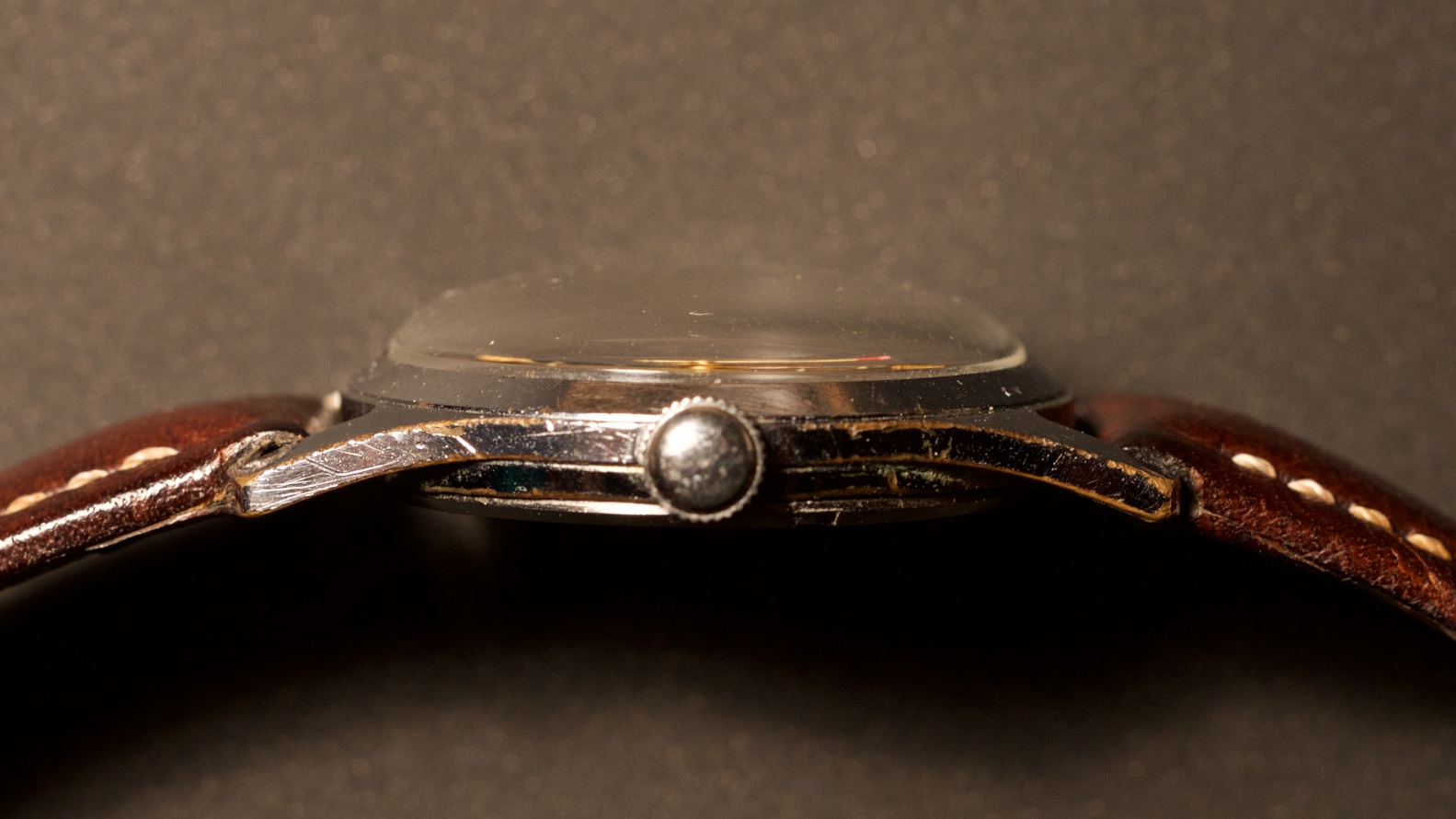 Chrome case with some wear. Caseback in stainless steel. Diameter 32.5 mm w/o crown, lug width 18 mm.