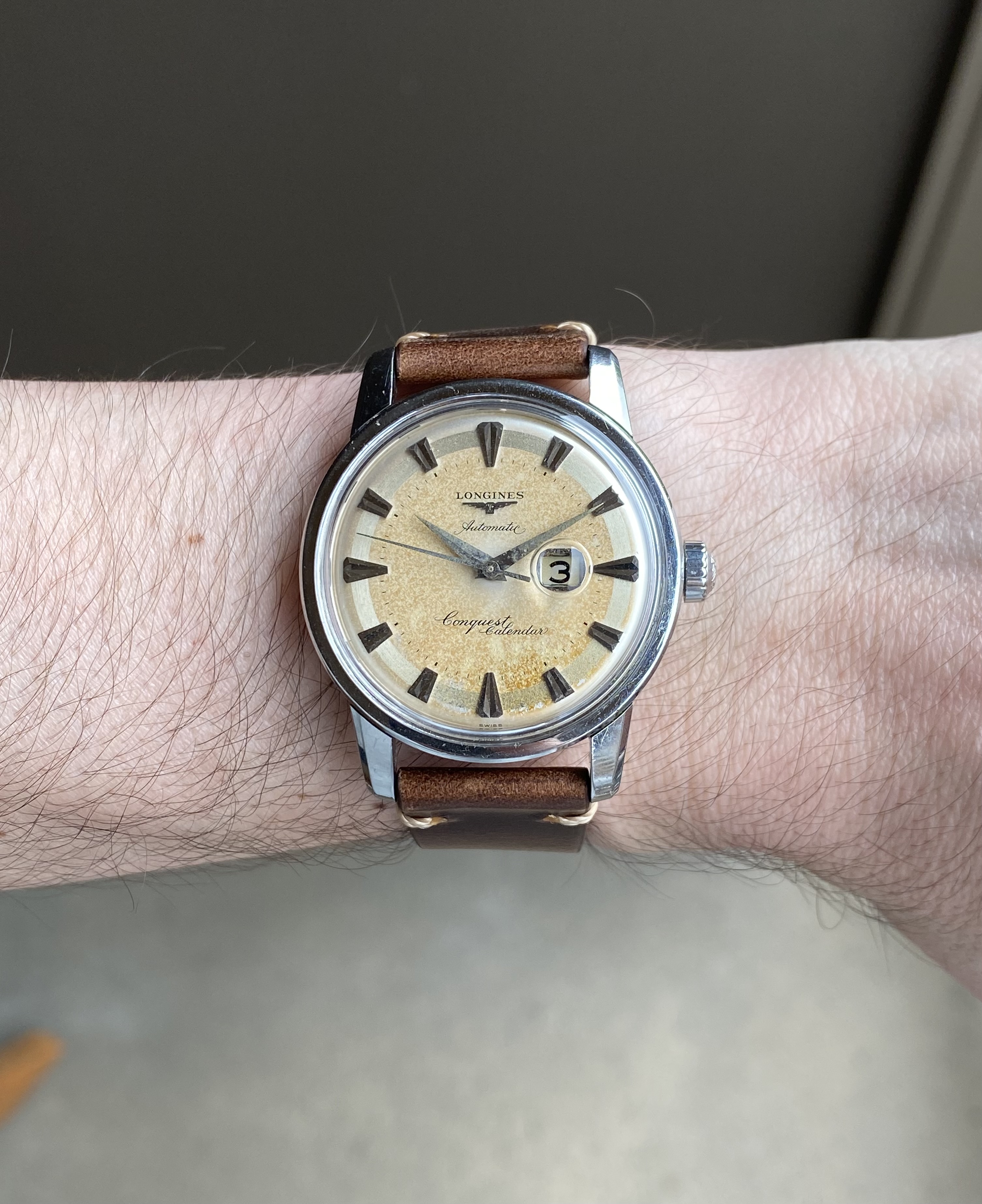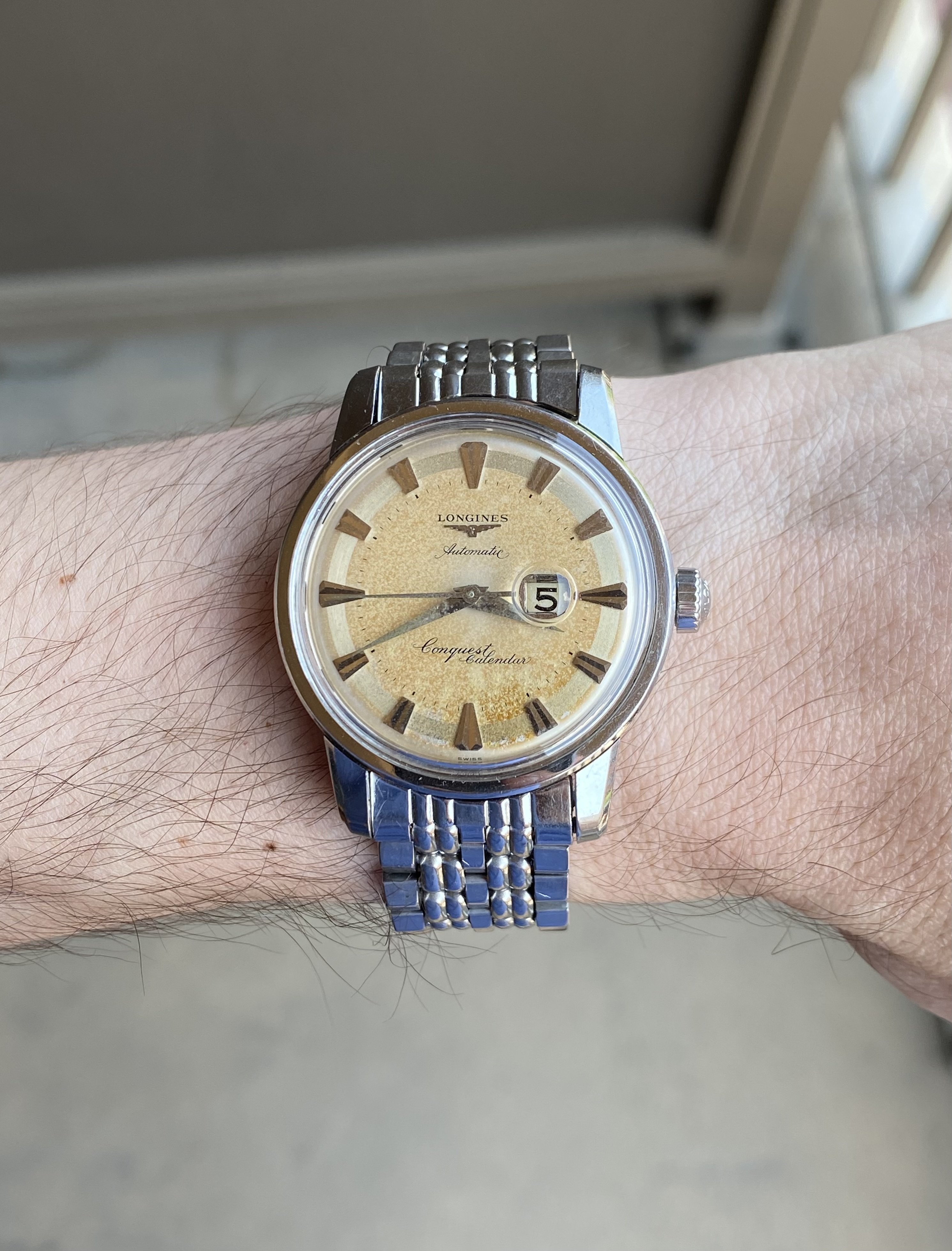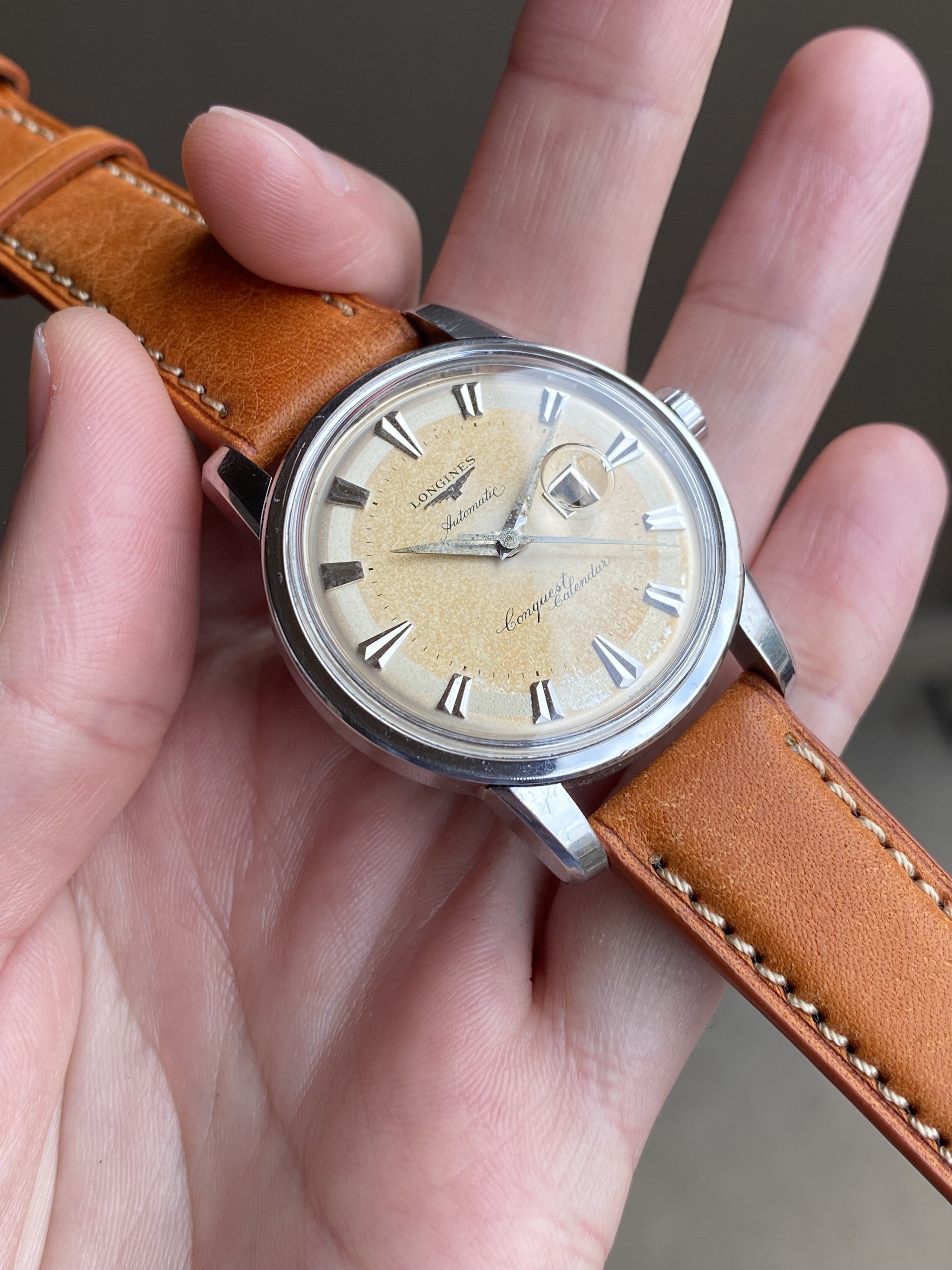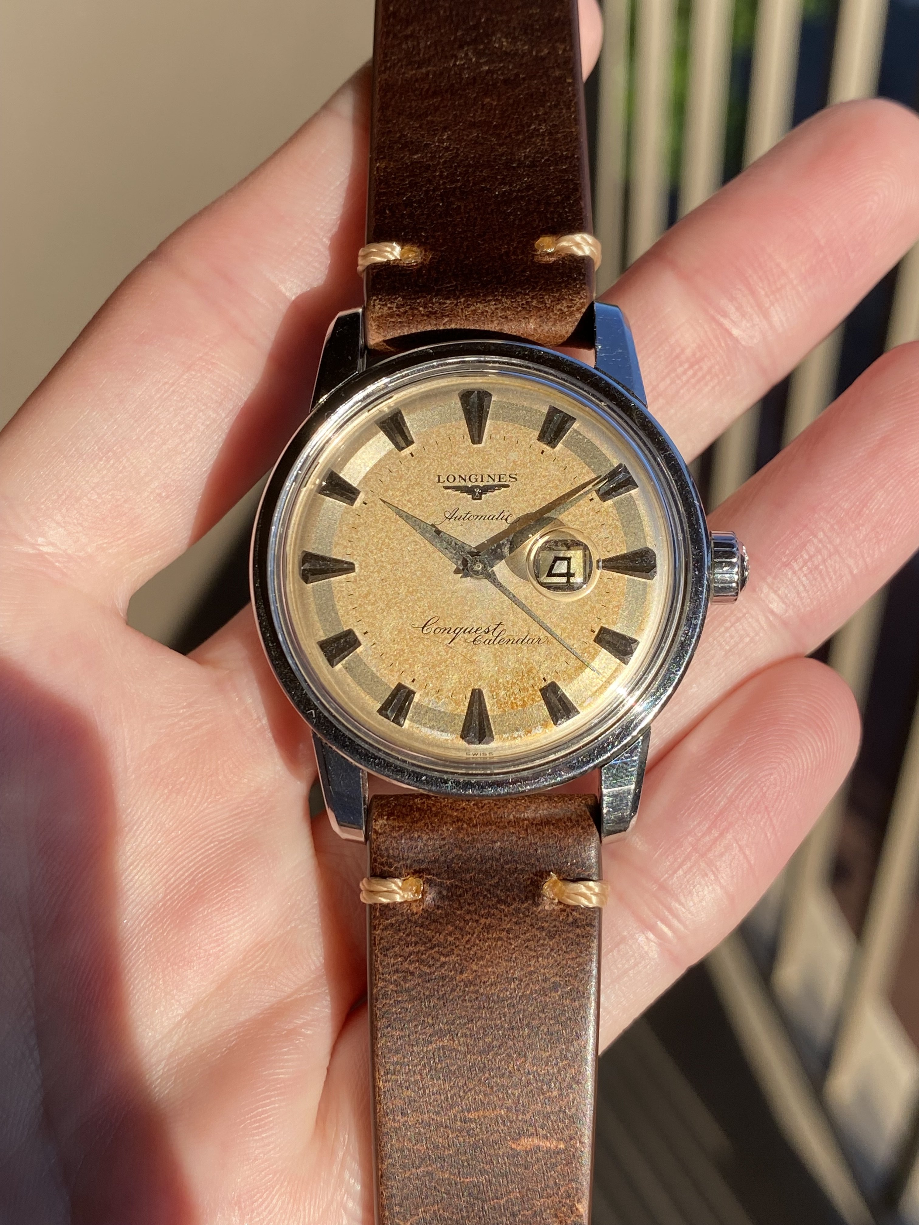 ·Up for sale is a very nice, original 1959 9004 ref Longines Conquest Calendar - the first Conquest calendar reference. The original non-luminous dial has developed a pleasing patina and the case remains very sharp with a stunning “fish in kelp” caseback medallion. Longines archive info indicates delivery to Hong Kong in October 1959. See below for more information, and feel free to message me with questions.