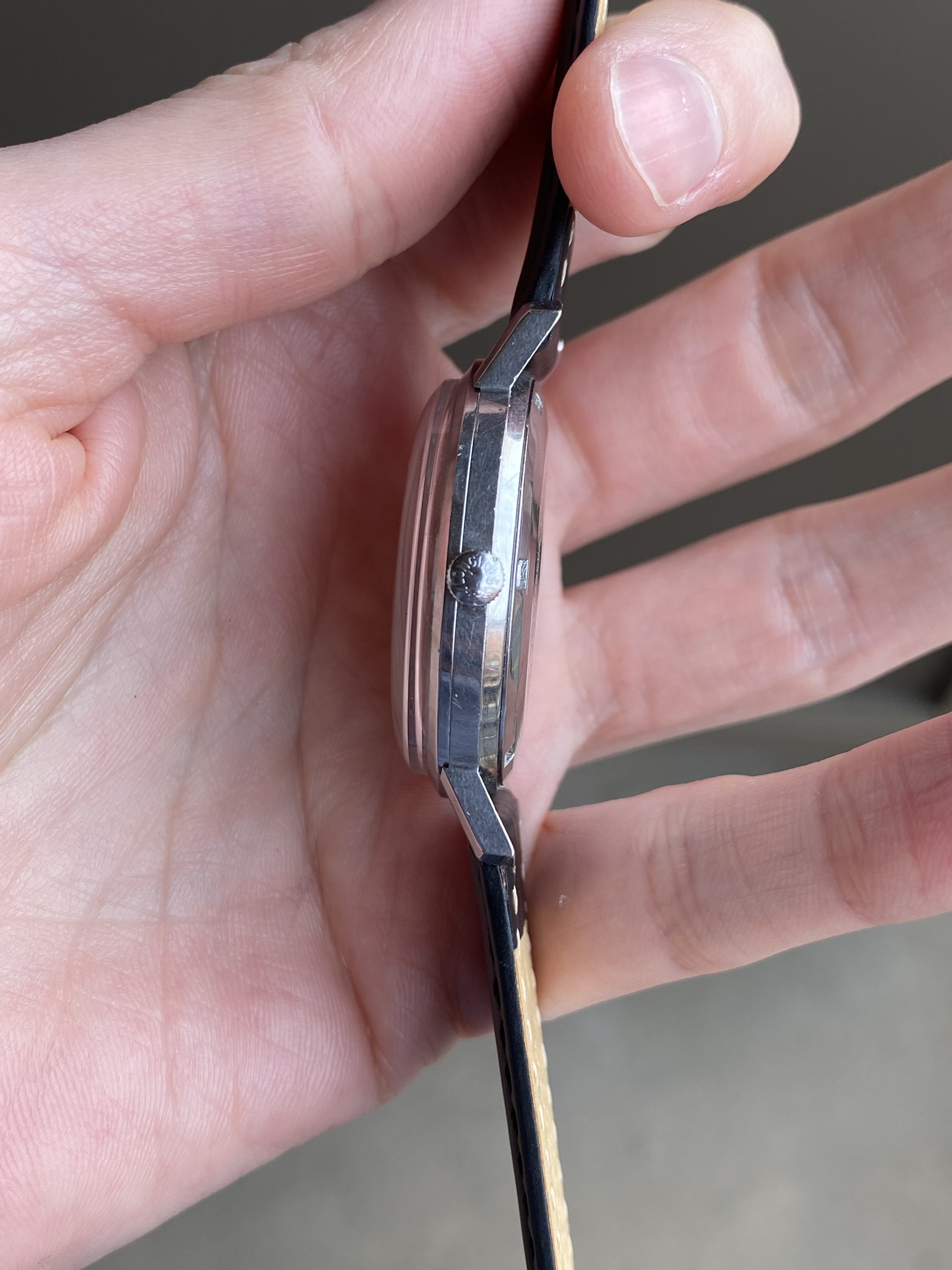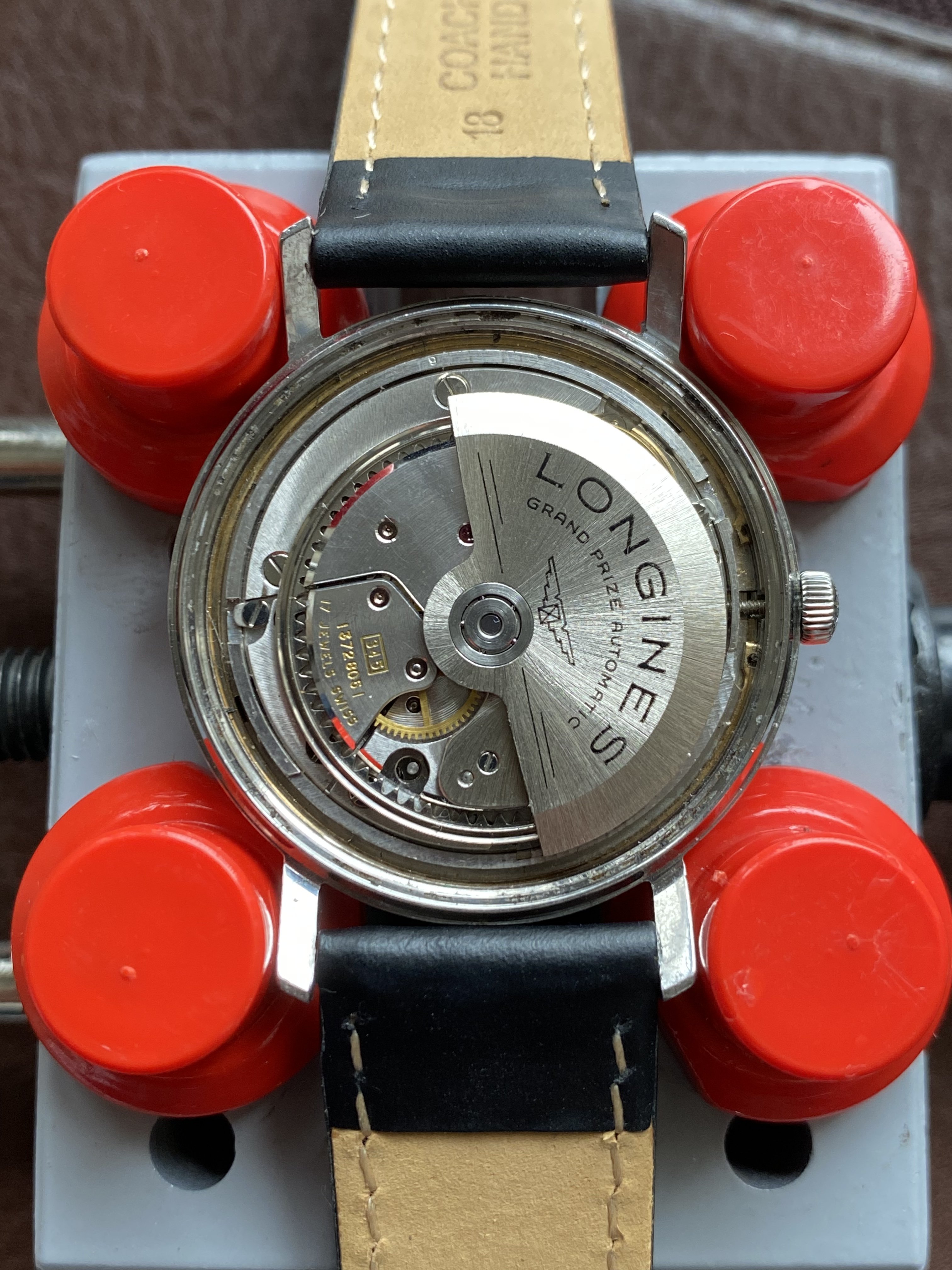 Movement: The 345 caliber automatic movement was recently fully serviced by Chandler at CLTimeworks and comes with a 1 year service warranty. Edit: Forgot to add that the movement was in very tough shape when I got it - my watchmaker had to replace the balance (hence LXW marking that came from another movement), ratchet wheel, center bearing for the automatic, sliding and winding pinion. It was not a cheap service.